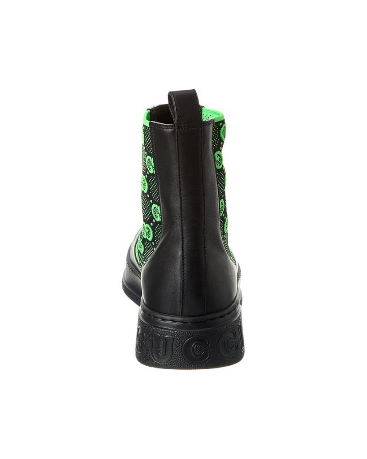 Step up your shoe game with the Gucci GG Leather Boot. As an Italian luxury brand, Gucci is known for its eclectic and coveted styles that redefine luxury. These boots feature a black leather and neon green GG paneling design with an easy-to-use pull-on tab and elasticized slip-on style for your convenience. With a lightly padded leather insole and rubber sole with traction, you can walk in comfort and style with a 1.5-inch heel and 1-inch platform. The boot has a 6.5-inch shaft and 12-inch circumference, making it perfect for any setting. Please note that the size selections are in UK sizes, but you can easily reference the size chart for US conversions. Made in Italy, these boots are genuine and authentic, and we stand by the quality of every product sold on our site.