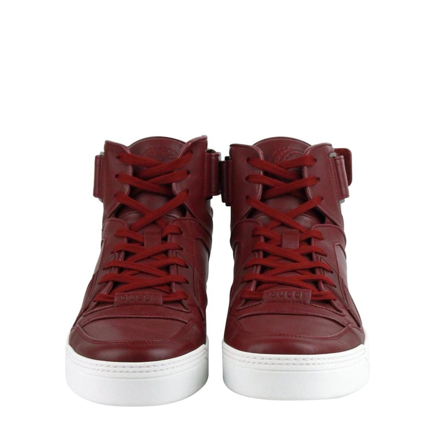 Made of leather, Adjustable strap at the ankle with Gucci logo Interlocking G embroidered detail on tongue Rubber sole, High-top Original Gucci box, tags, and authenticity card included Made in Italy