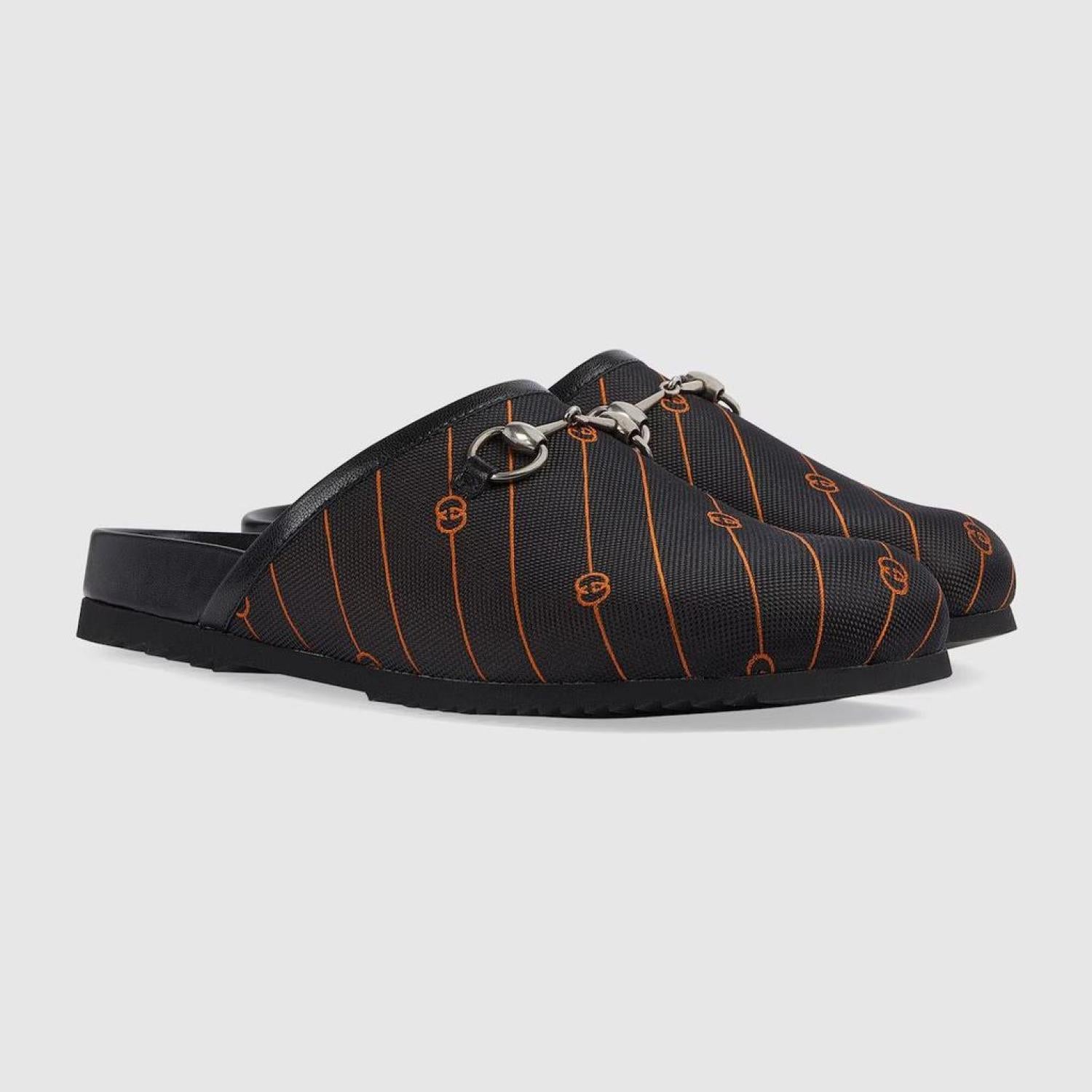 Blending seamlessly with the contemporary for an updated yet never-out-of-style wardrobe, the footwear line presents elegant pieces with an unexpected animation. Borrowed from the ready-to-wear selection, an allover diagonal Interlocking G jacquard decorates this Men's slipper, complete with a black leather trim.