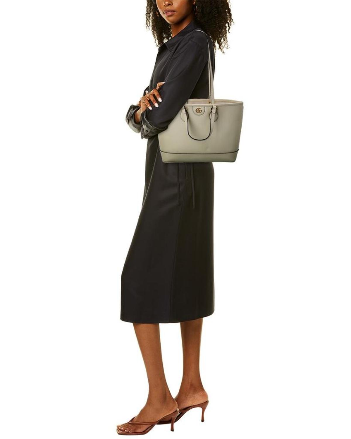 Elevate your style with the Gucci Ophidia Mini Leather Tote. This luxurious handbag is a timeless piece from the renowned brand, known for its eclectic and coveted designs. Made in Italy, this tote features white leather and light fine gold hardware, with an interlocking G logo accent for a touch of elegance.The interior of the bag is lined with canvas, adding to its durability and classic appeal. Measuring at 12.2 inches wide, 9.8 inches high, and 5 inches deep, this tote is both stylish and practical. The top handles have a 5-inch drop, while the shoulder straps have an 11-inch drop for versatile styling options.Complete with a magnetic closure, this Gucci tote is perfect for everyday use or special occasions. Please note that all measurements are approximate and slight variations may occur. Rest assured, our products are 100% genuine, sourced from trusted independent suppliers to guarantee authenticity. Add this Gucci Ophidia Mini Leather Tote to your collection for an exquisite touch of Italian luxury redefined.