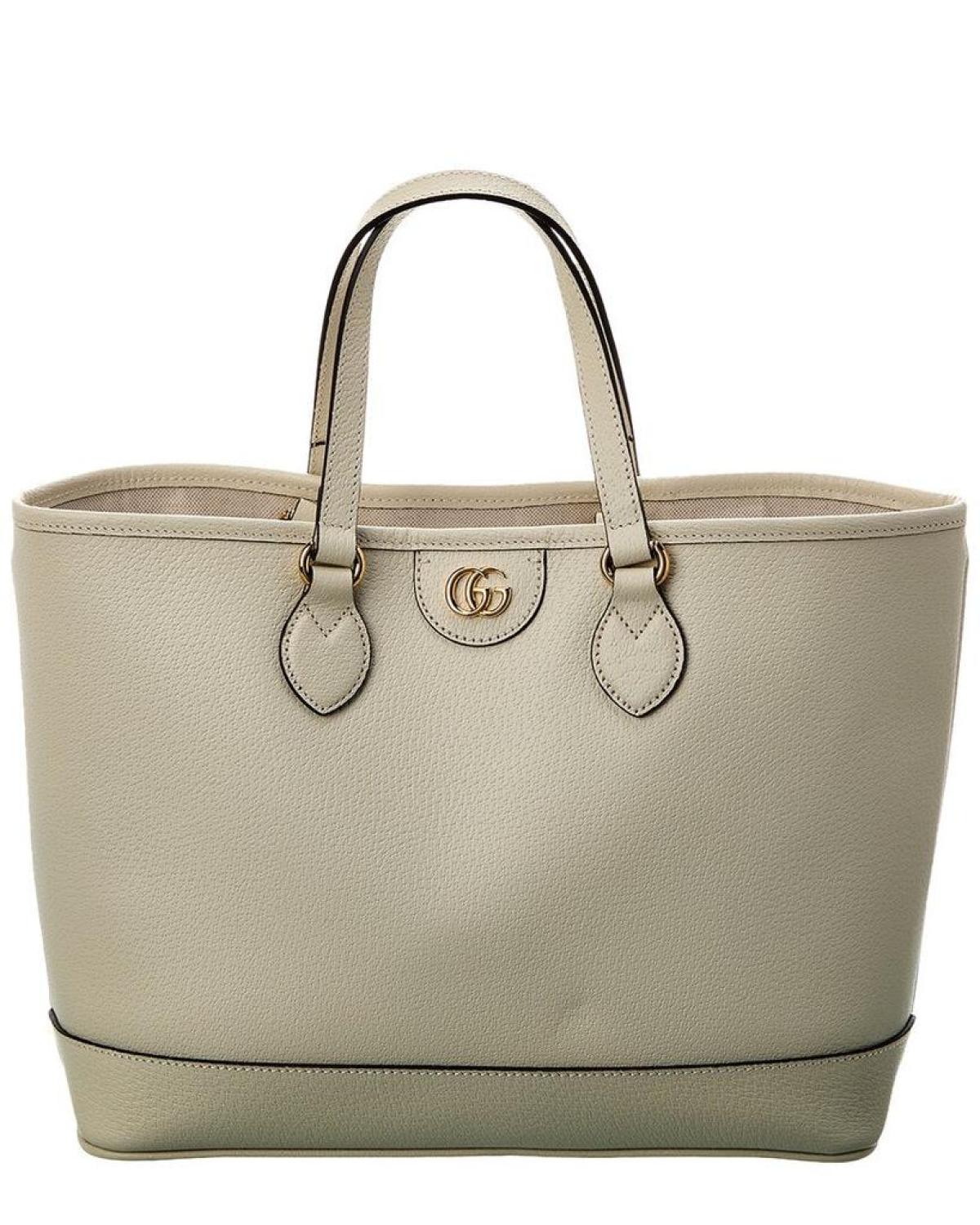 • Elevate your style with the Gucci Ophidia Mini Leather Tote. This luxurious handbag is a timeless piece from the renowned brand, known for its eclectic and coveted designs. Made in Italy, this tote features white leather and light fine gold hardware, with an interlocking G logo accent for a touch of elegance.The interior of the bag is lined with canvas, adding to its durability and classic appeal. Measuring at 12.2 inches wide, 9.8 inches high, and 5 inches deep, this tote is both stylish and practical. The top handles have a 5-inch drop, while the shoulder straps have an 11-inch drop for versatile styling options.Complete with a magnetic closure, this Gucci tote is perfect for everyday use or special occasions. Please note that all measurements are approximate and slight variations may occur. Rest assured, our products are 100% genuine, sourced from trusted independent suppliers to guarantee authenticity. Add this Gucci Ophidia Mini Leather Tote to your collection for an exquisite touch of Italian luxury redefined.