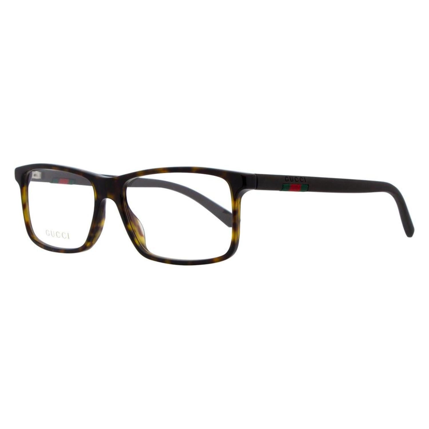 • The Gucci GG0424 eyeglasses feature a rectangular shape constructed of lightweight acetate, featuring the brand�s classic red and green colorway on the soft rubber temples. Influential, innovative, and progressive, Gucci is reinventing a wholly modern approach to fashion. From the recognizable Double-G logo to new modern designs, the fashion house has redefined luxury, and further reinforcing its position as one of the world's most desirable fashion houses. These optical frames ship with a Gucci travel case, cleaning cloth and authenticity documentation. NOTE - These optical frames are fitted with Demo lenses and are not meant to be worn as is. Please visit your local Optometrist to replace with optical quality lenses. UPC - 889652173207 Model - GG0424O Color Code - 006 Frame Color - Havana Frame Material - Acetate Frame Shape - Rectangular Lens Color - Demo Lens Types - Demo Hinge Type - Barrel Gender - Mens Made In - Italy Lens Width - 58 mm Bridge Width - 16 mm Lens Height - 36 mm Temple - 145 mm Authenticity & Satisfaction - All of our items are purchased directly from the manufacturers or authorized dealers and are guaranteed to be 100% authentic and brand new with original packaging.