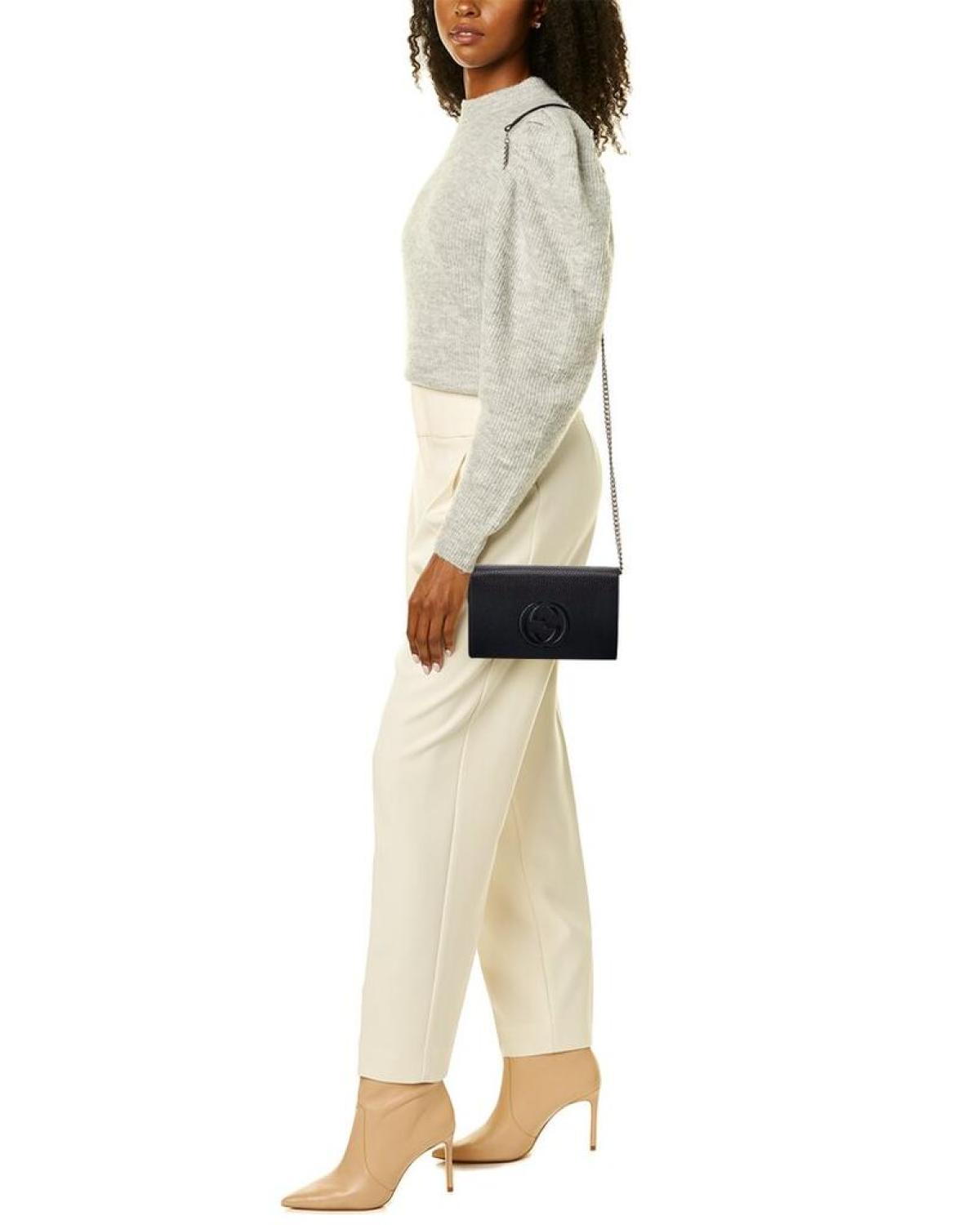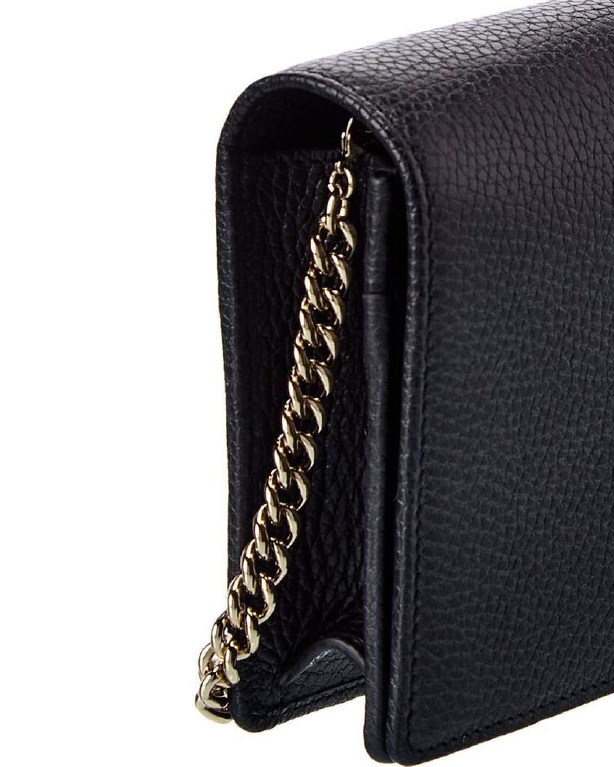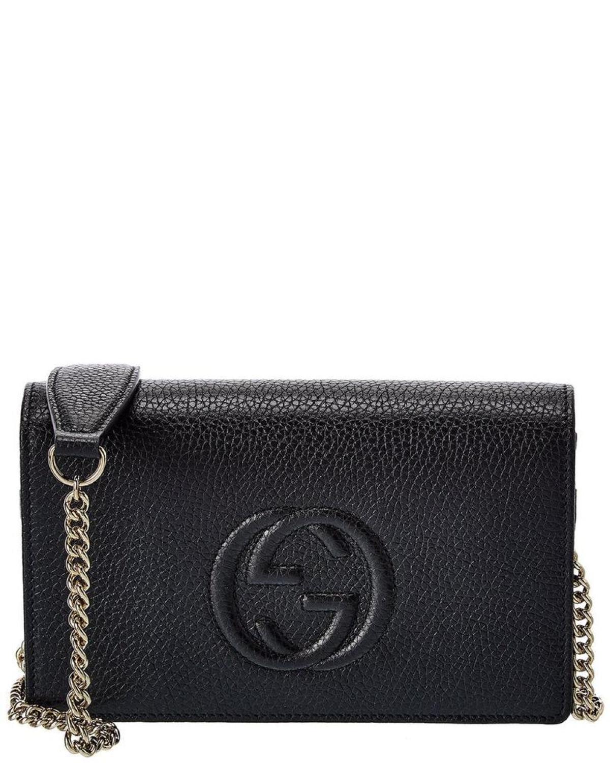 Elevate your style with the Gucci Soho Leather Crossbody, a truly luxurious accessory that combines Italian craftsmanship with iconic design elements. Made in Italy, this crossbody features black leather and light fine gold hardware with an embossed interlocking G logo. The interior is thoughtfully designed with canvas and leather lining, a zippered pocket, and card slots for easy organization. The removable shoulder strap offers versatile carrying options, while the fold-over flap with snap closure keeps your belongings secure. Measuring 7.75 inches wide, 4.75 inches high, and 1.5 inches deep, this crossbody is the perfect companion for any outfit. Own a piece of Italian luxury redefined with the Gucci Soho Leather Crossbody.