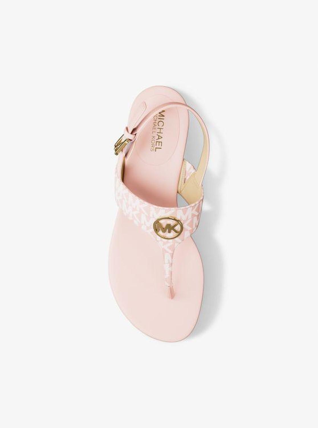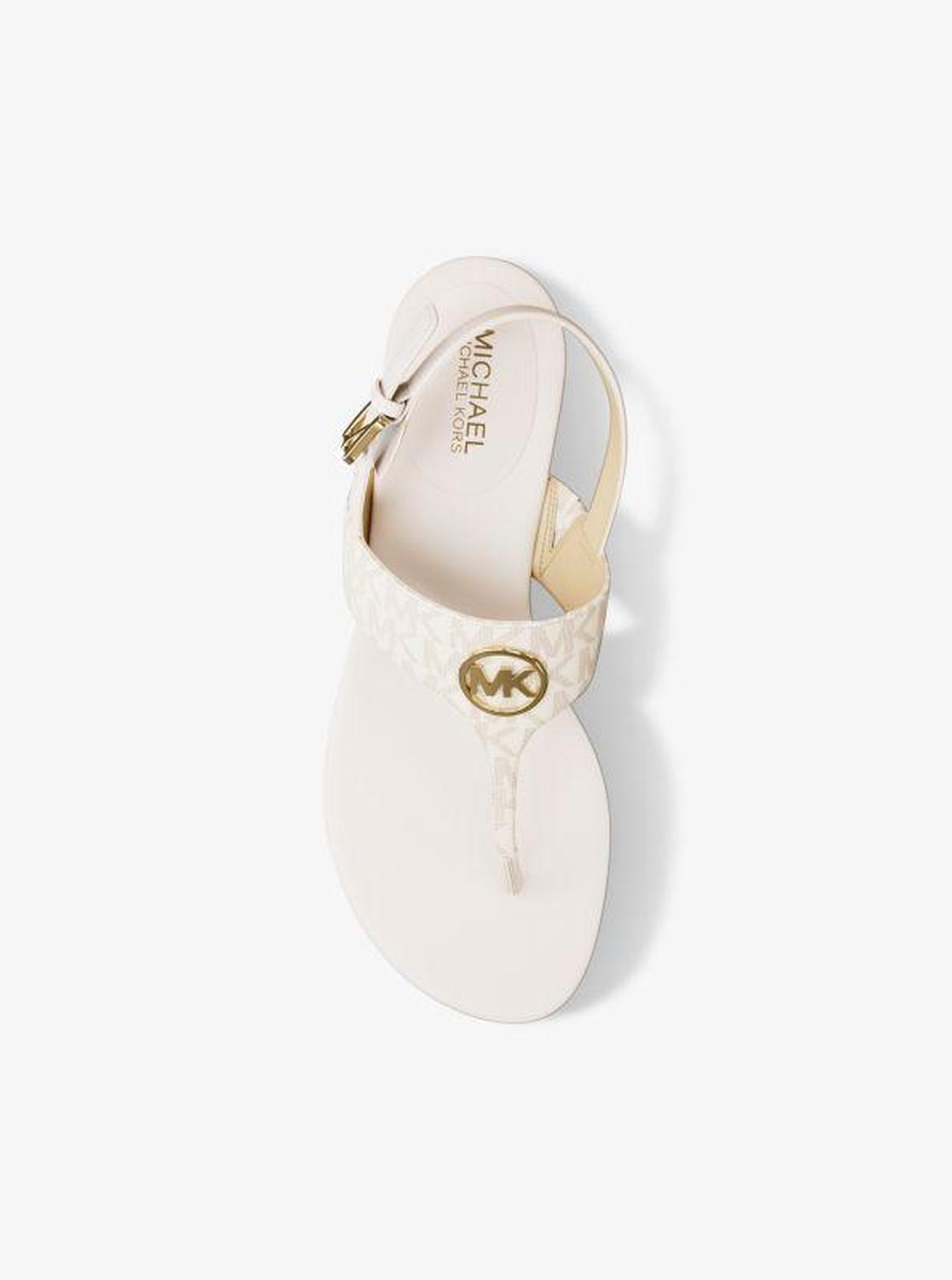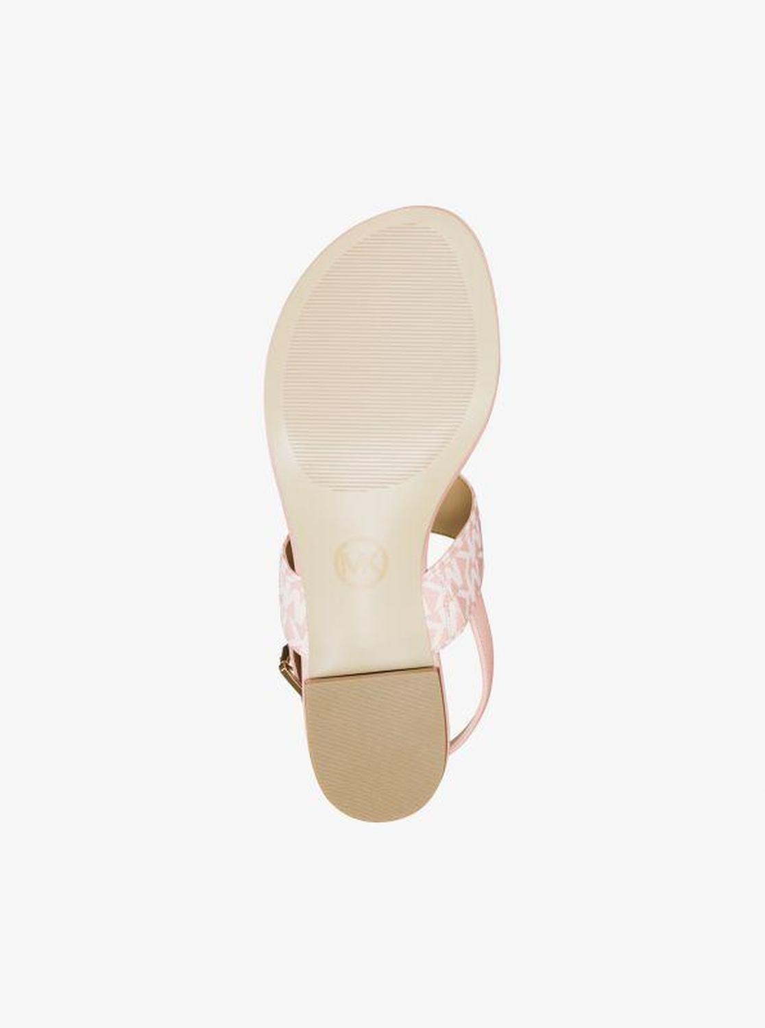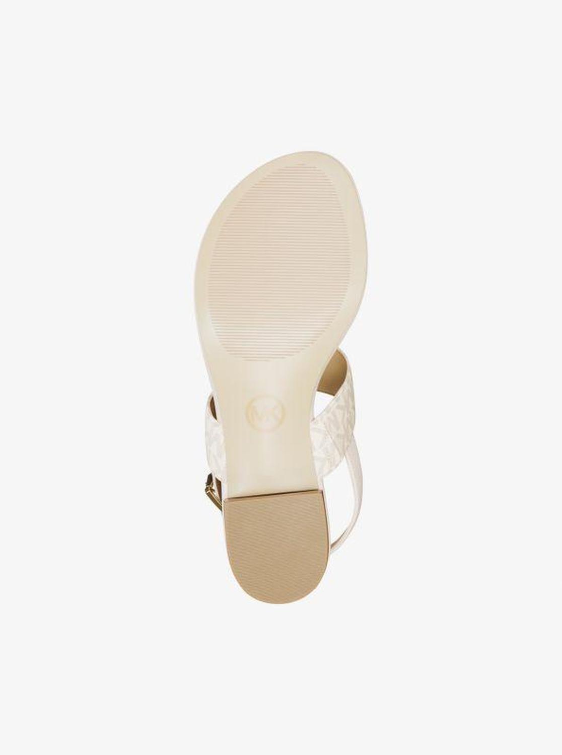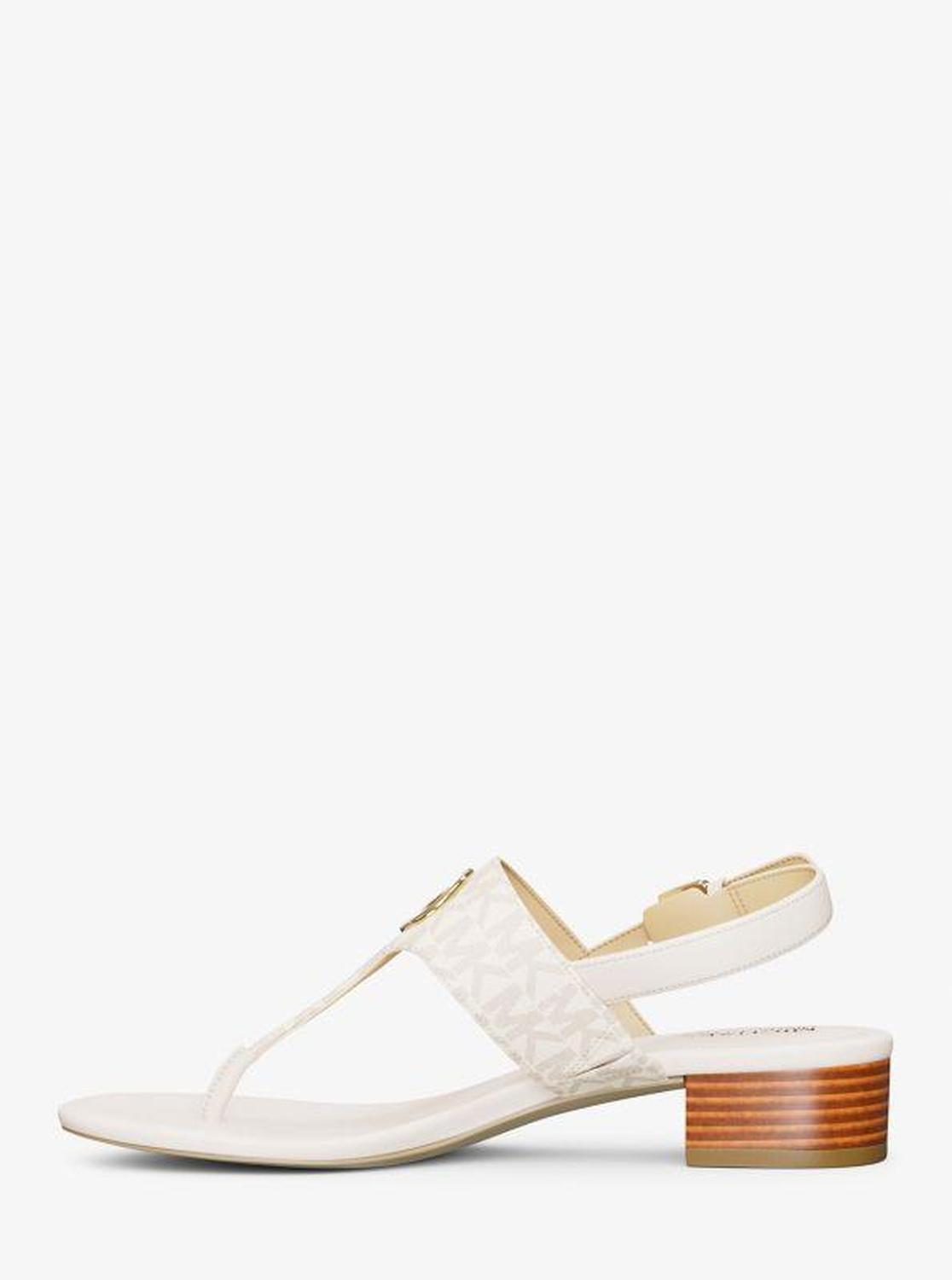 Michael Kors—defining modern glamour since 1981. • Sandal • Logo-print canvas • Lining: polyurethane blend • Sole: rubber • Open toe • Buckle fastening • Heel height: 1" • Platform height: 0.25" • Heel type: stacked • Imported • Sandal • Logo-print canvas • Lining: polyurethane blend • Sole: rubber • Open toe • Buckle fastening • Heel height: 1" • Platform height: 0.25" • Heel type: stacked • Imported