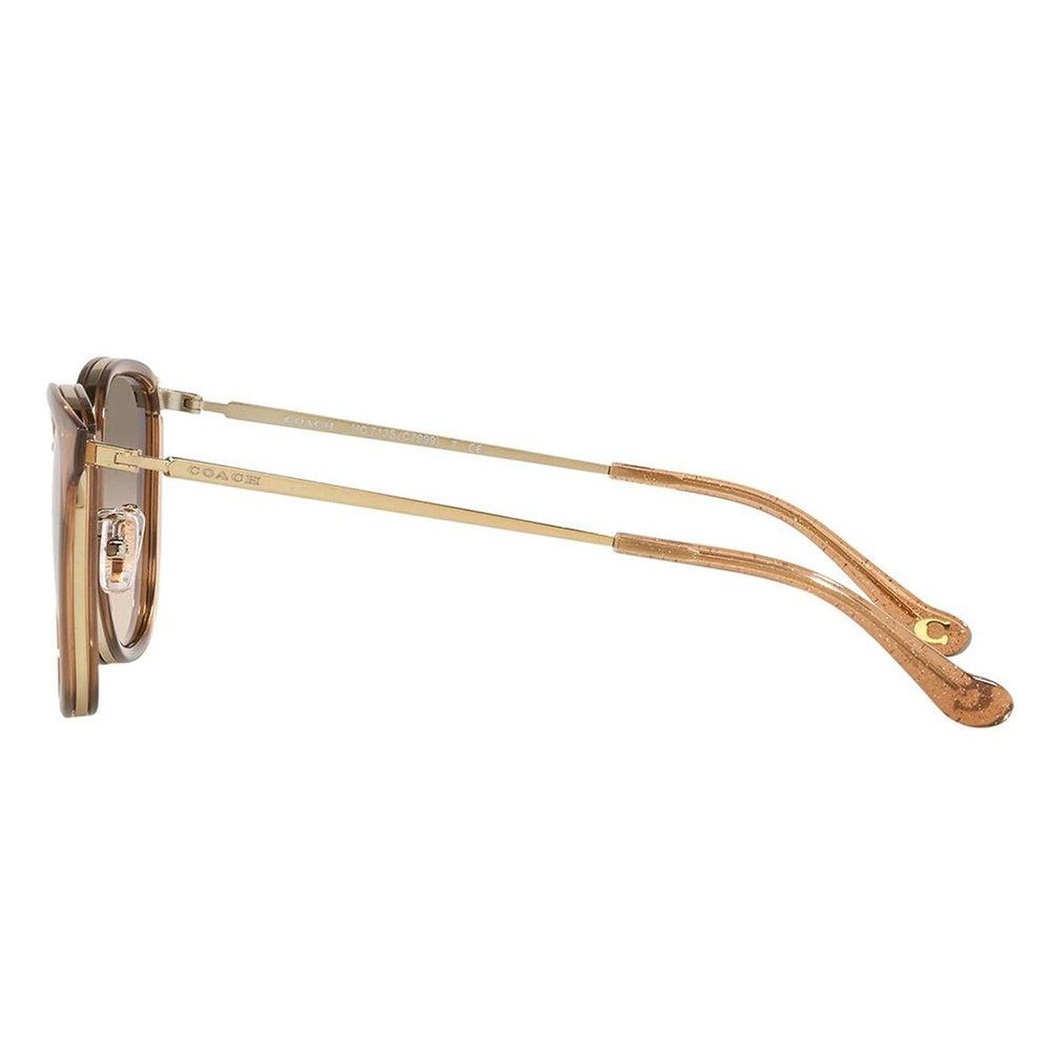 • Coach HC 7135 565413 54mm Womens Light Gold Brown Brown Gradient Lens SunglassesFrame Color - Light Gold BrownFrame Style - SquareFrame Material - Metal & PlasticLens Color - Brown Gradient LensProtection - UV ProtectedIncludes - Coach case, cloth and paperwork *may vary from pictureSize - Lens 54 mm x bridge 20 mm x arms 140 mm All measurements may vary