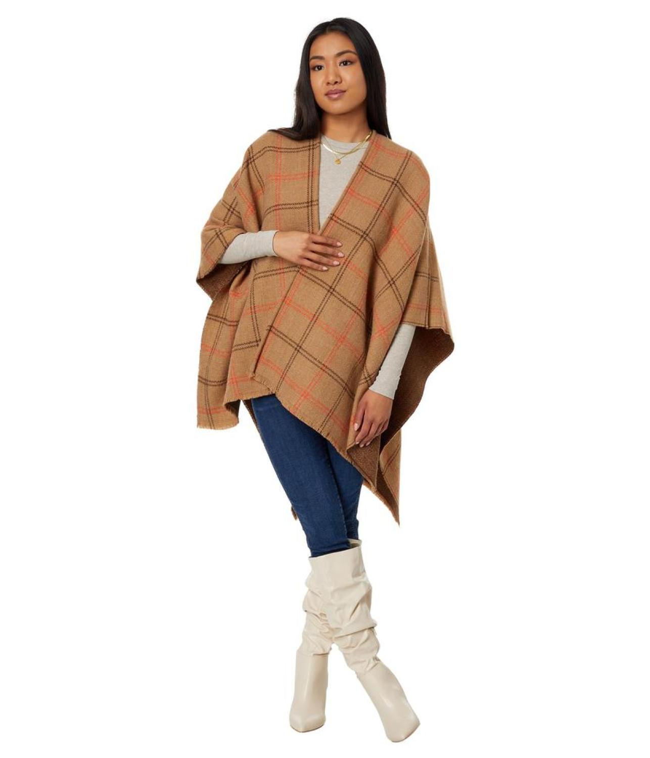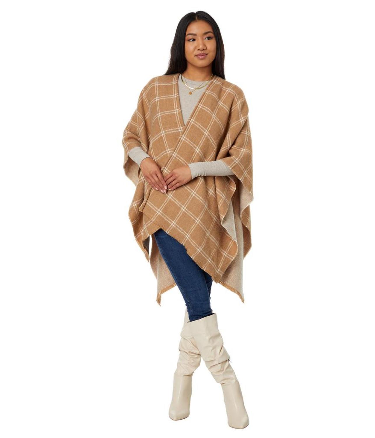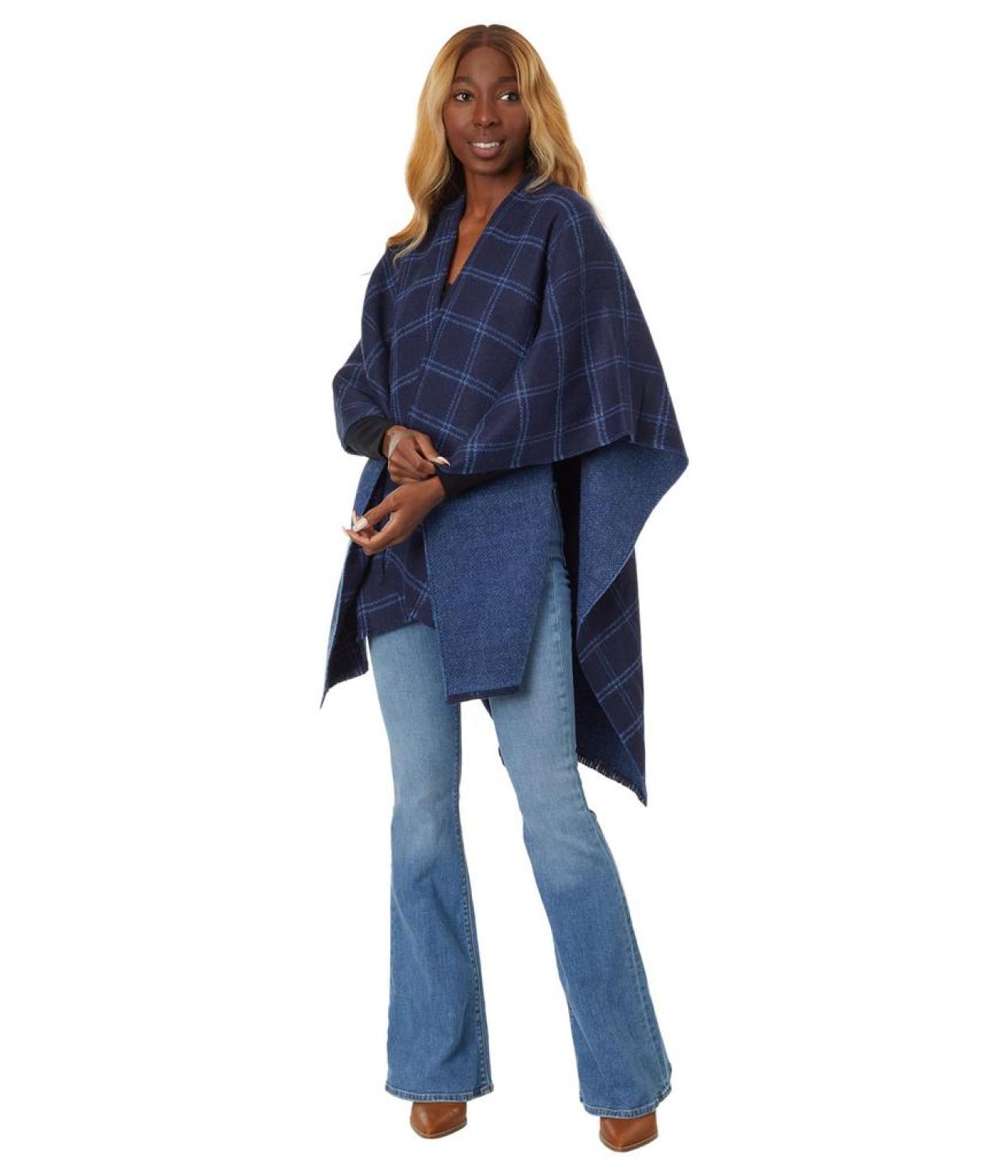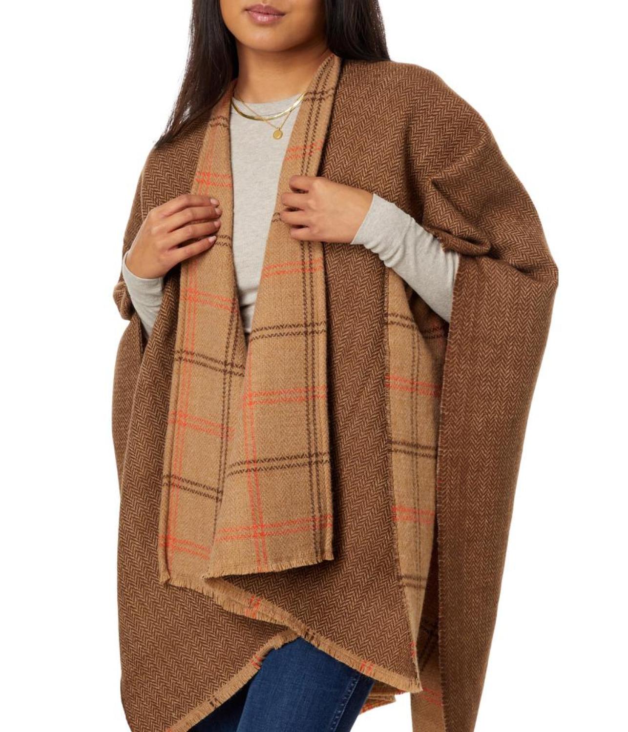• Wrap yourself in warmth in the LAUREN Ralph Lauren® Herringbone Windowpane Reversible Ruana. Reversible styling lets you set the mood for the day.