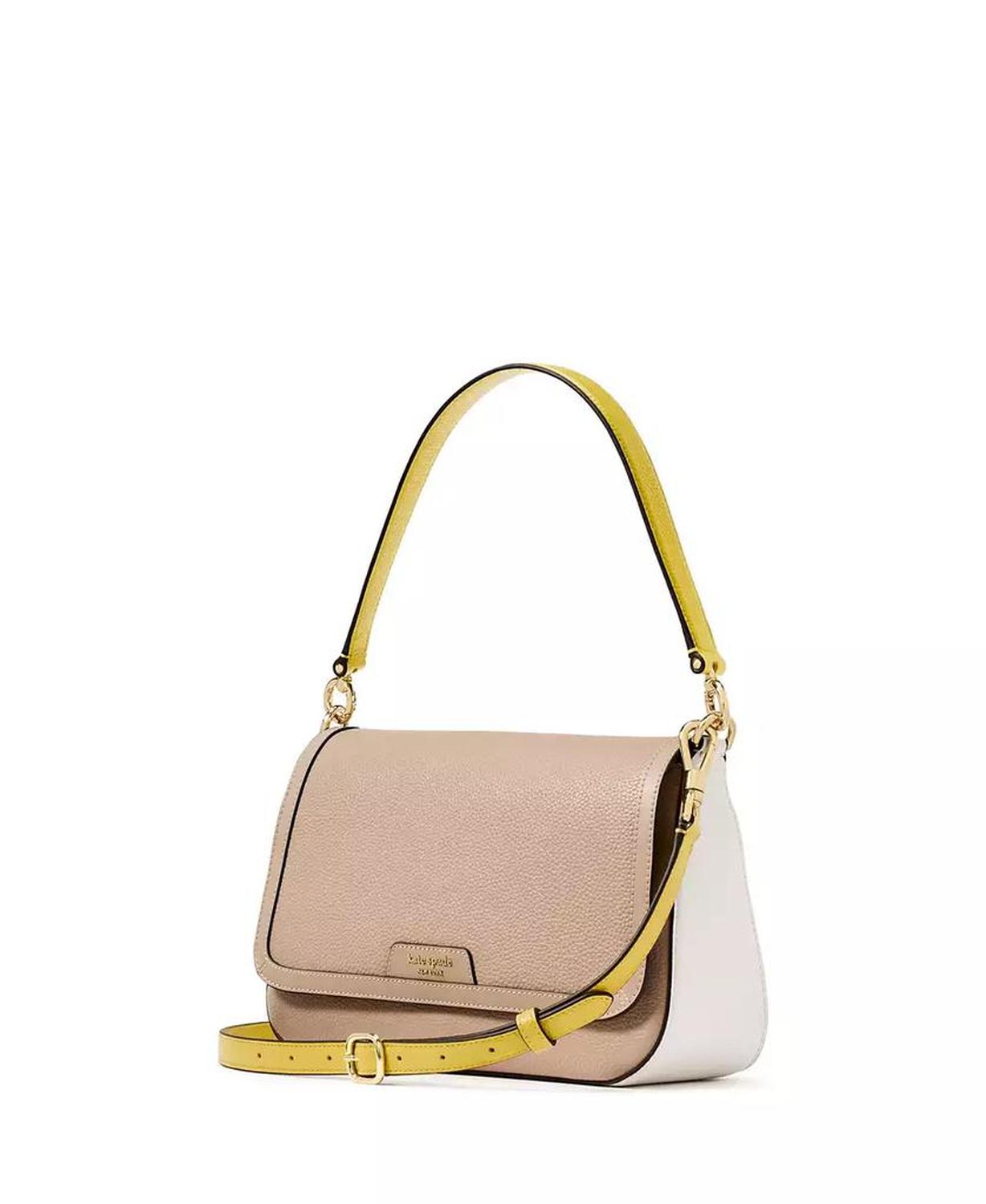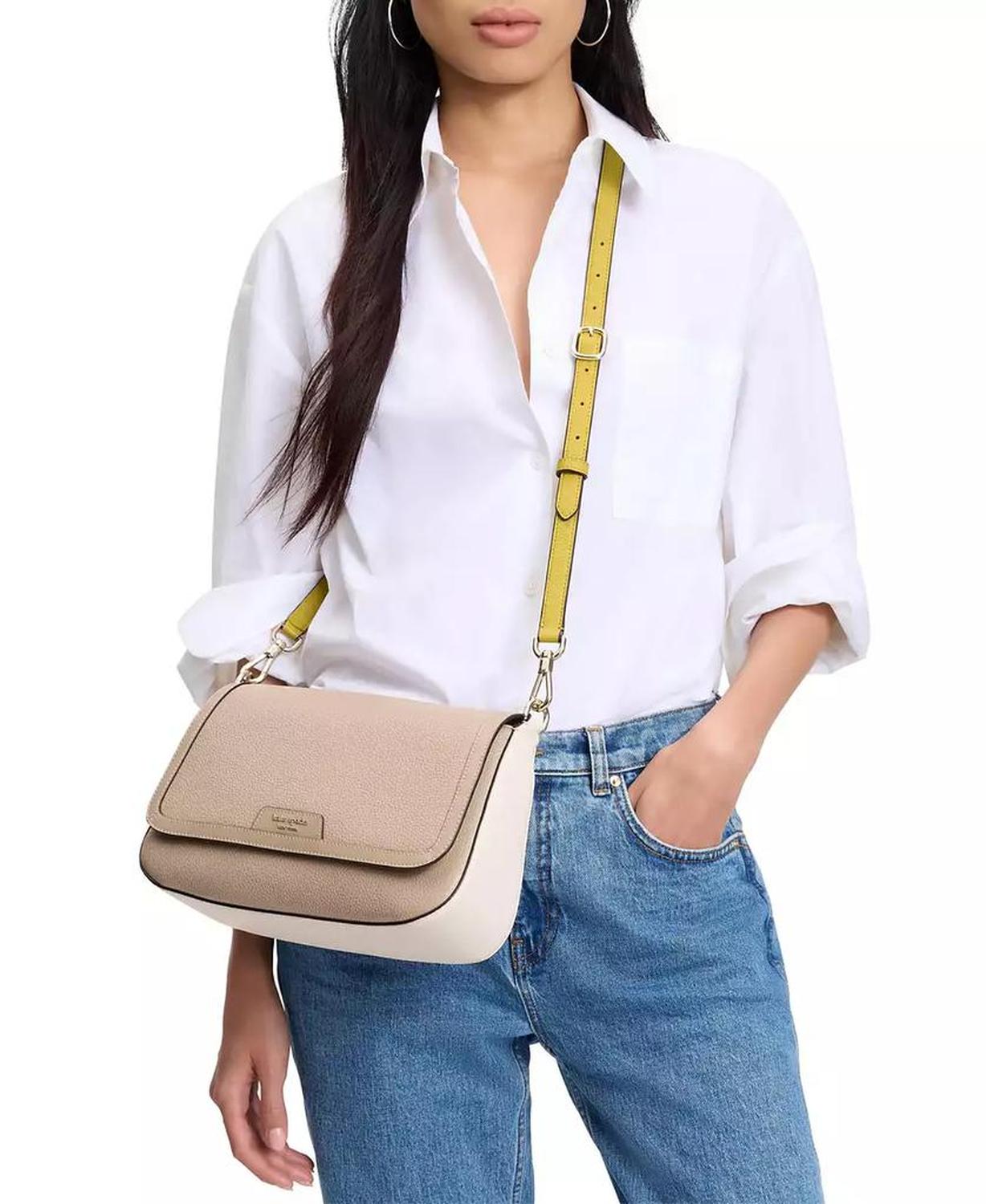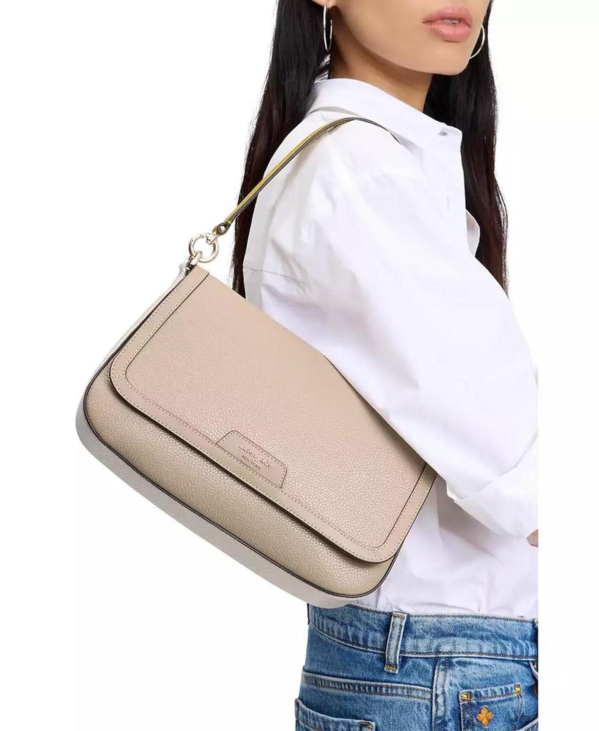 The Kate Spade New York Hudson Colorblocked Pebbled Leather Flap Shoulder Bag is a stylish and sophisticated bag, featuring a chic colorblock design and made from durable pebbled leather for a refined look. Measurements: 6.89"L x 11.02"W x 6.89"H Size: Small Flap with magnetic snap closure Zip and slip pockets Approx. Weight: 1 lbs. Fits iPhone max and zip around continental wallet 8"L handle This item purchased online must be returned to the vendor by mail only. This item cannot be returned to Macy's stores. 100% cow leather Spot clean Imported