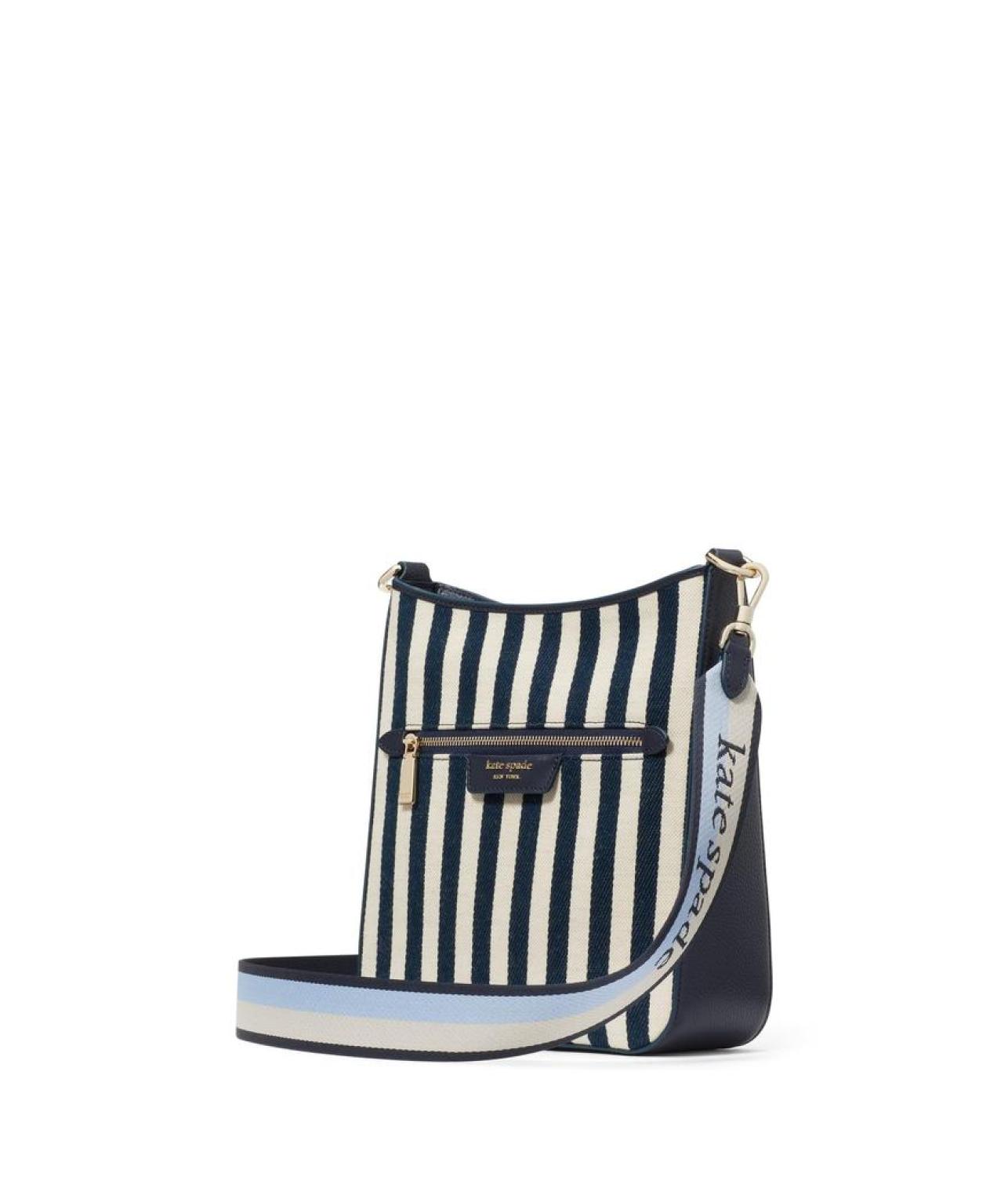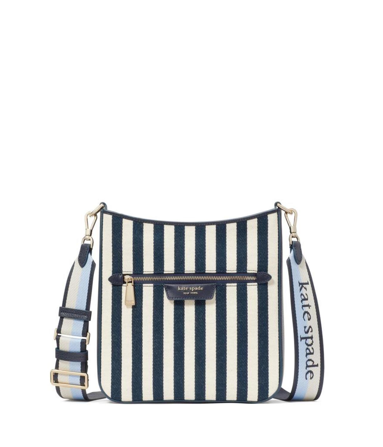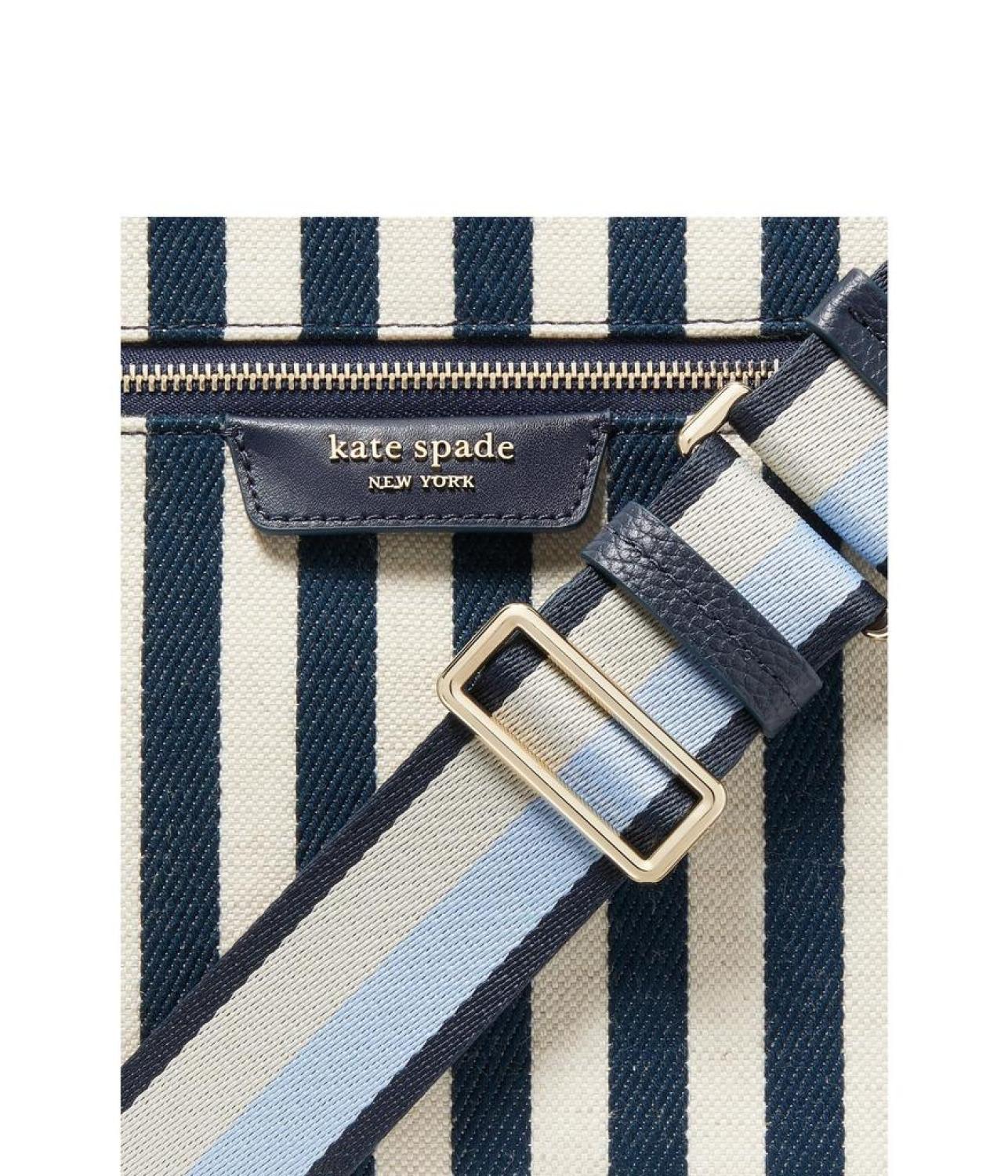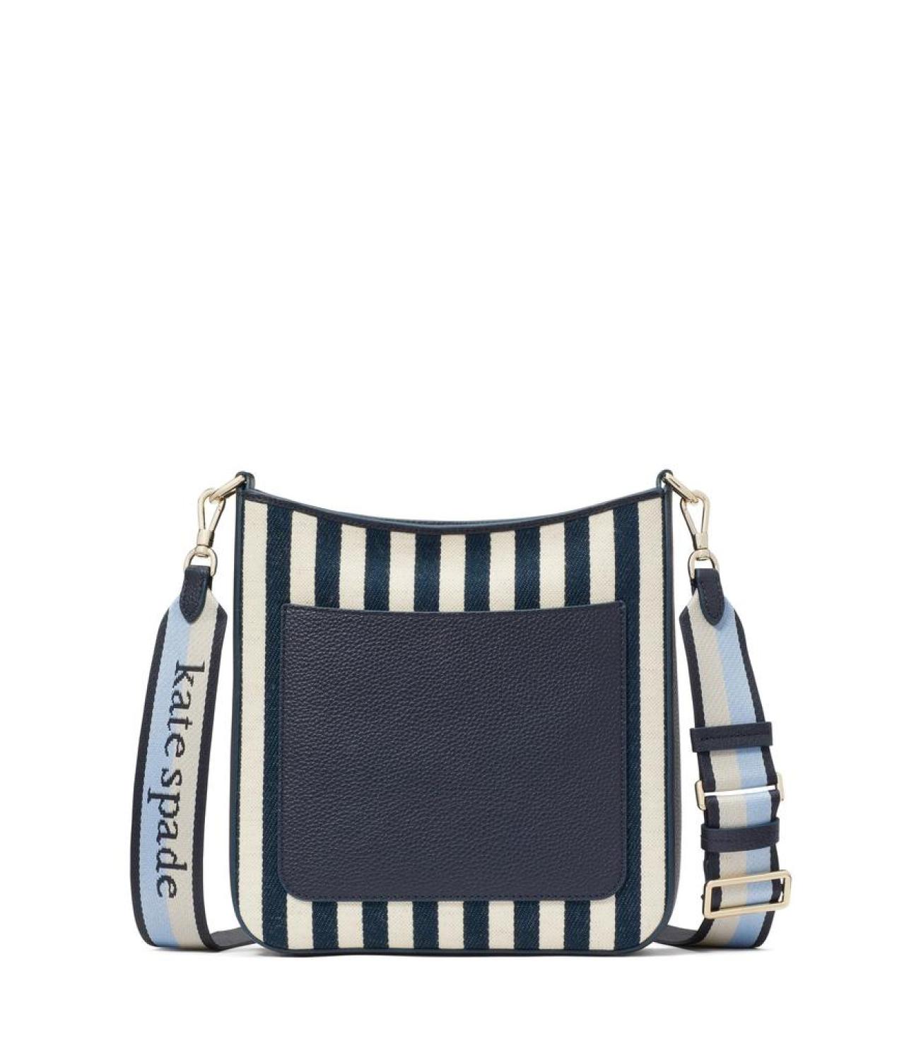 • Step out in chic style while keeping your essentials organized in the Kate Spade New York® Hudson Striped Canvas Fabric Messenger Crossbody. This crossbody bag features an adjustable, removable crossbody strap with striped detailing, top zipper closure, front exterior zipper pocket, back exterior open pocket, interior zipper pocket, and one interior slip pocket.