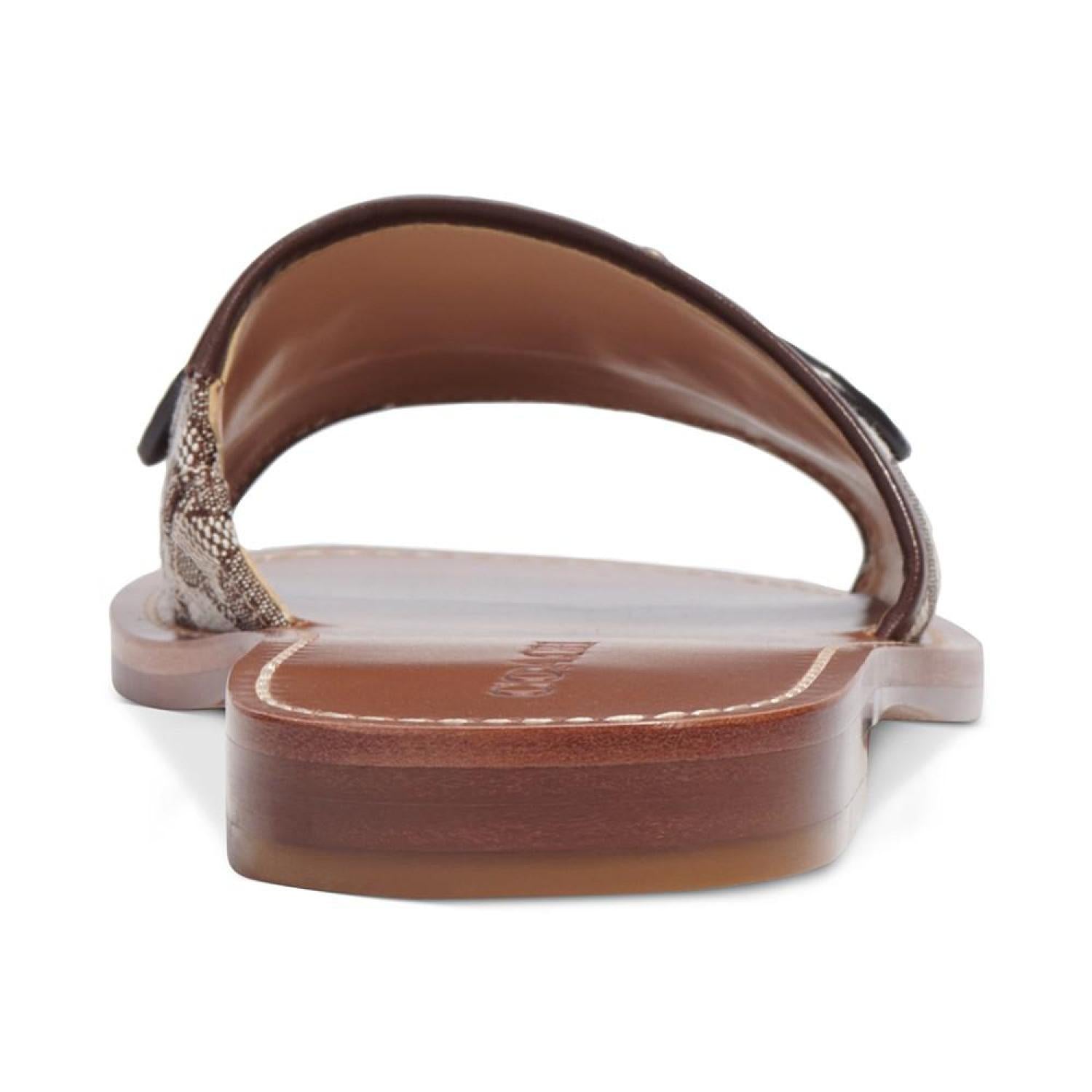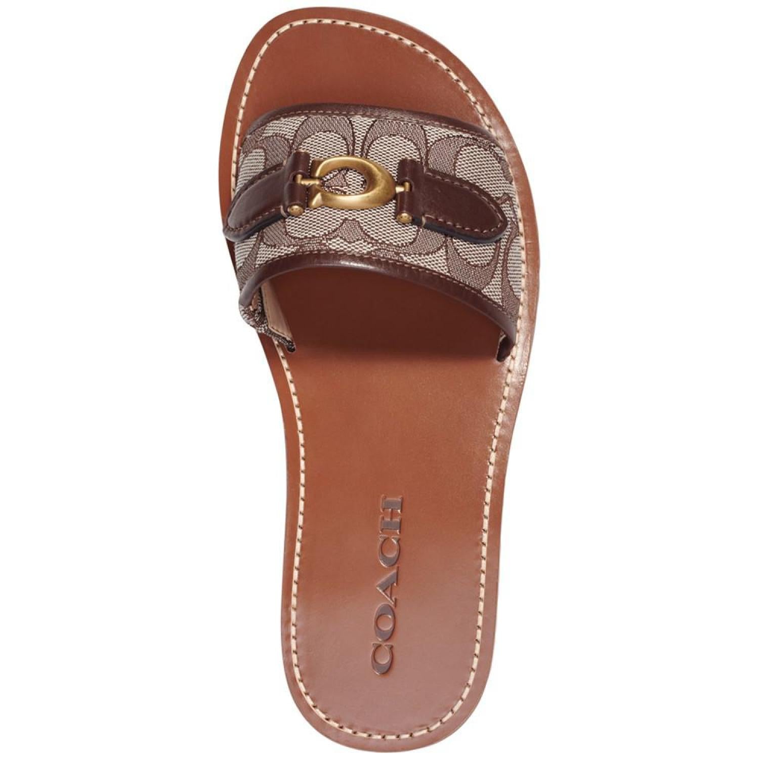 • A simple slide silhouette gets signature flash in the gold-tone detailing on the go-to Ina sandals by COACH.
