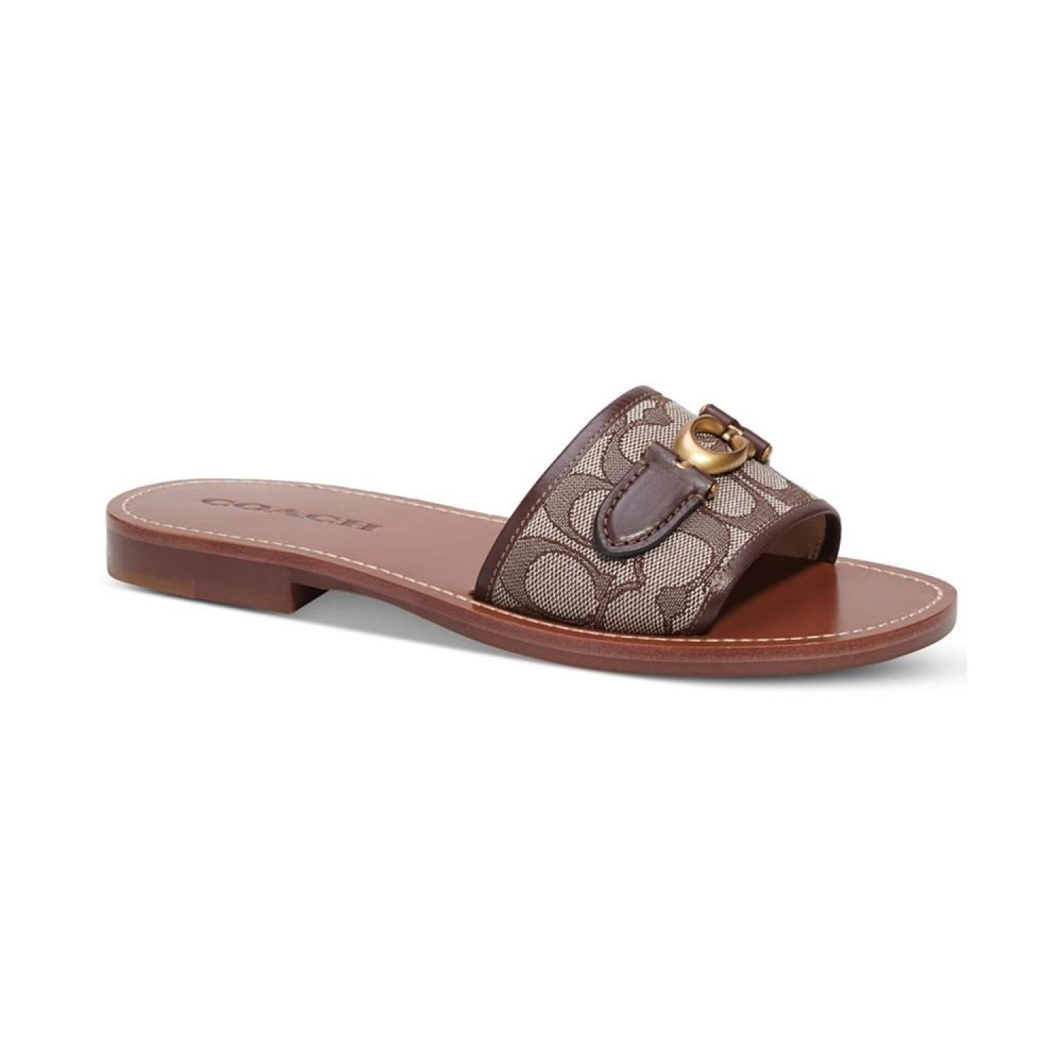 A simple slide silhouette gets signature flash in the gold-tone detailing on the go-to Ina sandals by COACH.