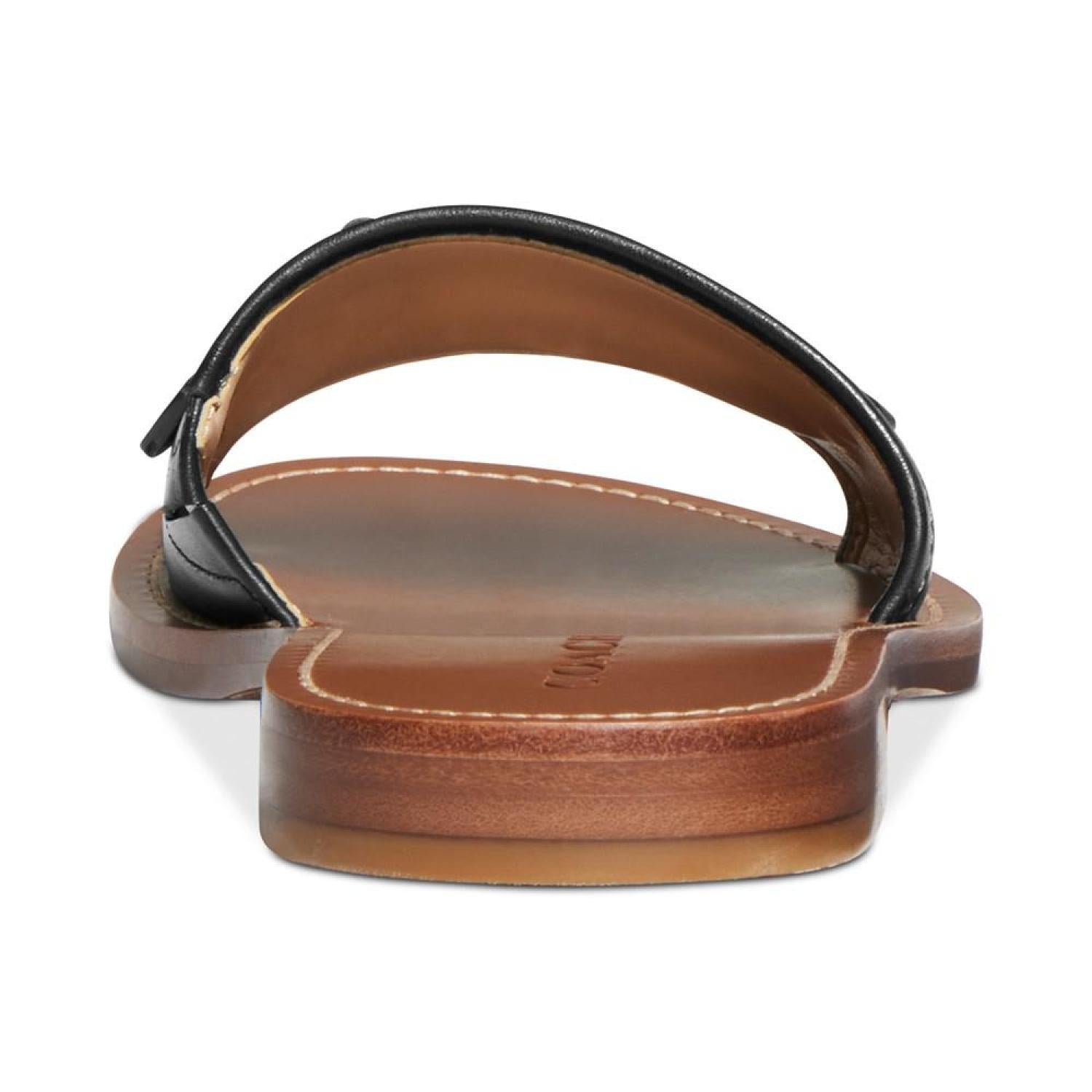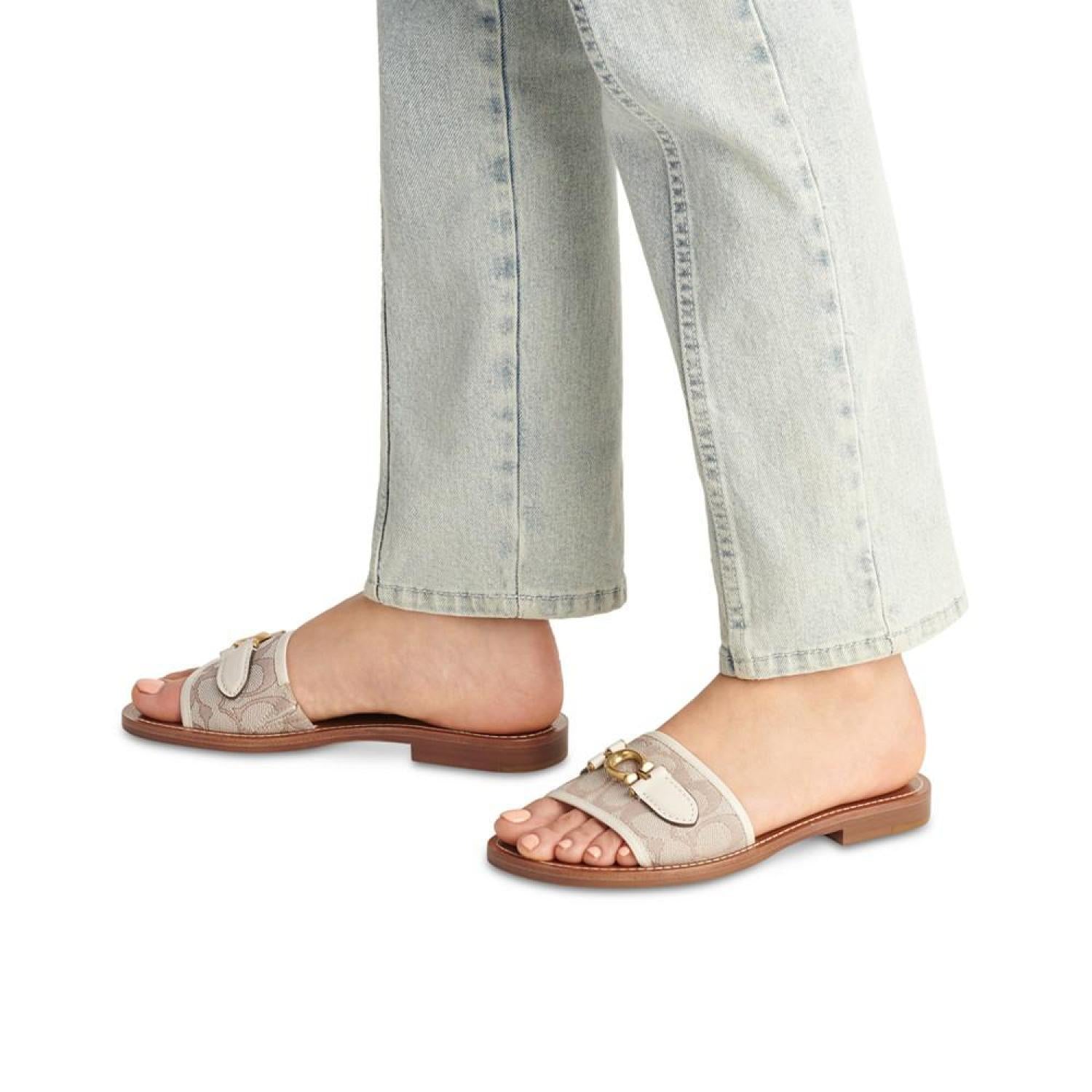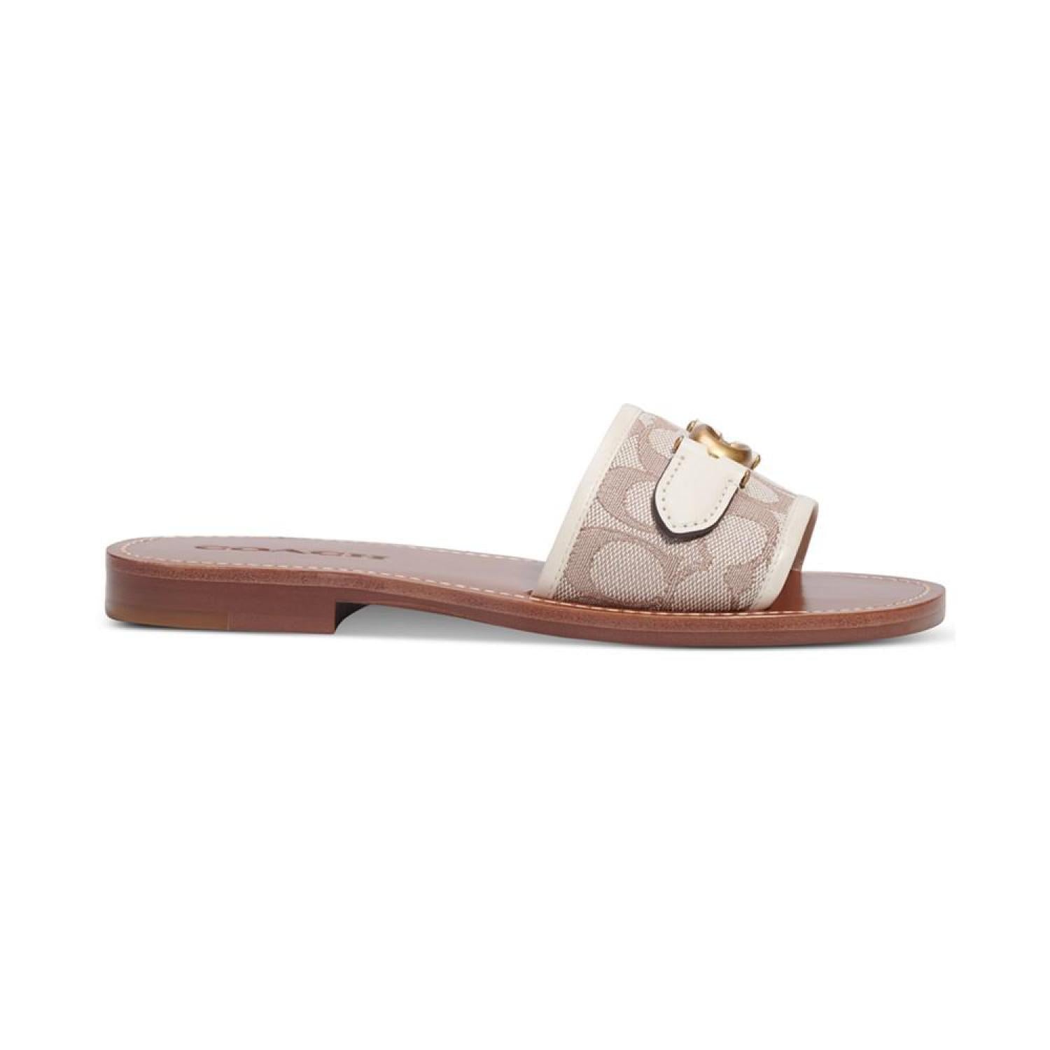 • A simple slide silhouette gets signature flash in the gold-tone detailing on the go-to Ina sandals by COACH.