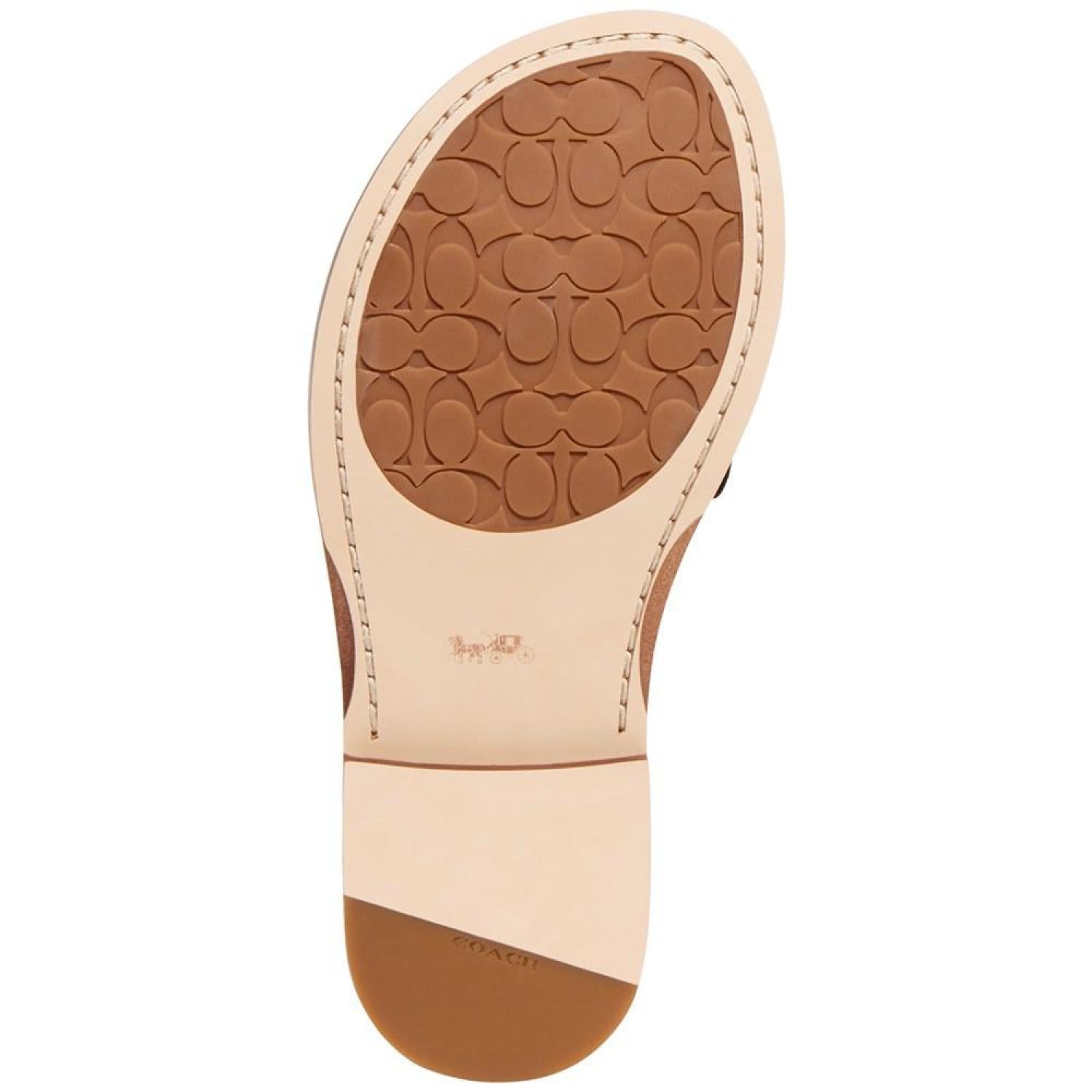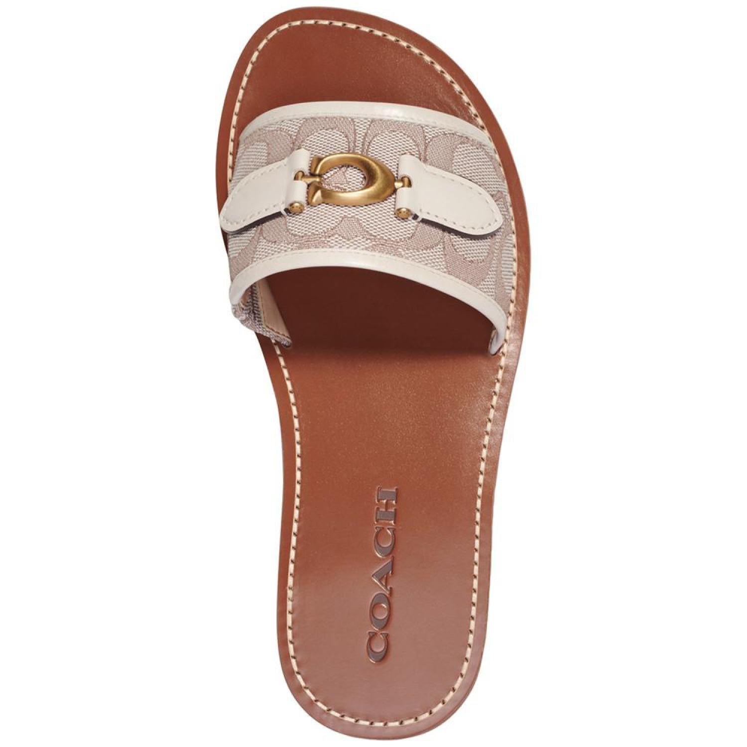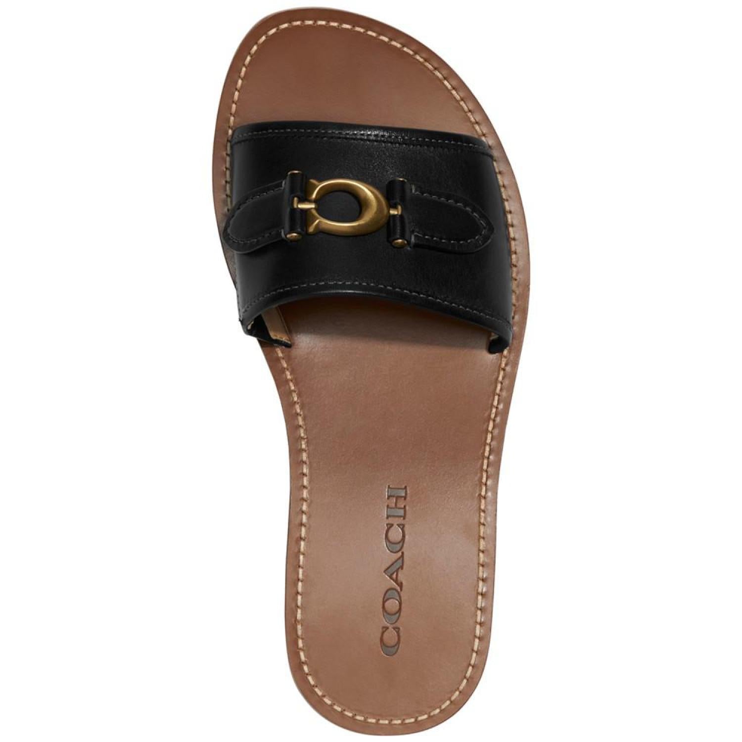 • A simple slide silhouette gets signature flash in the gold-tone detailing on the go-to Ina sandals by COACH.