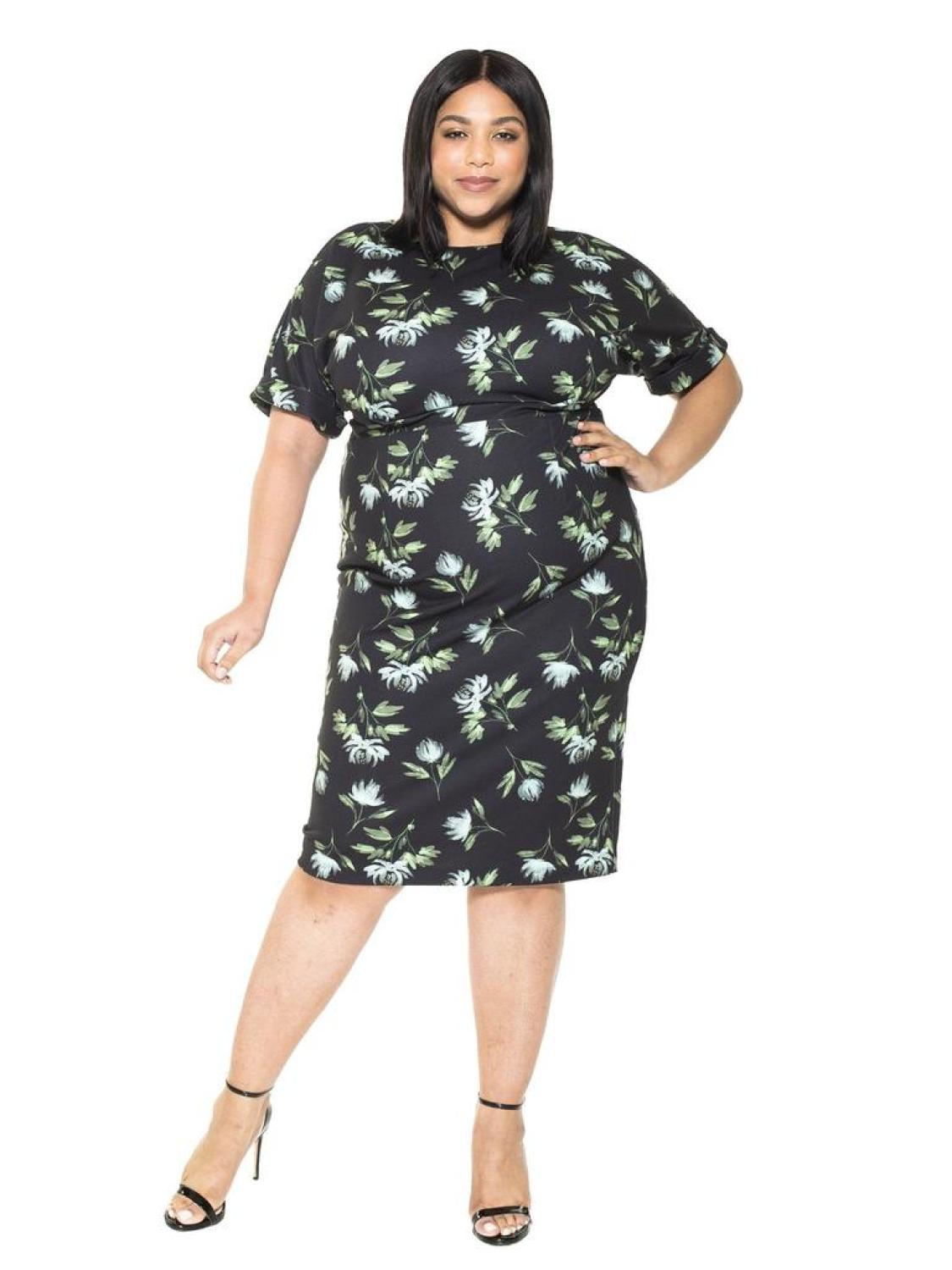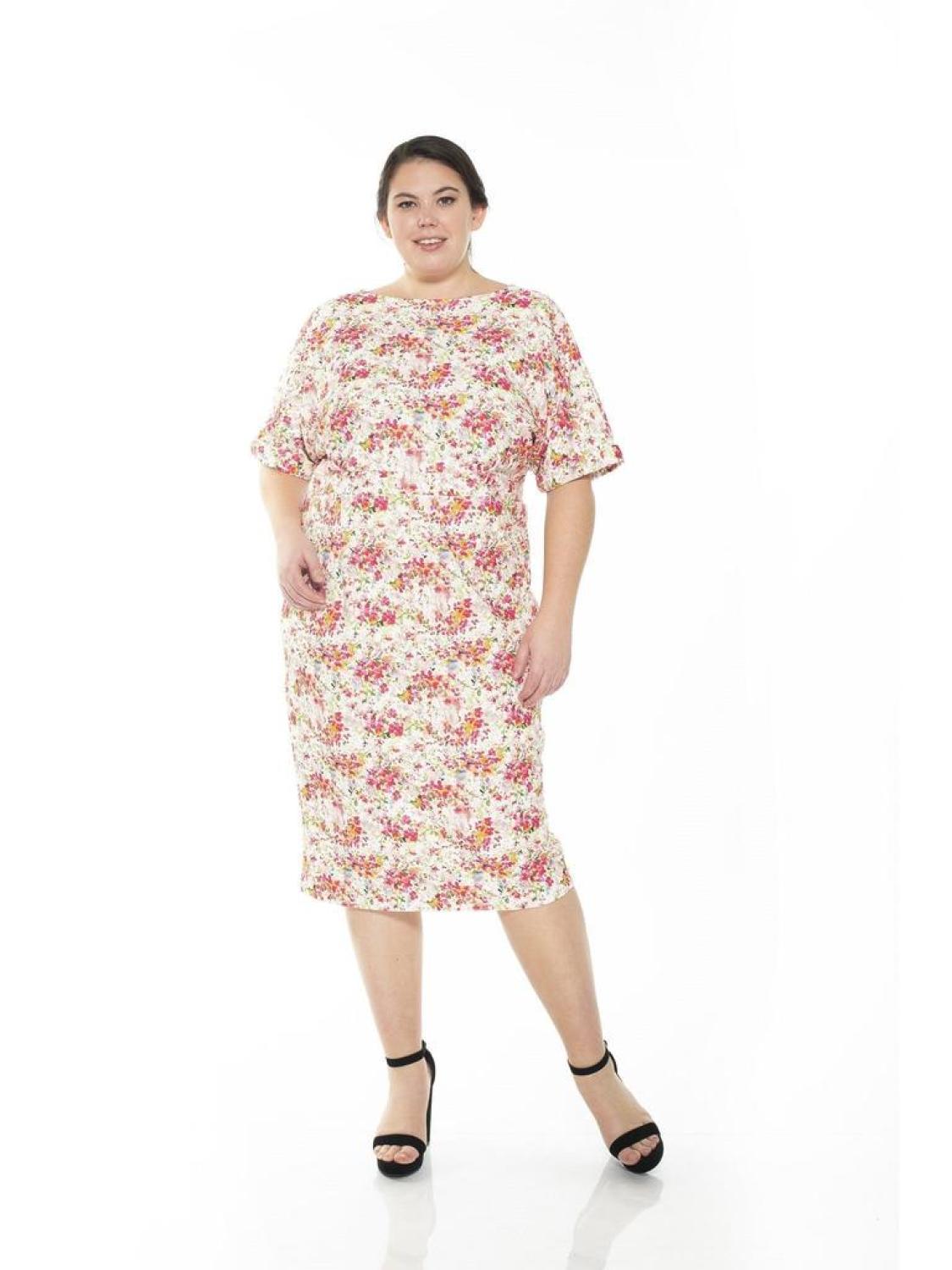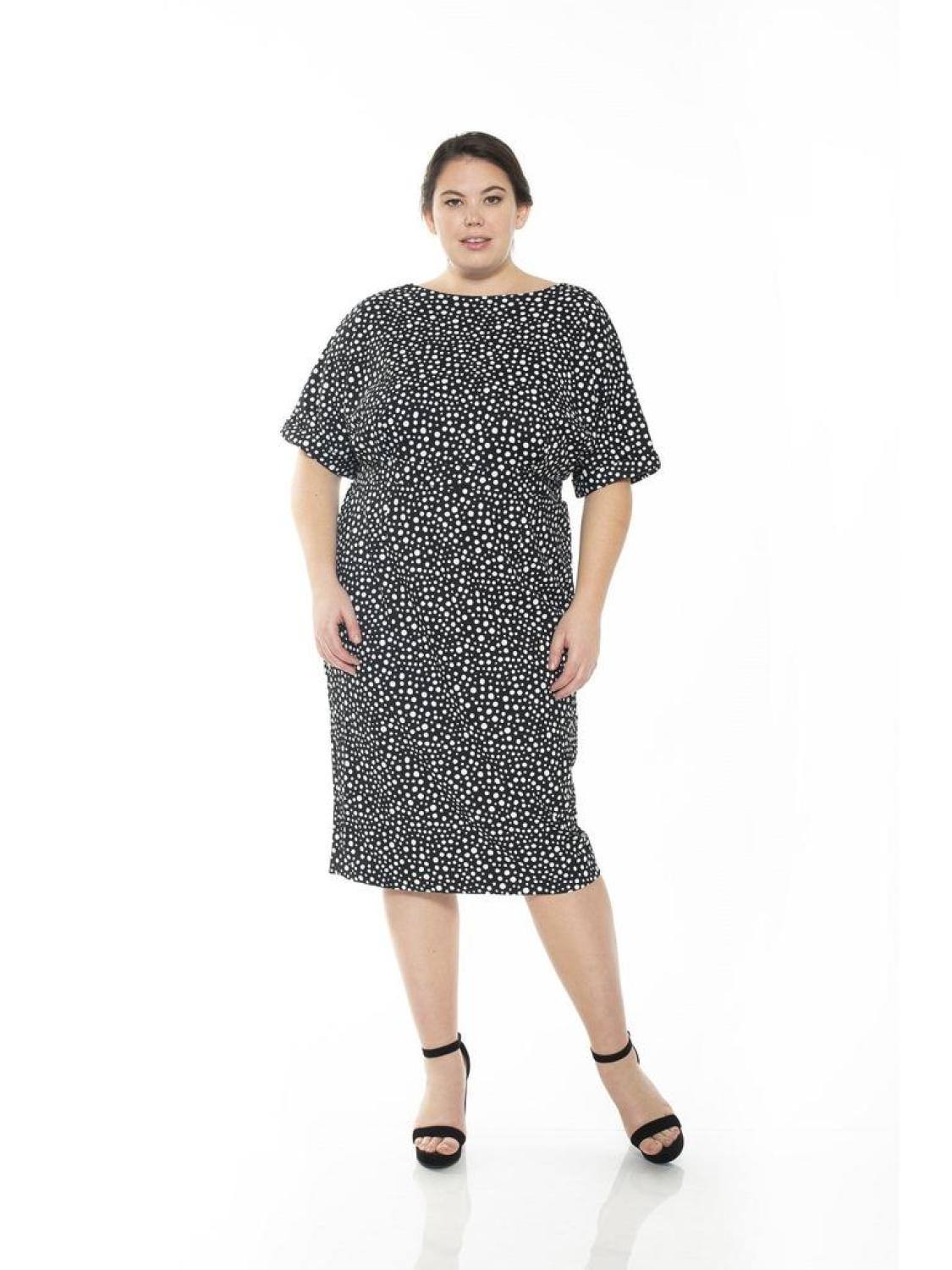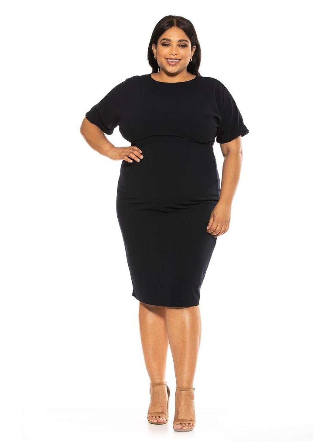 PRODUCT FEATURES Sheath Dress Dolman Sleeve Boat neckline Short dolman sleeves Below the knee midi length Scuba Crepe 95% Polyester, 5% Spandex Lined - 100% Polyester Machine wash, tumble dry low Imported Style D3396PLS