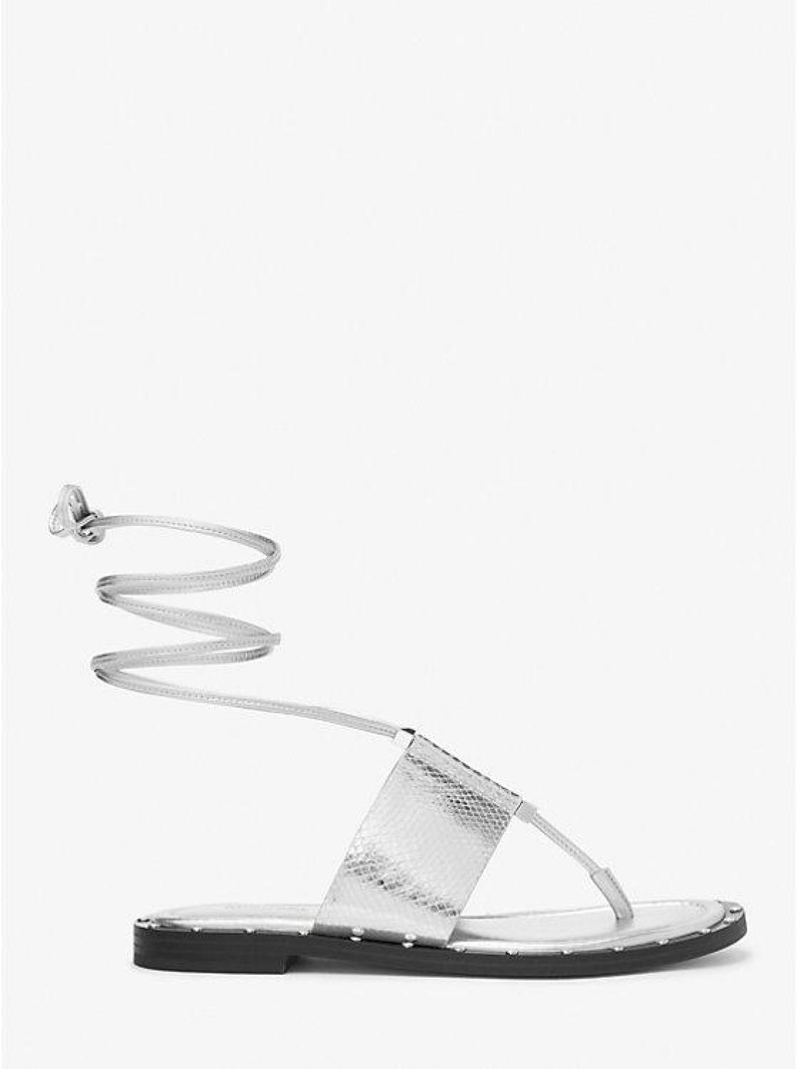 Jagger Metallic Snake Embossed Leather Lace-Up Sandal