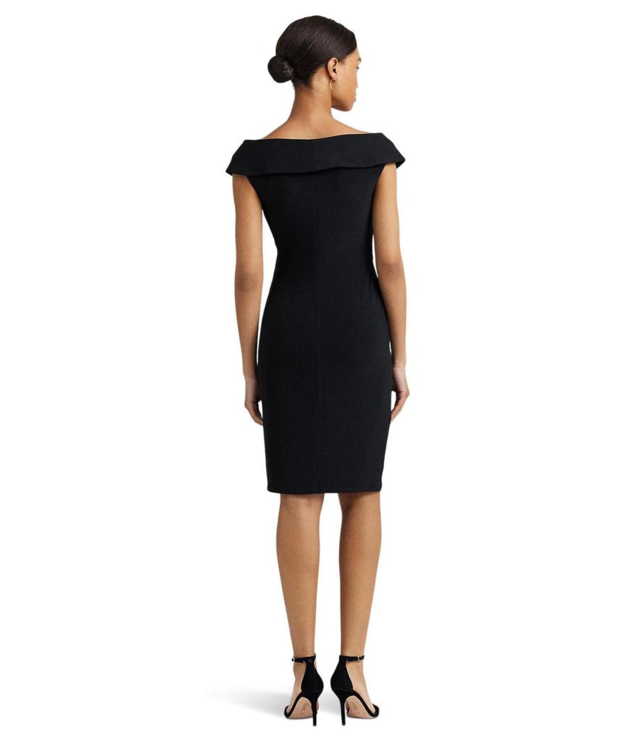 • Be your own kind of beautiful wearing the LAUREN Ralph Lauren® Jersey Off-the-Shoulder Cocktail Dress. Tailored for the modern woman, it features foldover collar, sleeveless style, and twisted detail at waist that gives you a petite look.