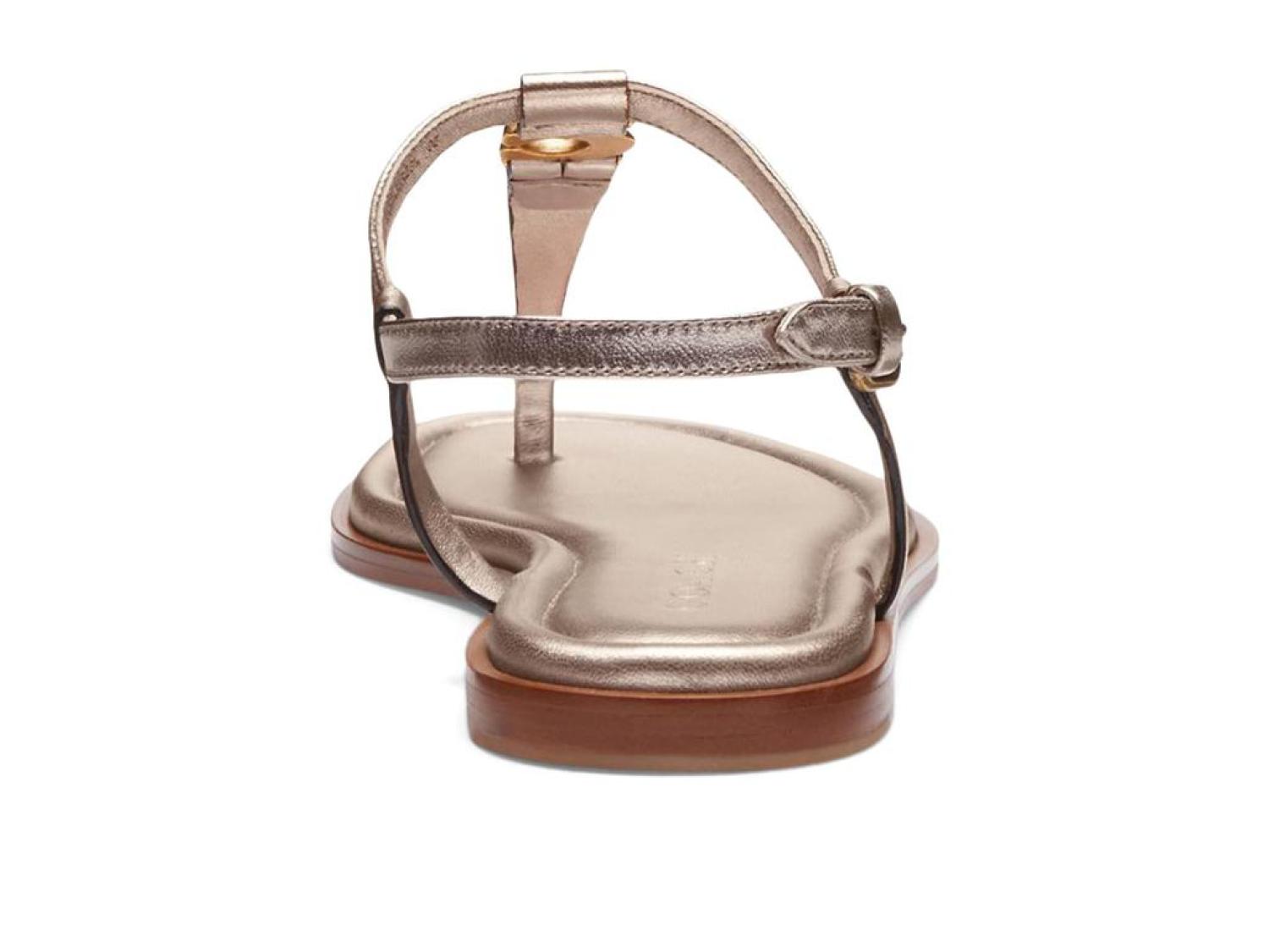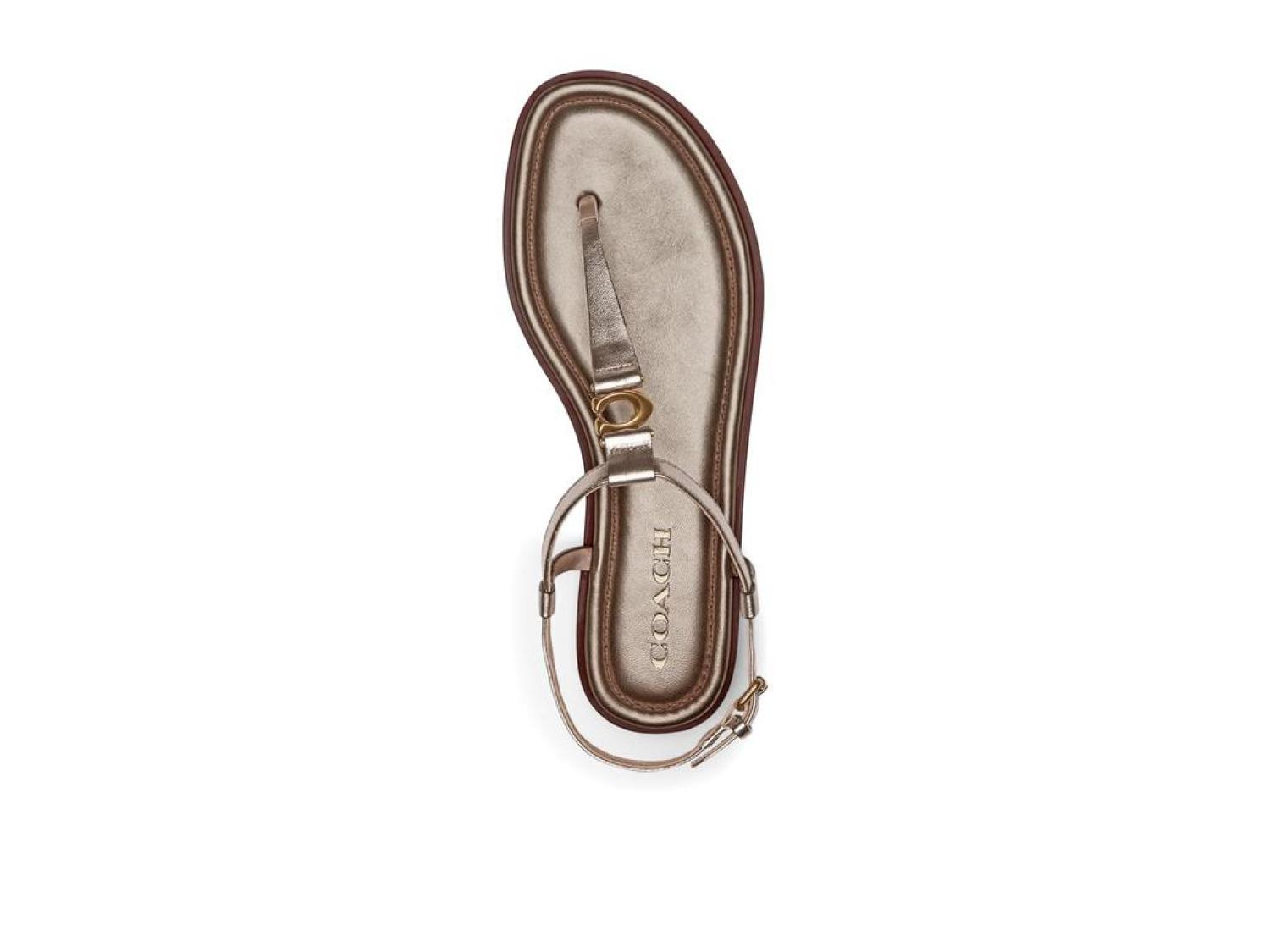 Step out in style wearing the COACH® Jessica Sandals. Made with metallic leather upper and leather lining, these sandals are as chic as they are comfortable. The man-made leather footbed ensures a plush feel with each step, while the signature brand logo on the front showcases your fashion-forward taste.