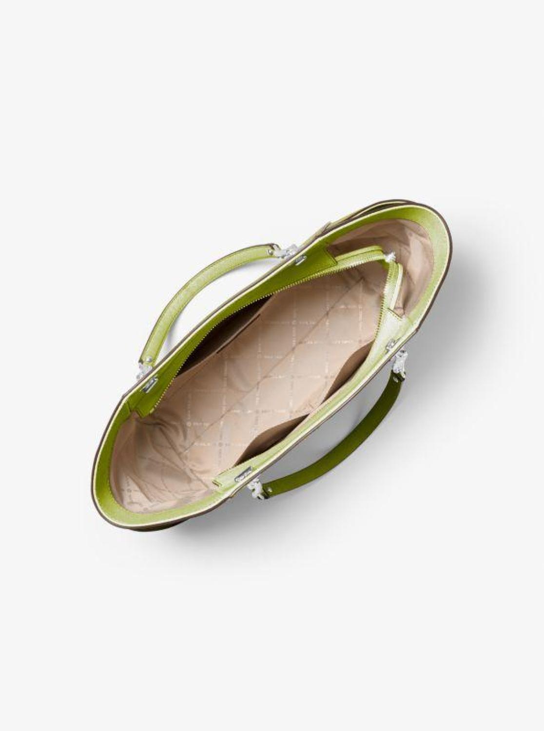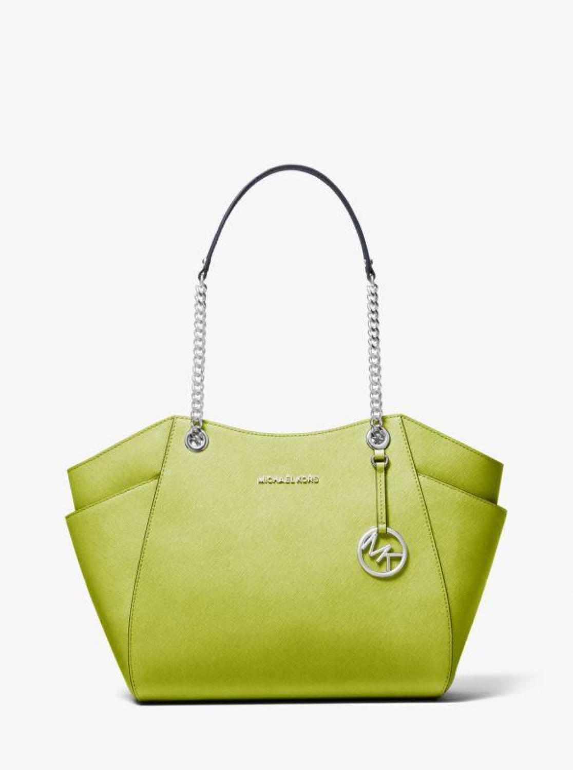 Ready to take you anywhere, this Jet Set shoulder bag is rendered in Saffiano leather and finished with our signature “MK” charm. The structured shape features convenient side pockets and a secure top-zip fastening. Use it to carry all your travel essentials.