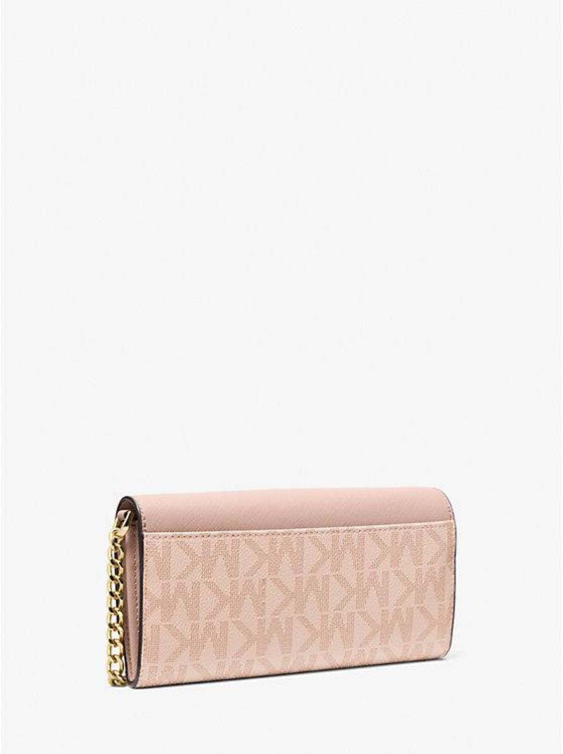 Perfect for an evening out, this Jet Set chain wallet features a streamlined shape and an organized interior with ample space for your cards, cash and phone. The Signature logo-print canvas construction delivers rich texture, while chain-link details add a touch of shine.