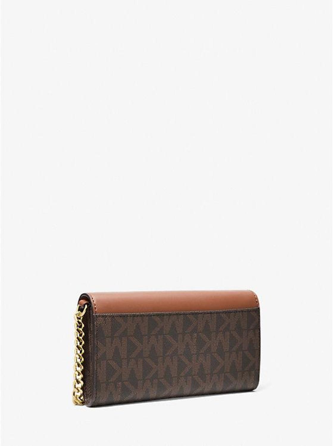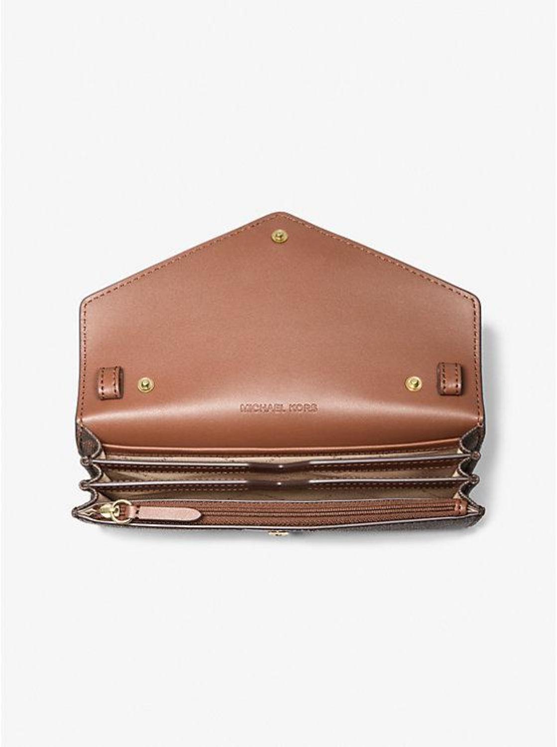 • Perfect for the seasoned traveler, this convertible wallet will keep all your essentials fashionably in order. Designed with a snap-fastened envelope closure, it features dedicated pockets for your phone, coins and cards. The gilded chain-link strap can be worn across the body, or removed in order to turn the bag into a clutch.