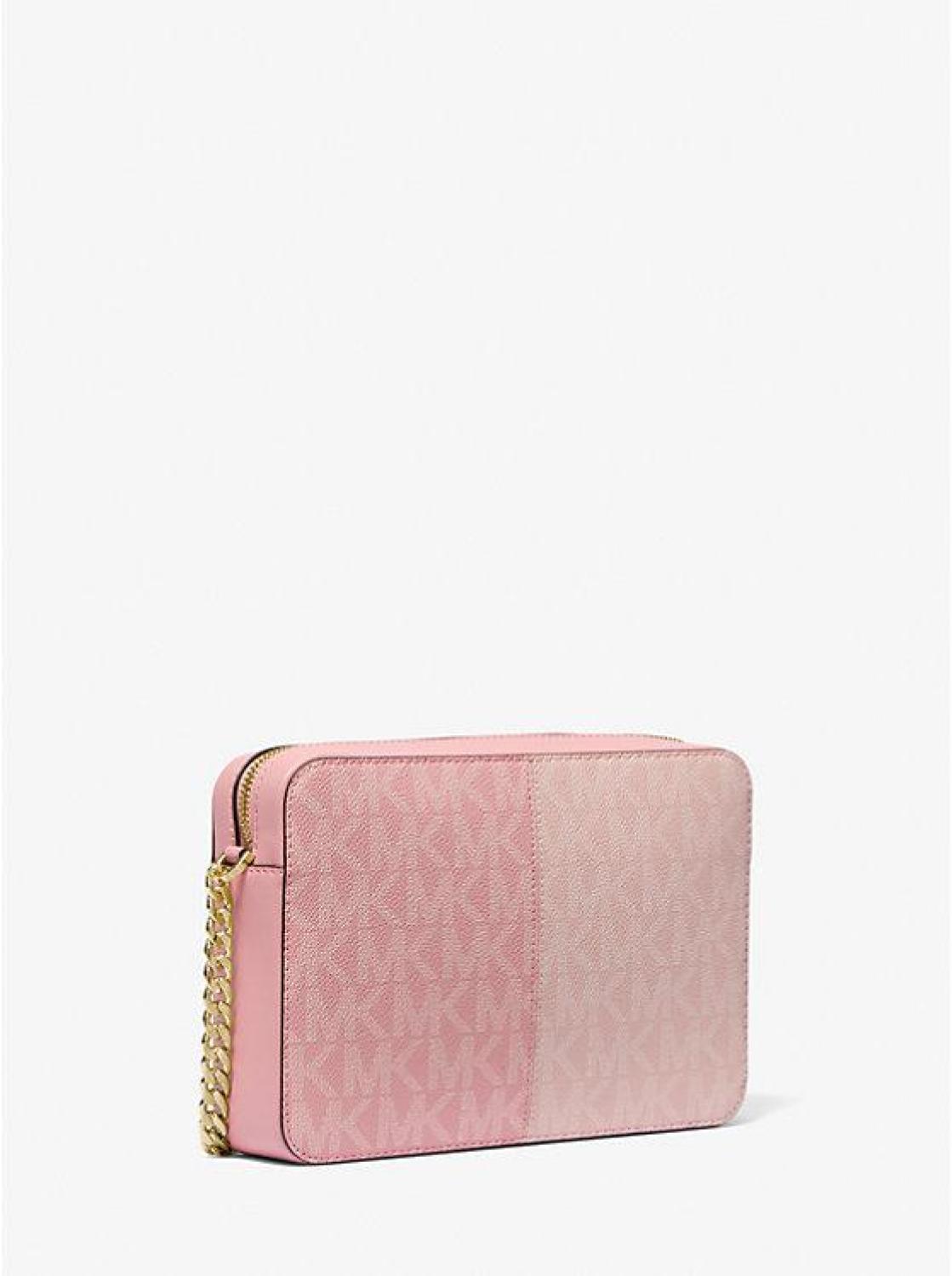 • A versatile, clean-lined silhouette with a graphic twist, the Jet Set crossbody bag is an instant classic. Polished rose gold-tone hardware and a two-tone Signature logo print finish give it a luxe sensibility, while the spacious interior makes organizing your essentials a breeze. Wear it to add a high-shine twist to any ensemble.