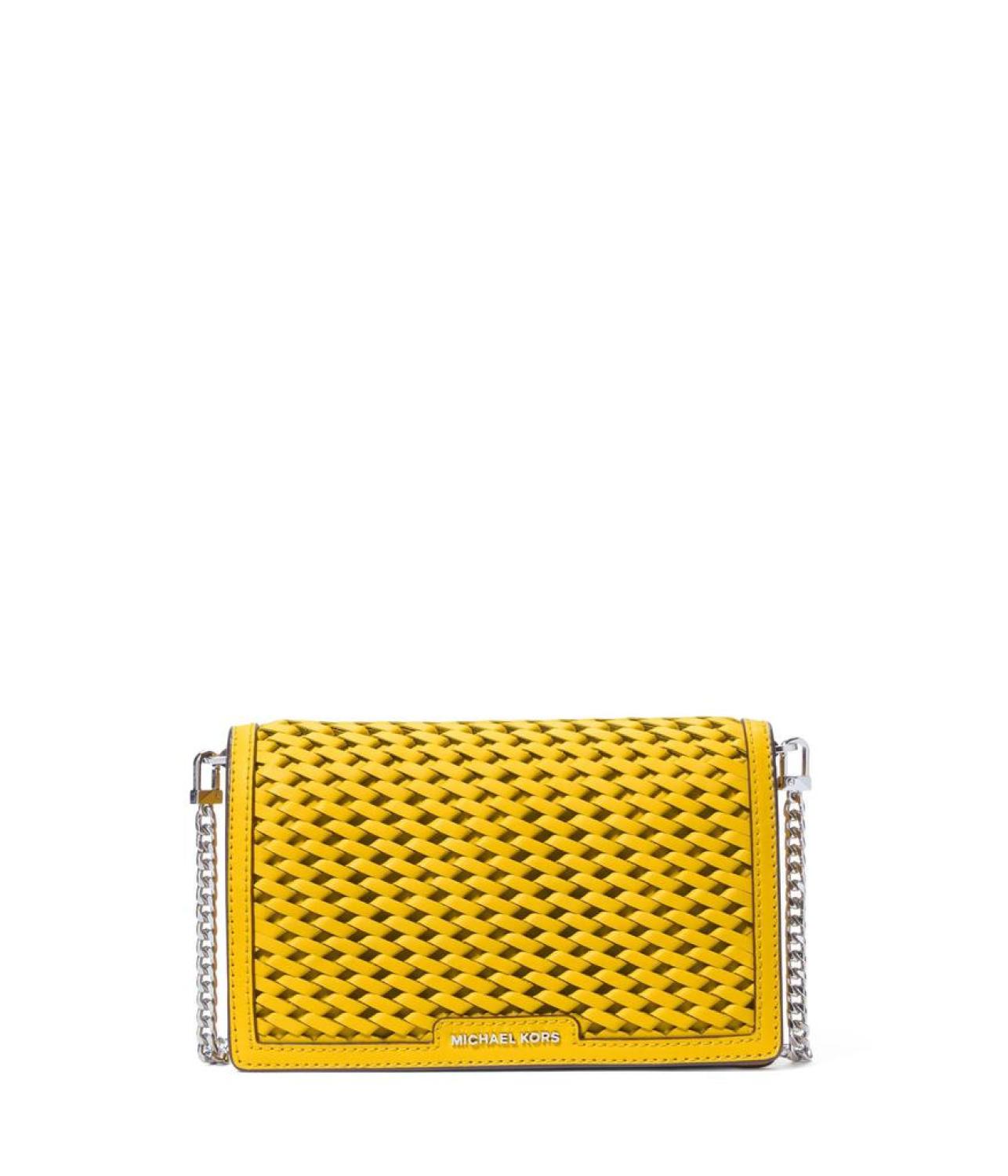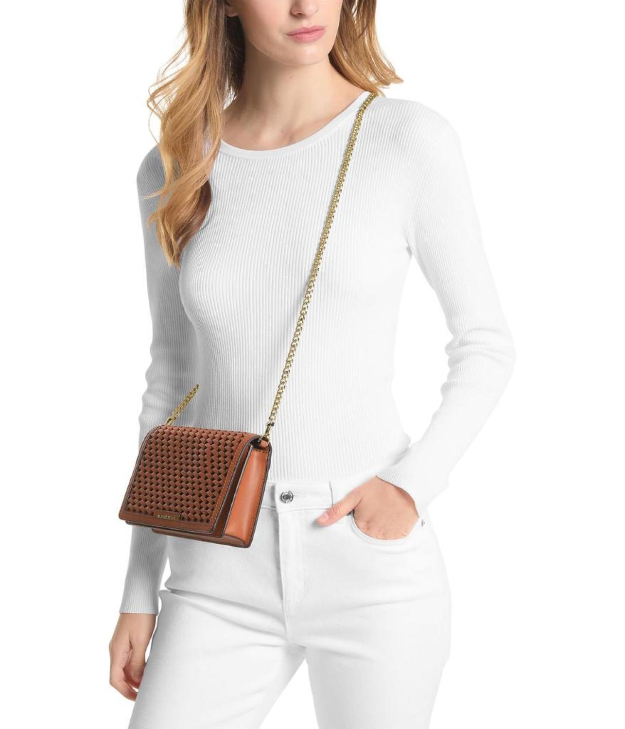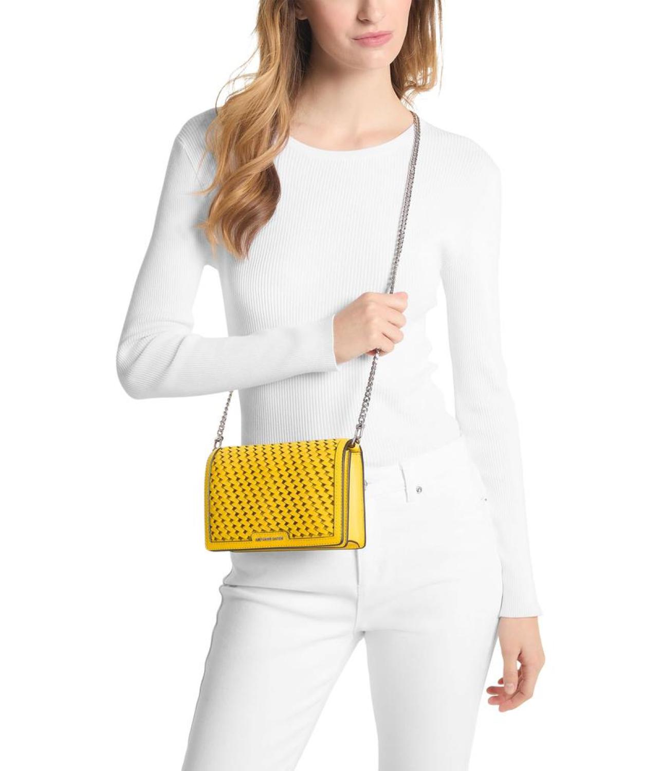 • Add an impeccable extension to your style while carrying the MICHAEL Michael Kors® Jet Set Medium Flap Chain Crossbody. It features a versatile hand-woven flap with magnetic snap closure and detachable chain strap for additional ease.