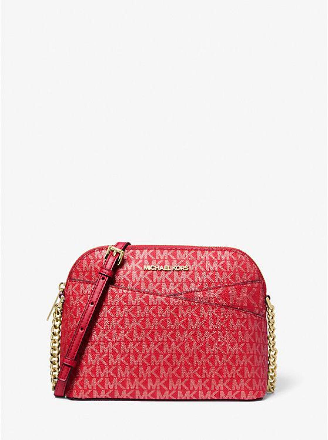 Jet Set Travel Medium Metallic Signature Logo Dome Crossbody Bag