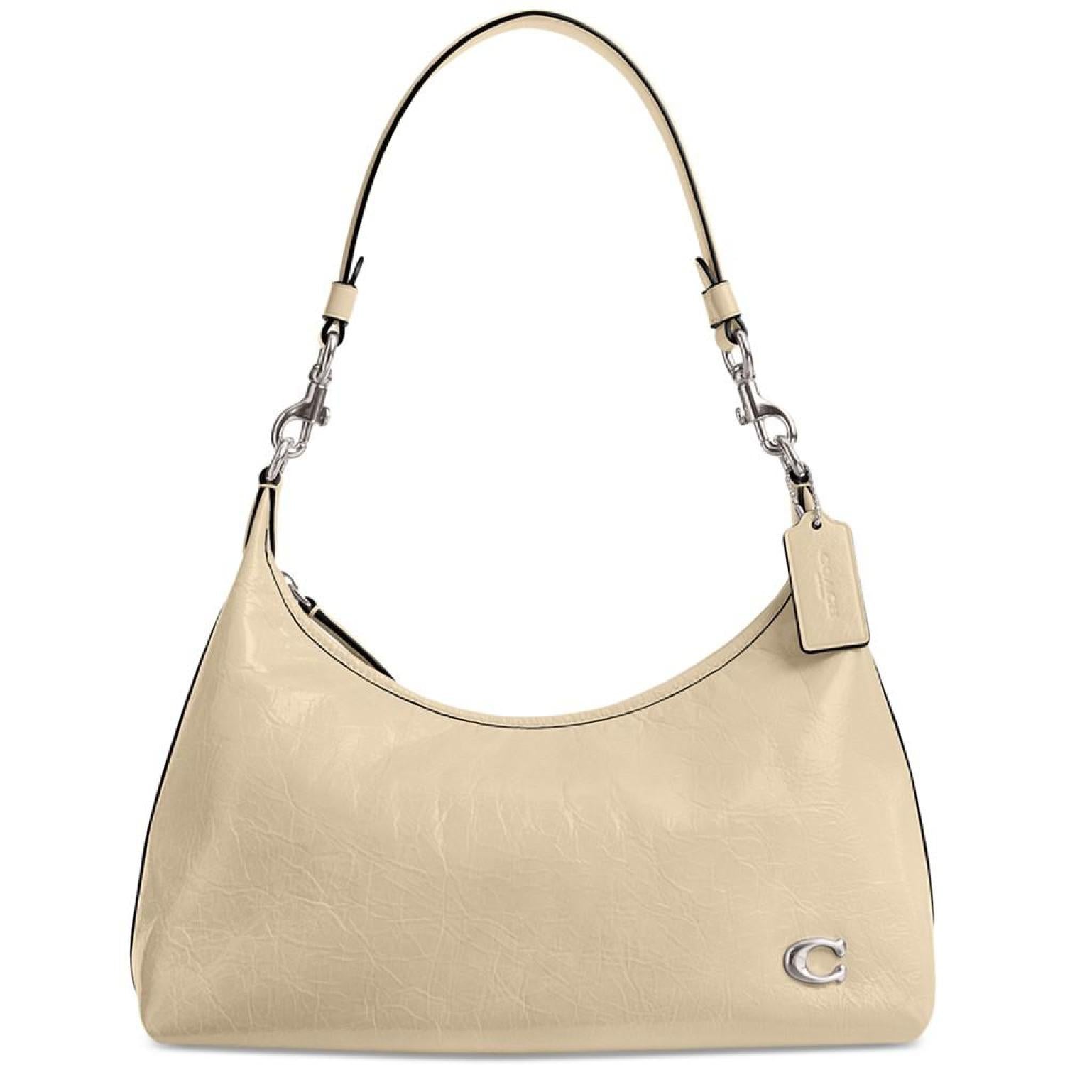 This Juliet shoulder bag by COACH features glazed leather and a slouchy silhouette with a versatile adjustable strap. Medium sized bag; 12"W x 8-3/4"H x 4-1/2"D (width is measured across the bottom of handbag) Silhouette is based on 5'9" model 11" L removable handle; 21-1/2" L removable crossbody strap Zip closure Silver-tone exterior hardware; interior snap pocket Fabric lining Leather Spot clean Imported