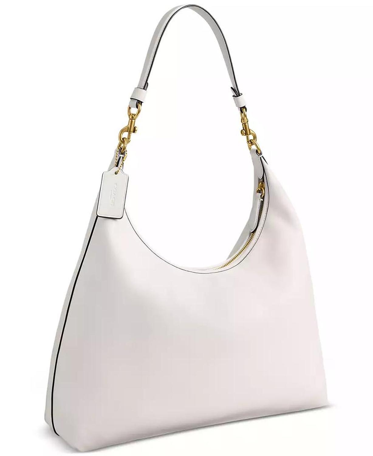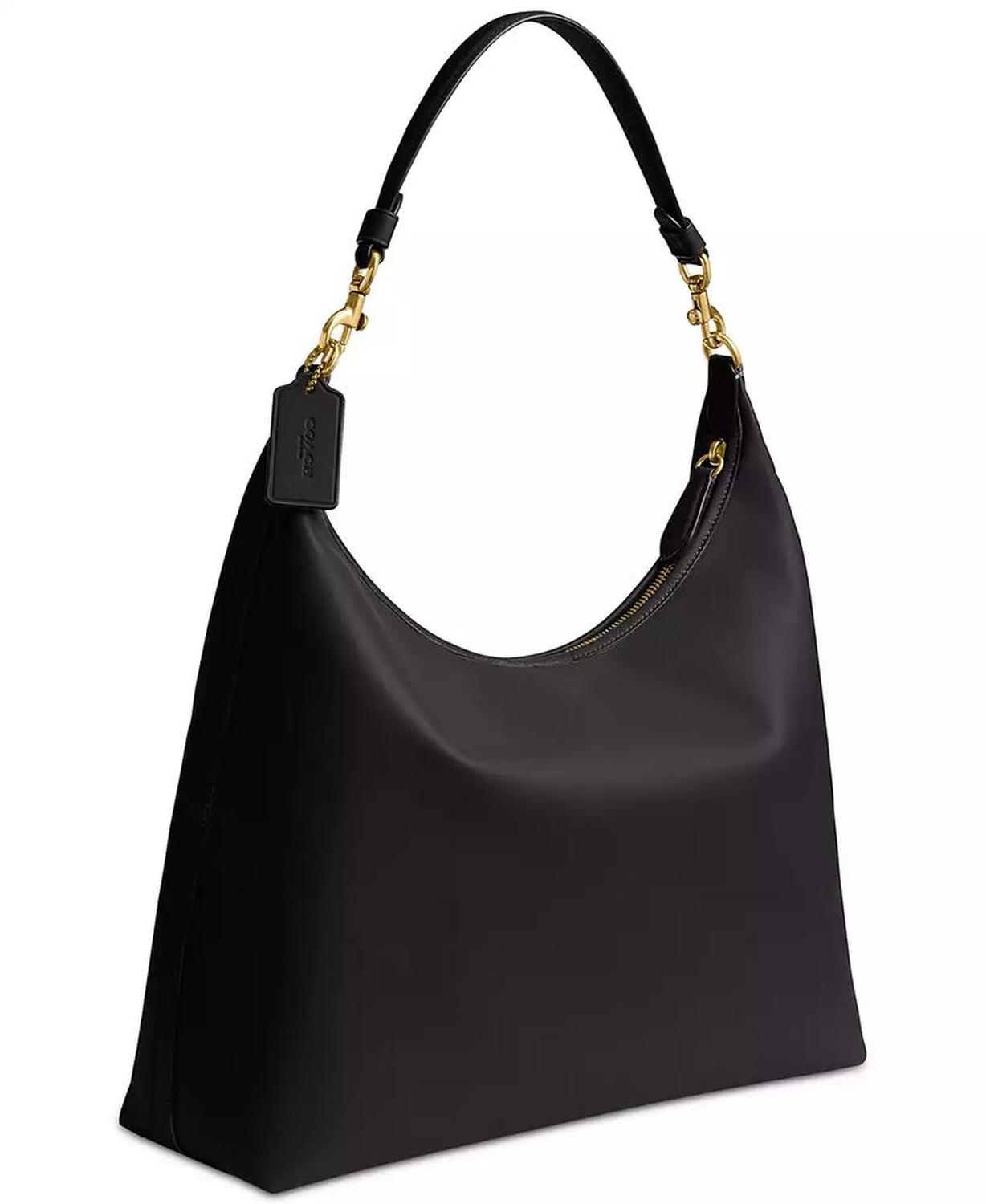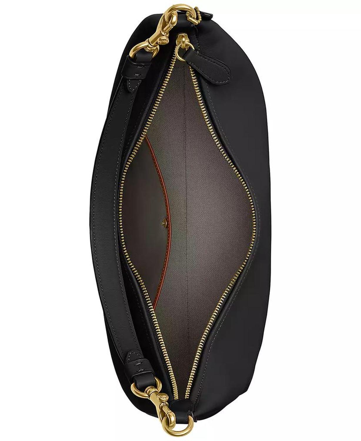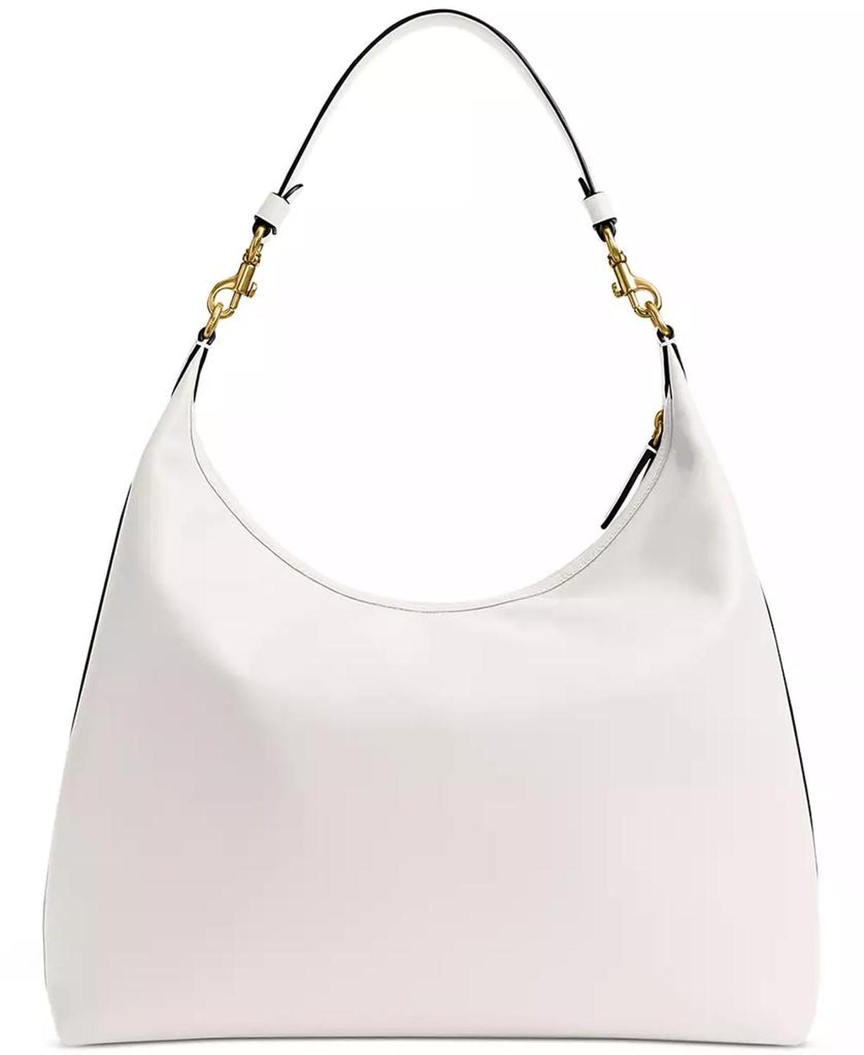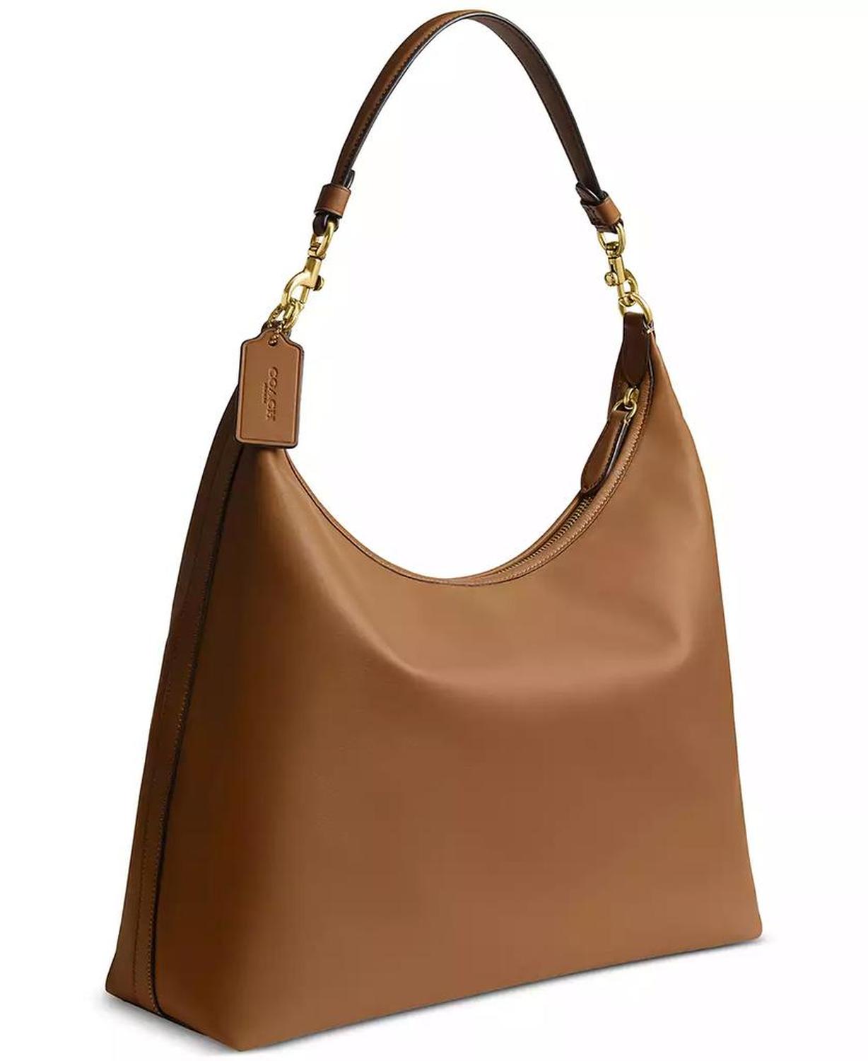 Timeless with a twist, the Juliet bag by COACH is a sophisticated style with a slouchy, relaxed shape. It's sleek, spacious, stylish, functional, and basically everything you want in a bag. Large sized bag; 15"W x 15"H x 5-1/4"D (width is measured across the bottom of handbag); 1.43 lb. approx. weight Silhouette is based on 5'9" model 12" L removable short strap Zip closure Brass exterior hardware; interior snap pocket Tablet compatible (std. size 8"-10") Fabric lining Glove-tanned leather Spot clean