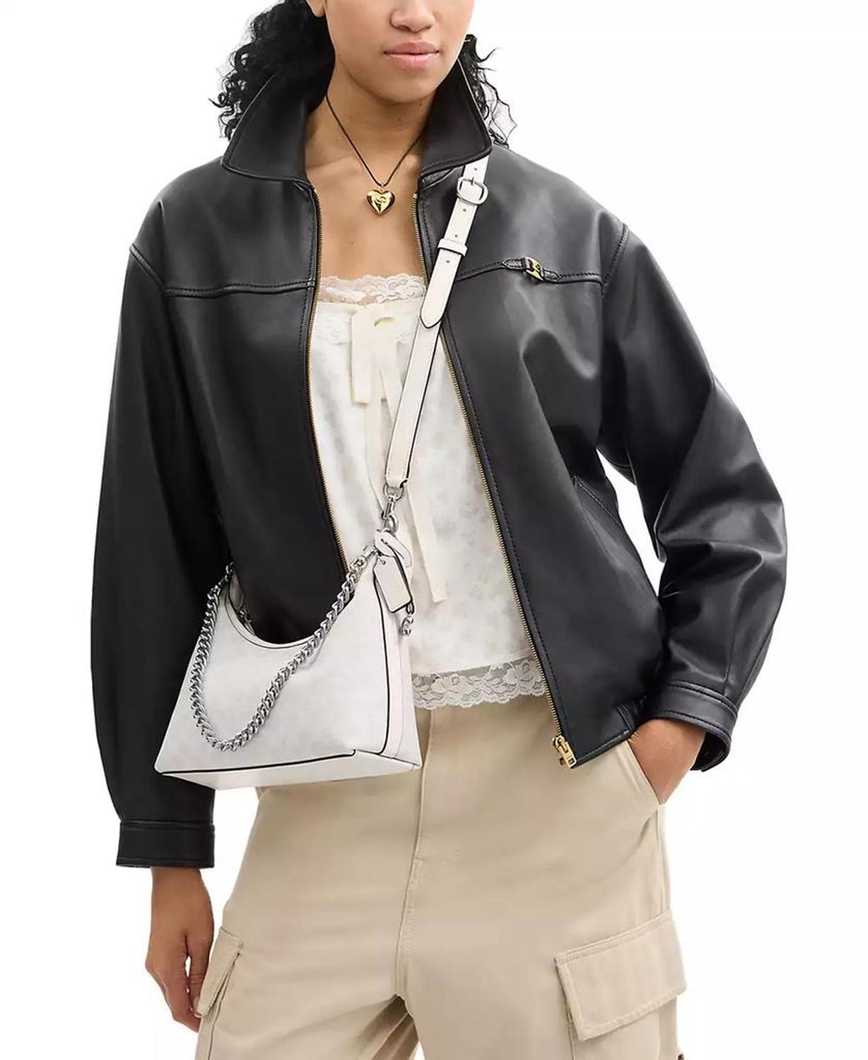 A timeless wardrobe staple, this handbag by COACH is crafted in signature canvas and leather with signature accents and features versatile carry options with a convenient zip closure. Small-sized bag; 10-3/4"W x 4-1/2"H x 4"D (width is measured across the bottom of handbag) Silhouette is based on 5'9" model 11-1/2" L removable chain handle; 21-1/2" L removable long strap Zip closure Silver-tone exterior hardware; interior snap pocket Fabric lining 84% PVC, leather Spot clean Imported