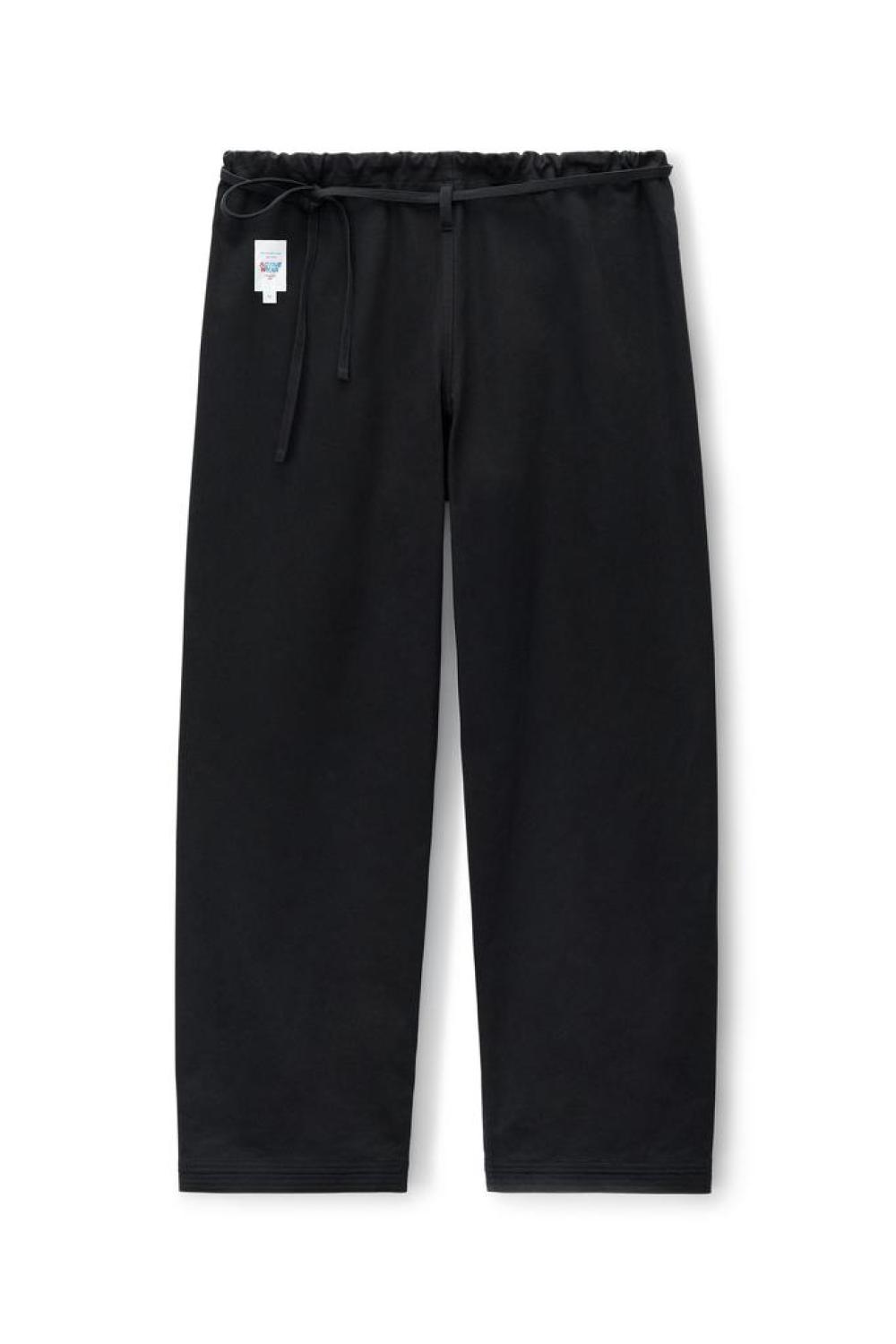 karate pant with activewear label and self ties at waistband for adjustable fit in navy workwear cotton