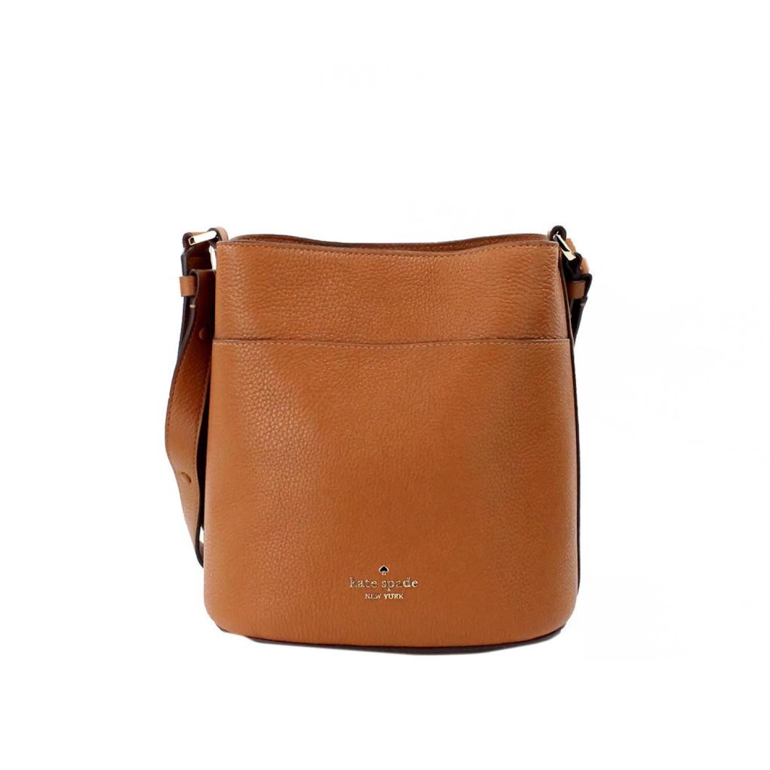 Style - Kate Spade Leila Small Warm Gingerbread Bucket Shoulder Crossbody BagMaterial - Pebbled LeatherFeatures - Adjustable Shoulder or Crossbody Strap, Magnetic Closure, Lined, Inner PocketsMeasures - 21.59 cm L x 22.22 cm H x 14.60 cm D
