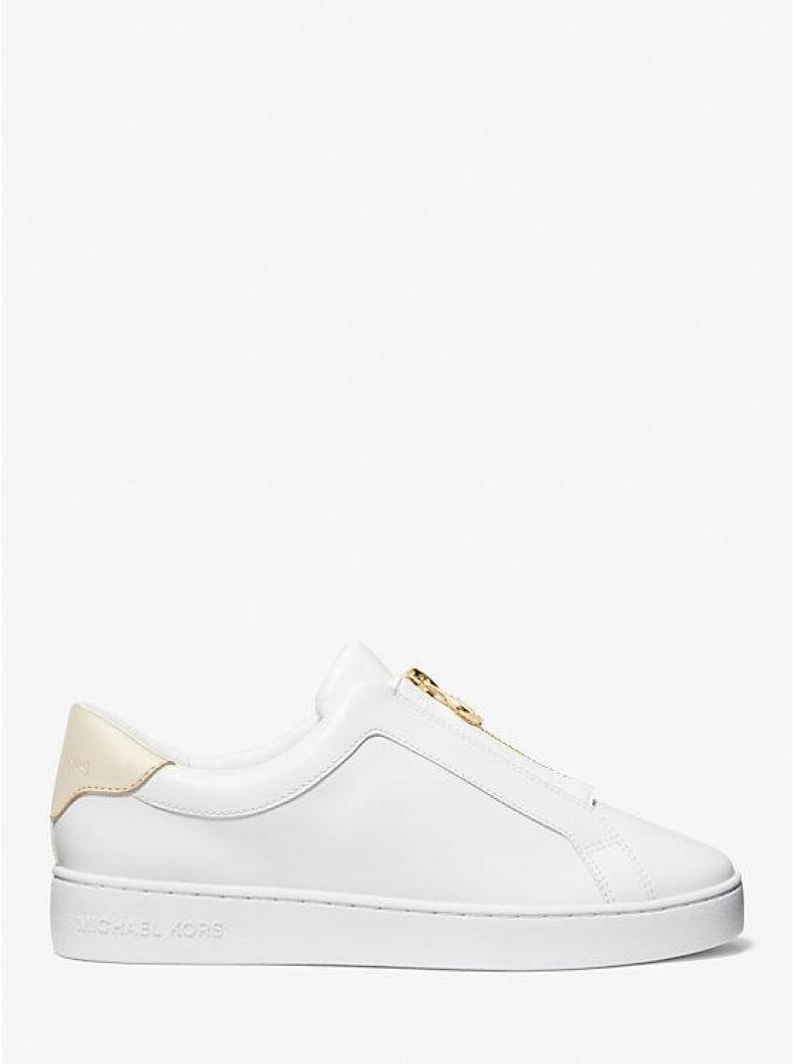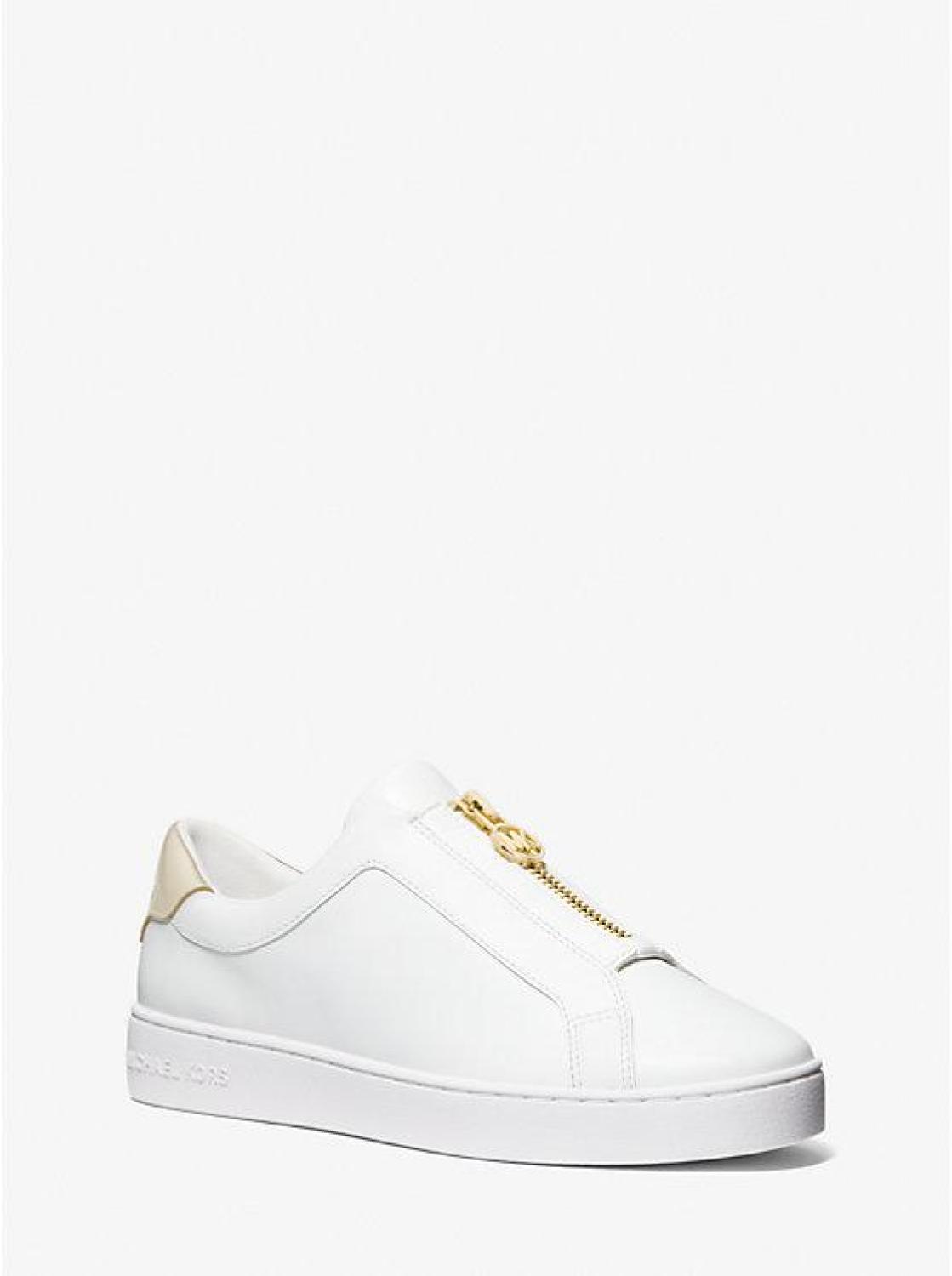 • Updated with a practical and stylish zip-up detail, our latest Keaton sneaker is a classic leather pair you’ll reach for often. The low-top silhouette features slightly cushioned insoles for comfort, while the rubber soles will grip slick city streets. Showcase the metallic back panel with cropped jeans and mini hemlines.