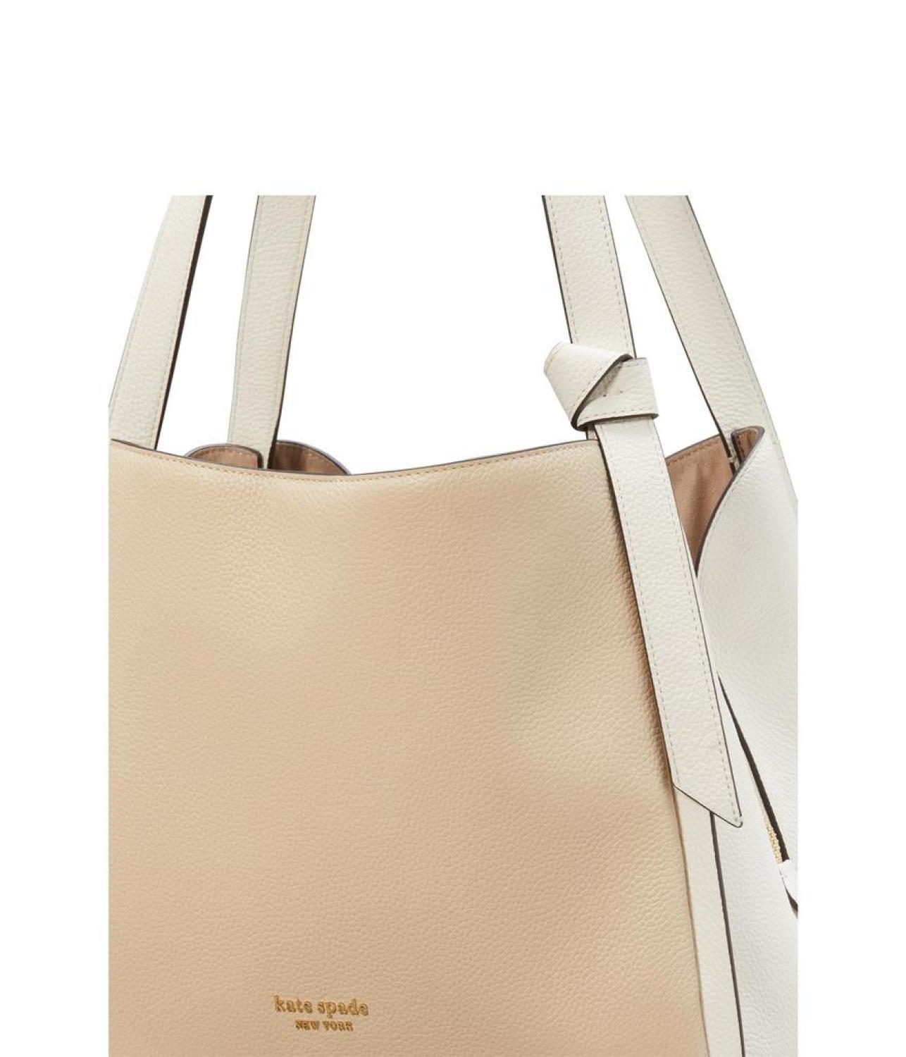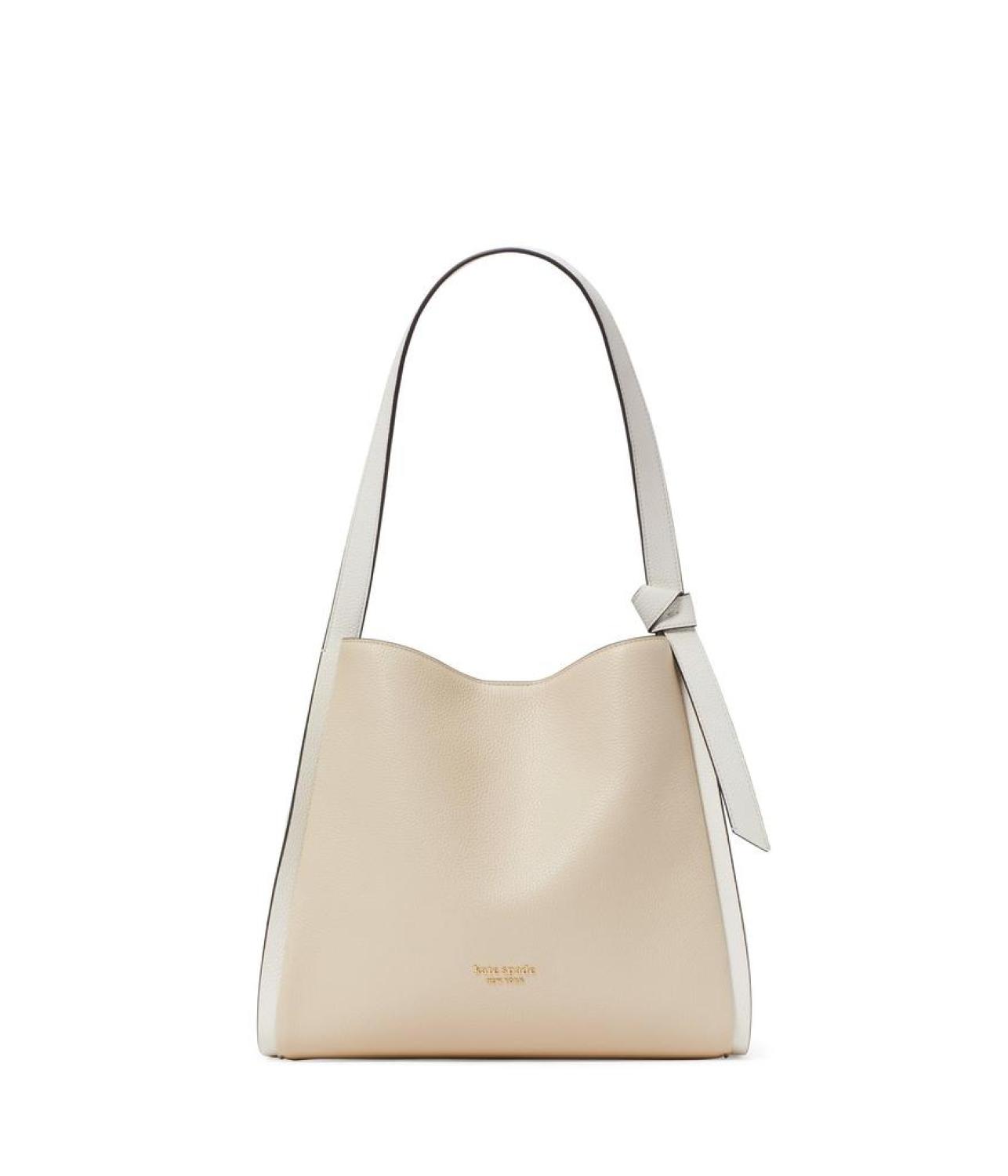 Confidently polished, wherever you go while carrying the Kate Spade New York® Knott Color-Blocked Shoulder Bag! Crafted from cow leather with a polyester lining, enjoy durability and style in one. Its spacious compartment and pocket, coupled with a convenient snap closure, ensure effortless organization. Elevate your weekend with this Bleecker crossbody, your go-to for both trendsetting flair and practical functionality! Imported. Please note, the hardware color and interior lining may differ from the color shown in the photo. Measurements: Weight: 1 lb