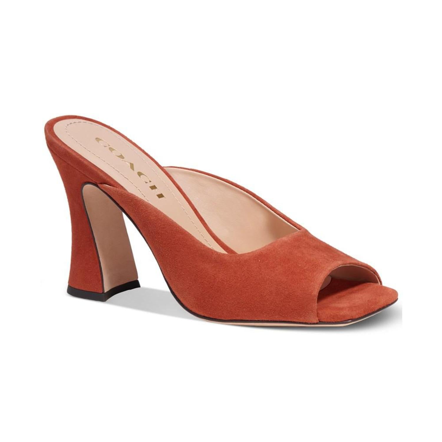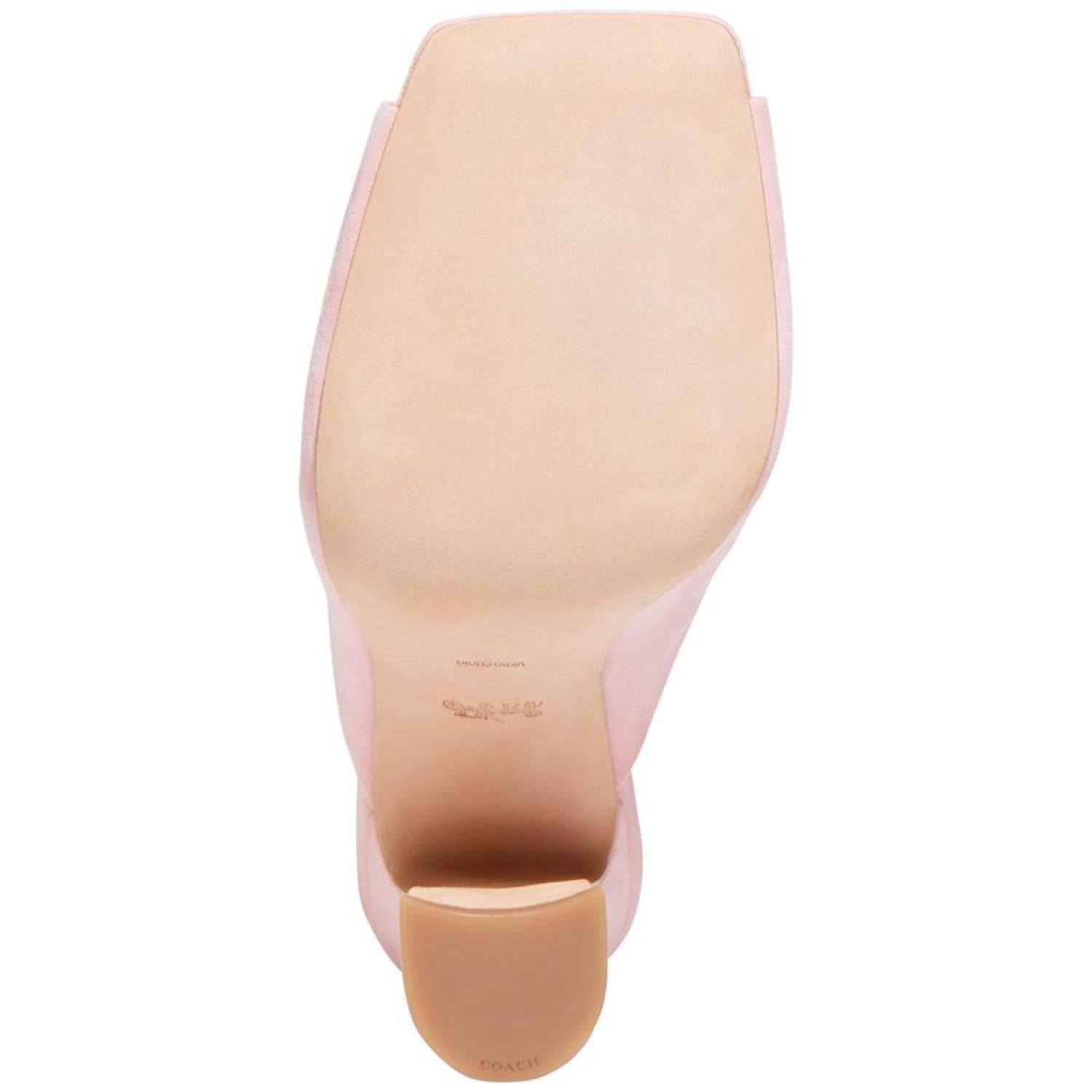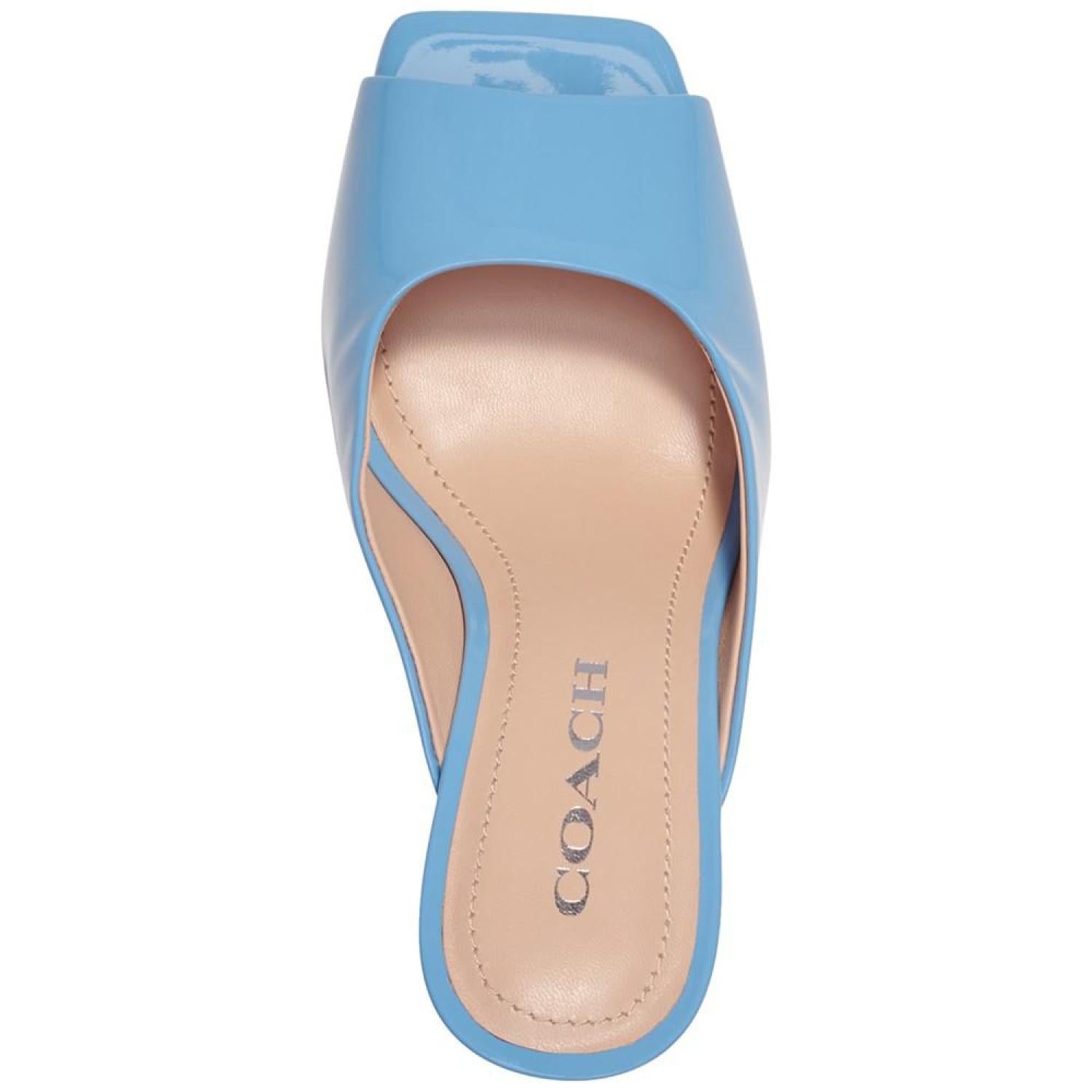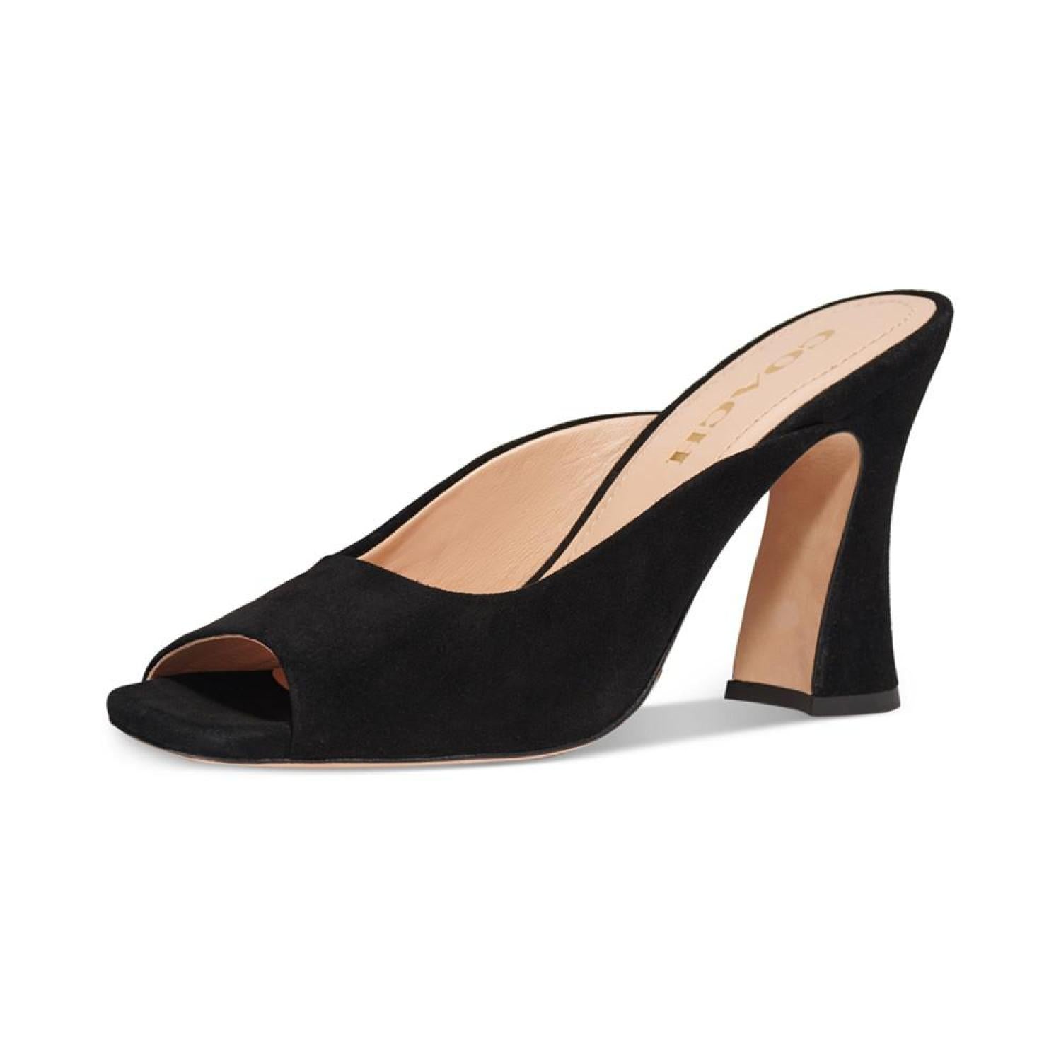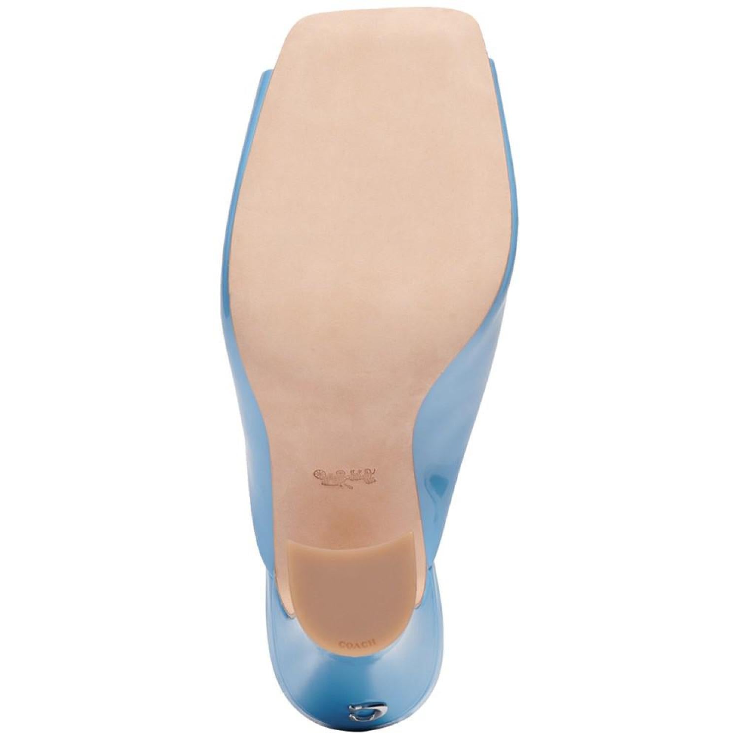 Square toes and sculpted heels update a sophisticated slide silhouette in the elegant curves of the Laurence sandals by COACH. 3-1/2" sculpted architectural heel; 1/4" platform Style No. CI230: Patent leather Style No. CI228: Suede Style No. CJ265: Metallic leather Leather sole Imported