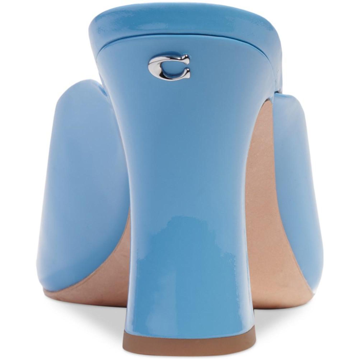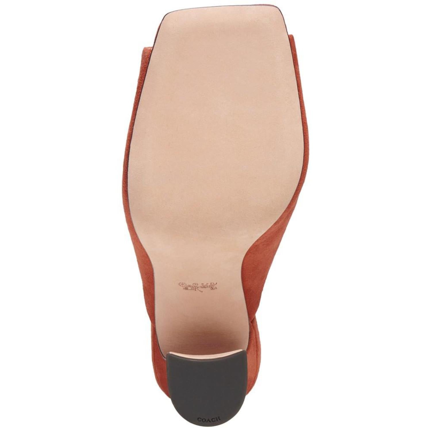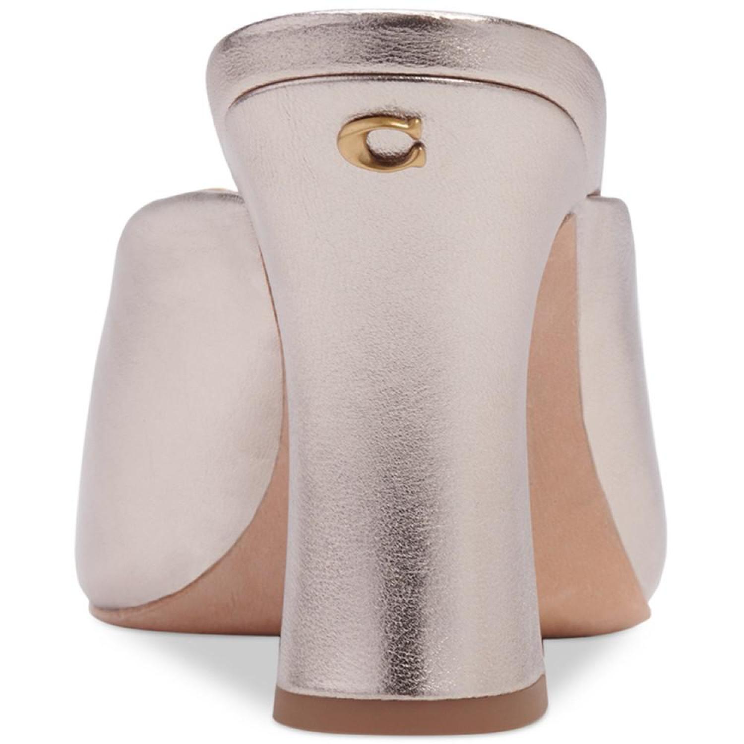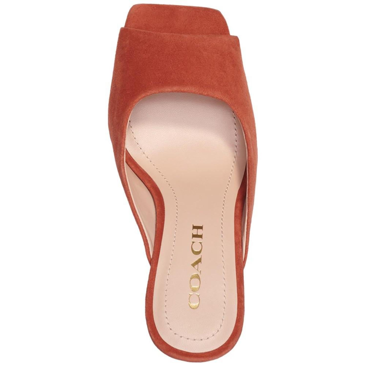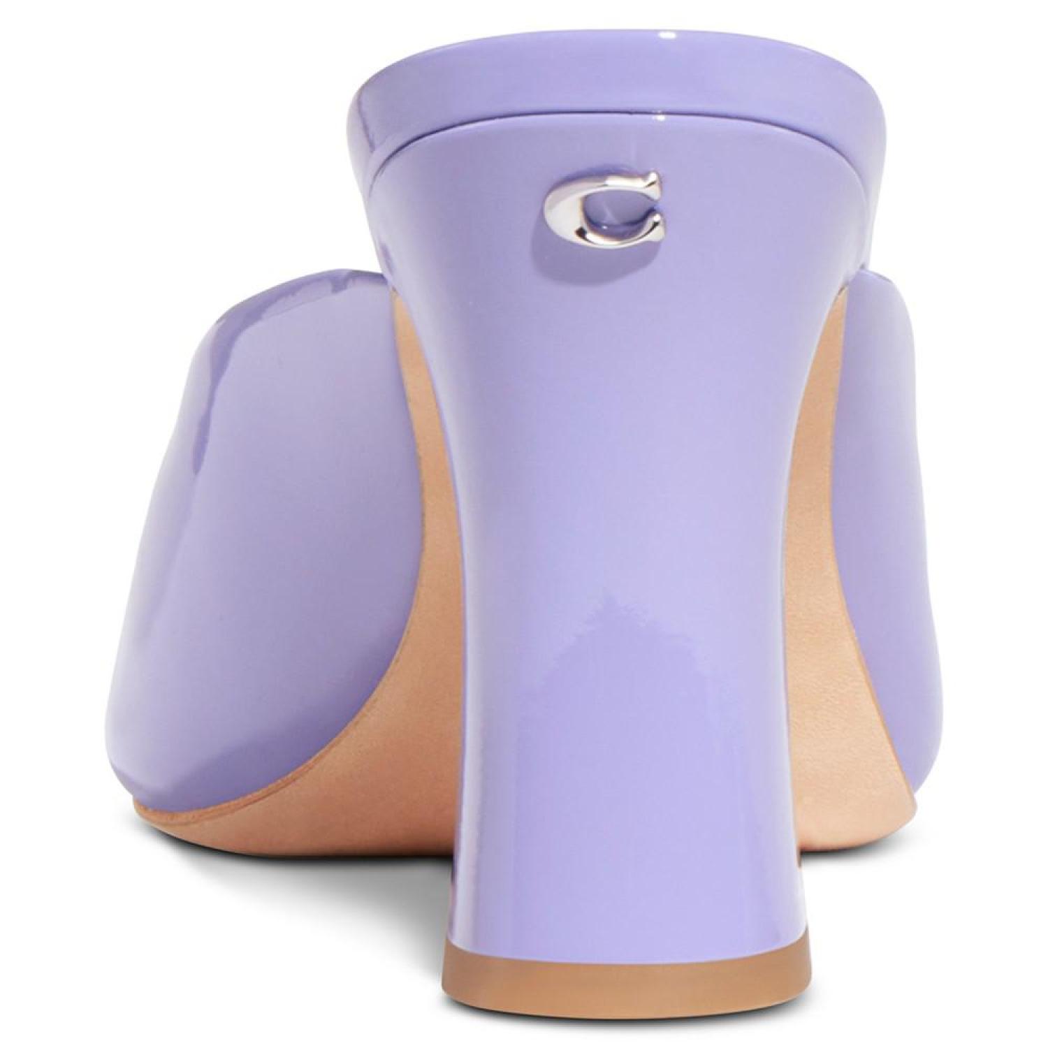 Square toes and sculpted heels update a sophisticated slide silhouette in the elegant curves of the Laurence sandals by COACH. 3-1/2" sculpted architectural heel; 1/4" platform Style No. CI230: Patent leather Style No. CI228: Suede Style No. CJ265: Metallic leather Leather sole Imported