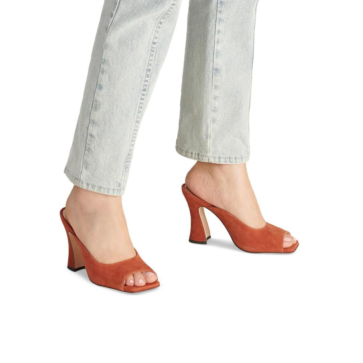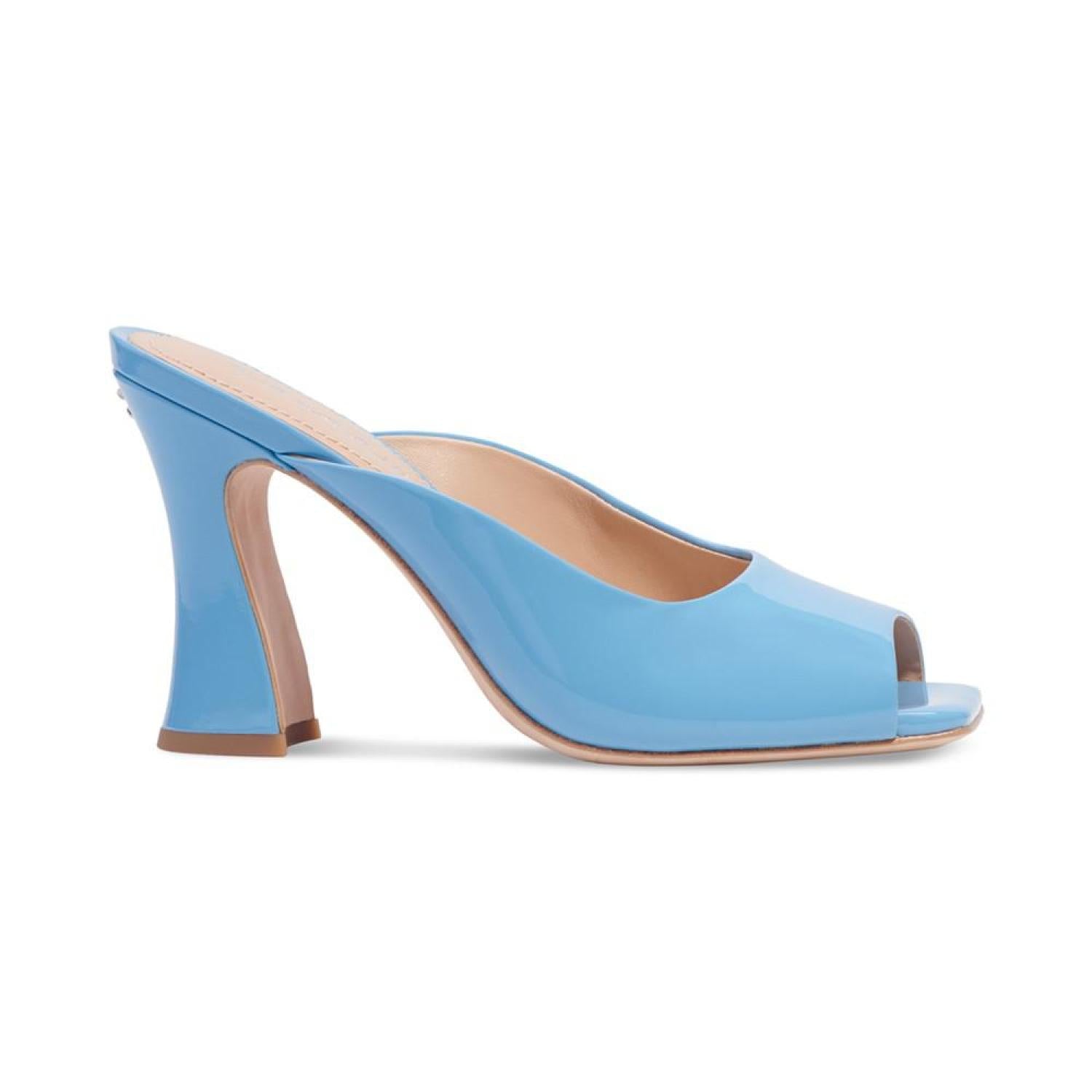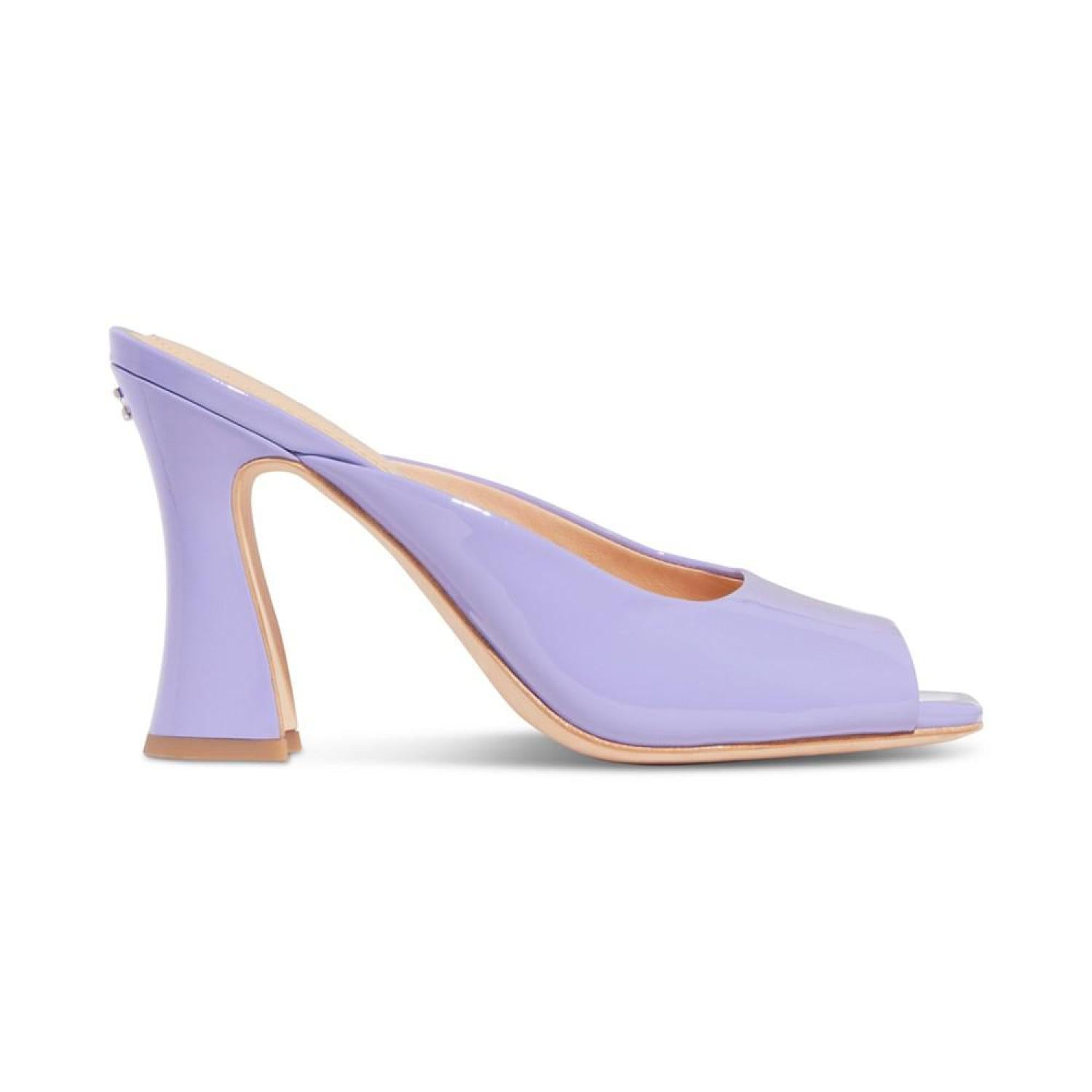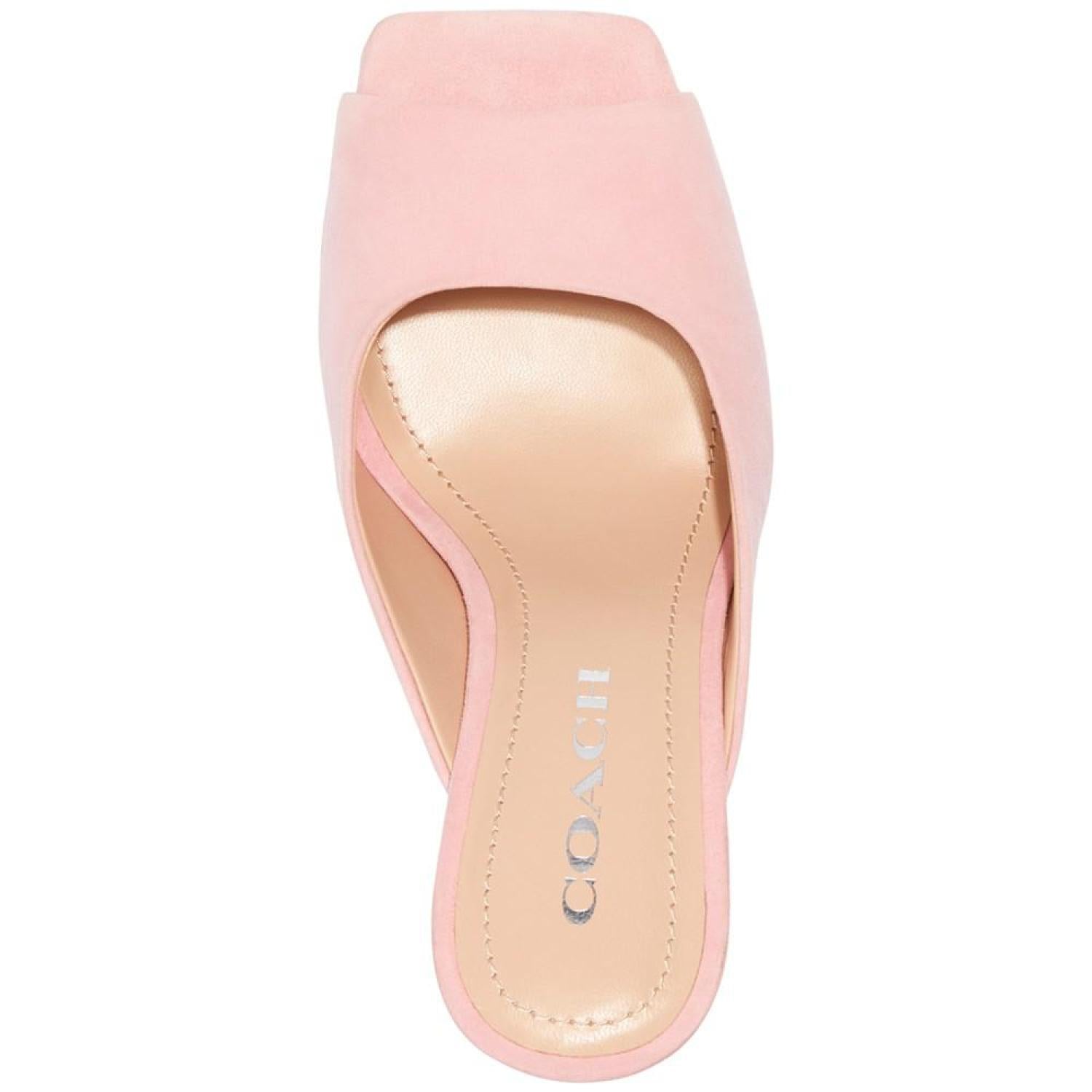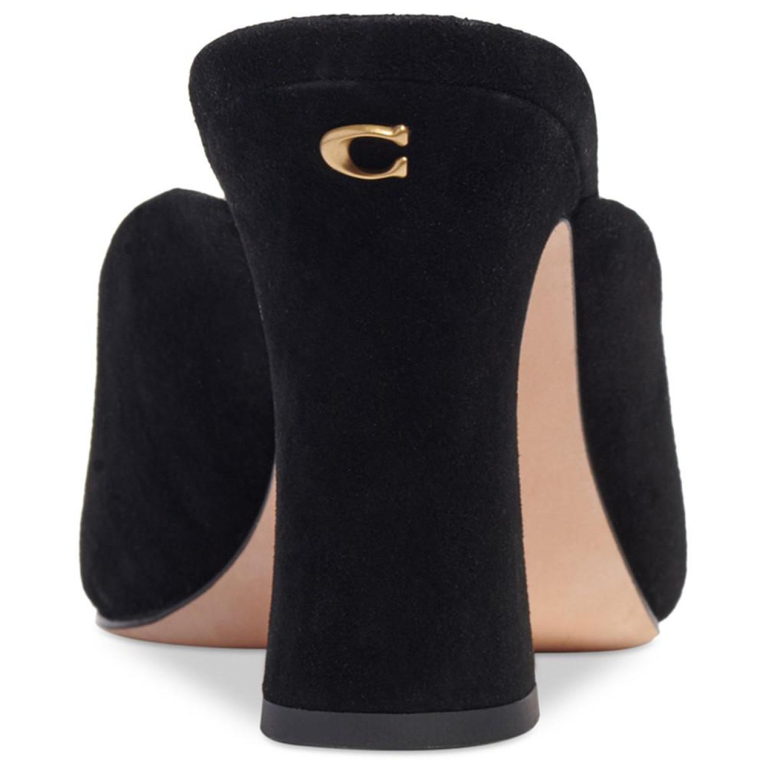 Square toes and sculpted heels update a sophisticated slide silhouette in the elegant curves of the Laurence sandals by COACH. 3-1/2" sculpted architectural heel; 1/4" platform Style No. CI230: Patent leather Style No. CI228: Suede Style No. CJ265: Metallic leather Leather sole Imported