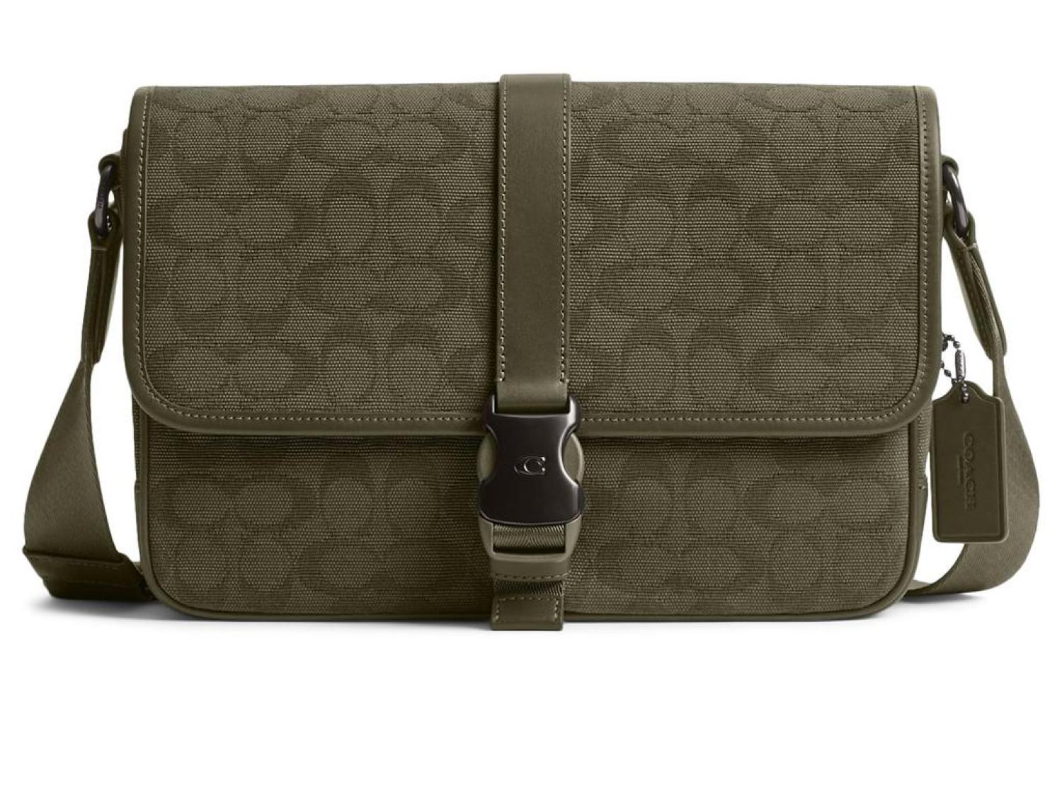 Please Note: COACH™ items cannot be shipped to military addresses (APO or FPO) and addresses in Hawaii, the Virgin Islands, Guam or any other locations outside of the continental US. Style and function are perfectly paired in the COACH™ League Messenger Bag. The speedclip closure and single outer pocket are perfectly accented with the classic letter print patterning. The adjustable strap lets everyone carry this bag however is best for them. Three open interior pockets. Made with cotton canvas, accented with leather, and lined with cotton. Imported. Measurements: Bottom Width: 11 1/2 in Depth: 2 3/4 in Height: 7 3/4 in Strap Drop: 25 in-
