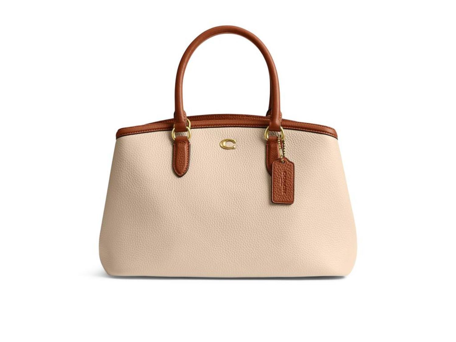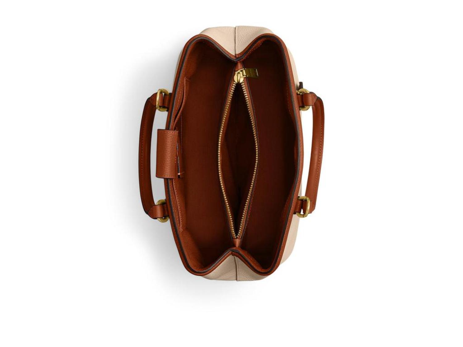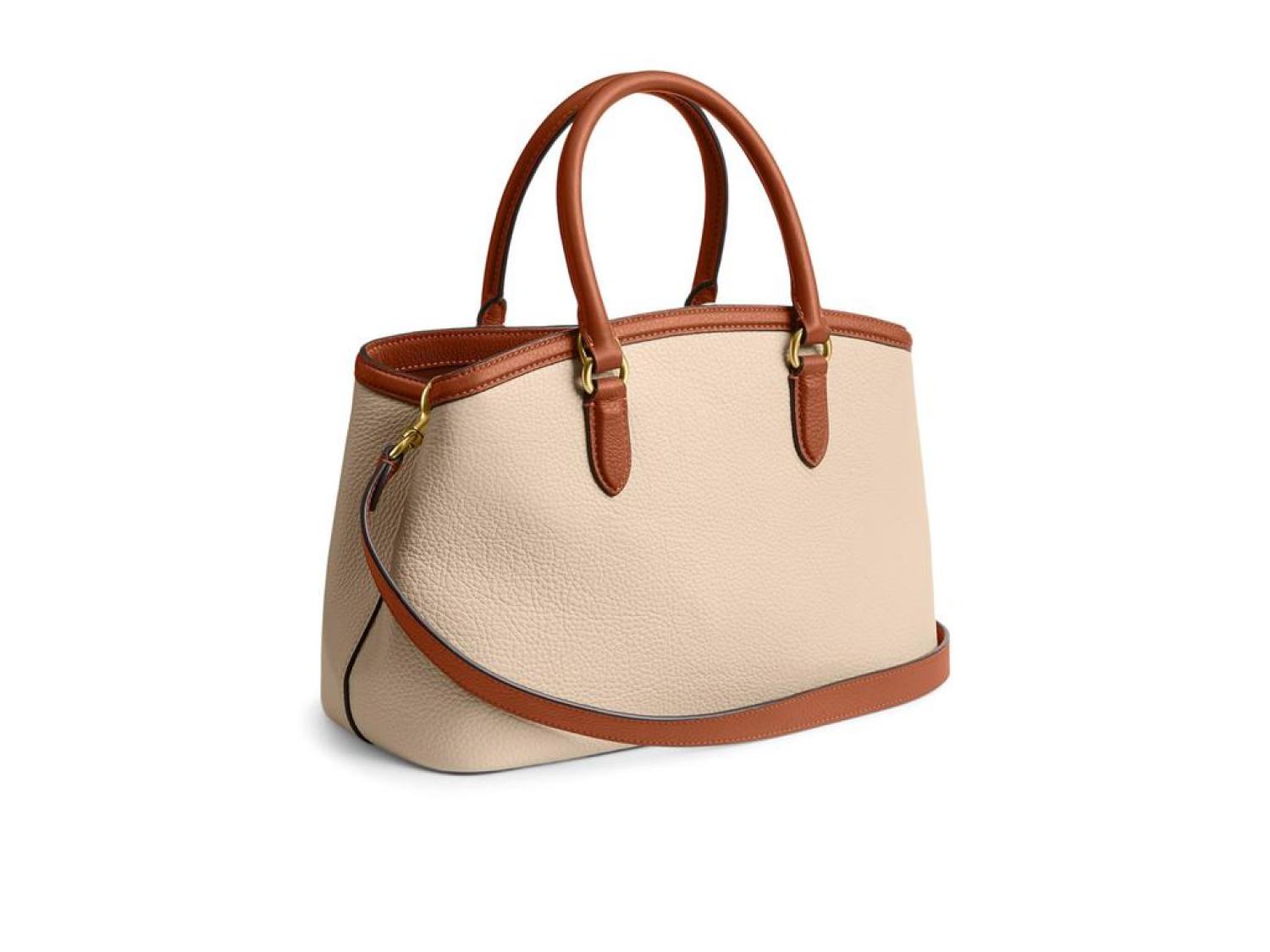 Timeless style is the main feature of the COACH™ Legacy Carryall28 in Color Block.  The double handles are accented with a removeable and adjustable shoulder strap, branded hardware and tag, and magnetic snap closure.  The interior features two open compartments, branded patch, and single zipper pocket.