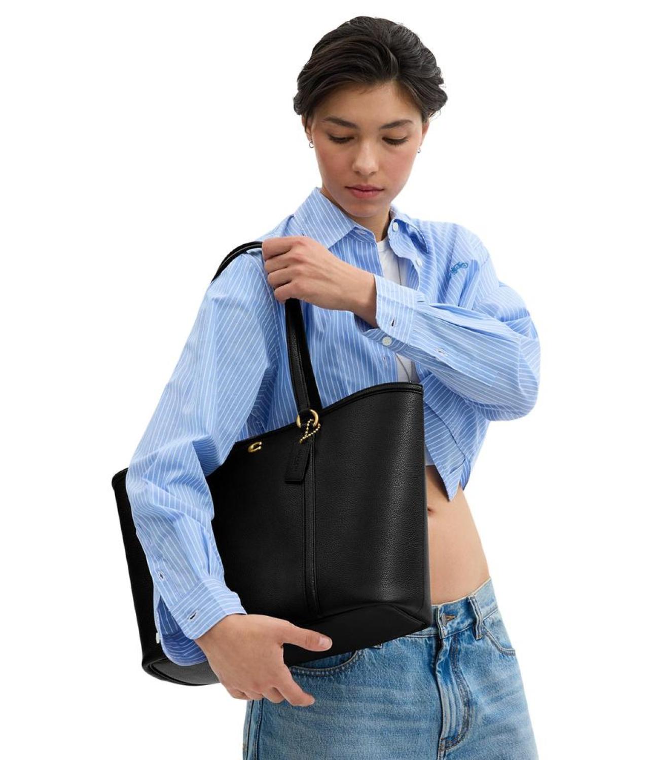 Classy and elegant, the COACH™ Legacy Tote boasts a premium leather construction and comes with a polyester-lined interior which is spacious enough to hold your everyday essentials. It is secured with a snap closure that offers easy access to your stuff and possesses dual top handles for ease of carrying.