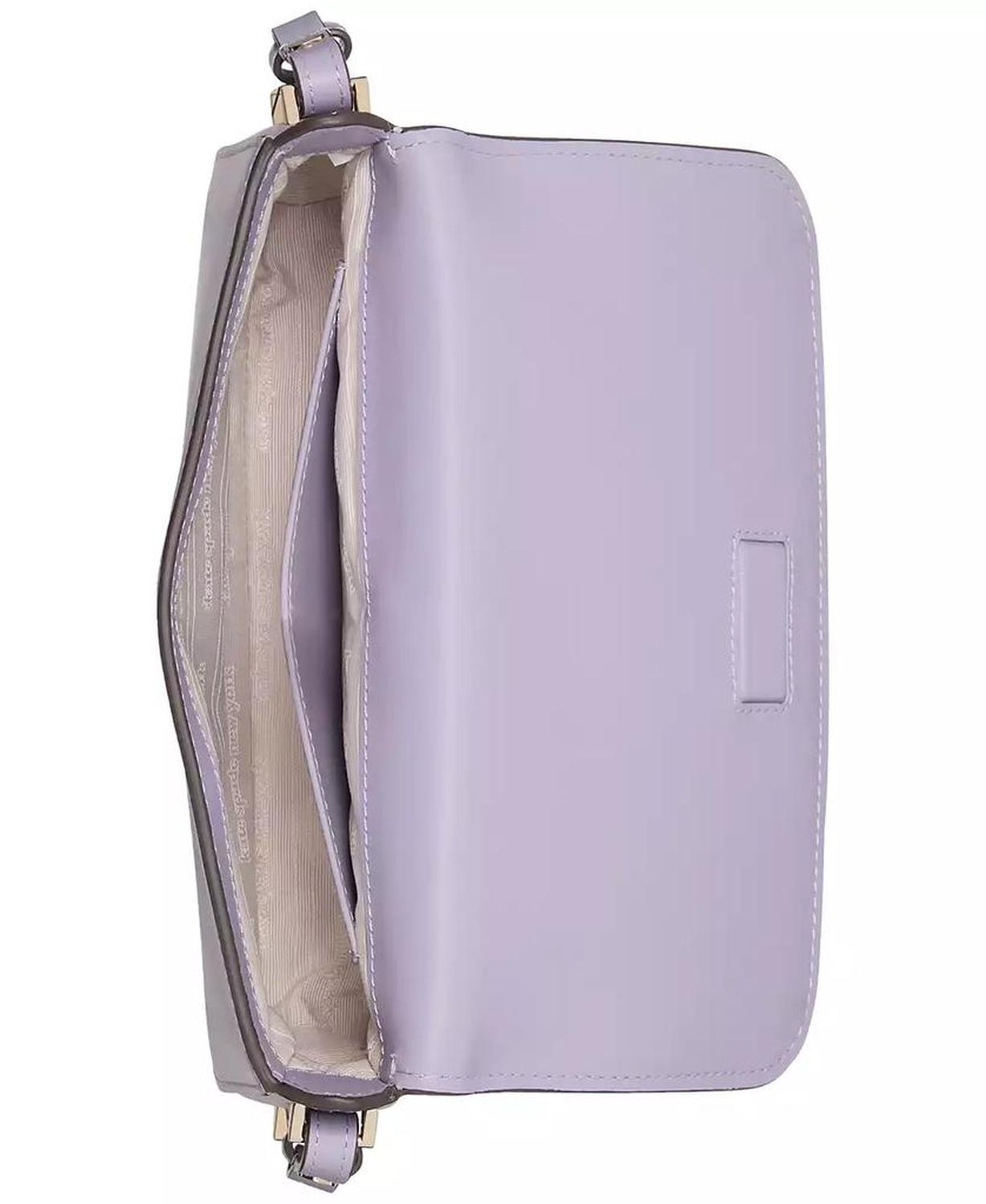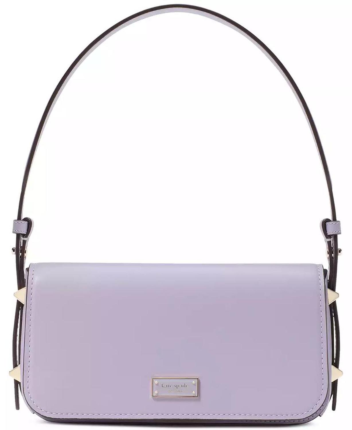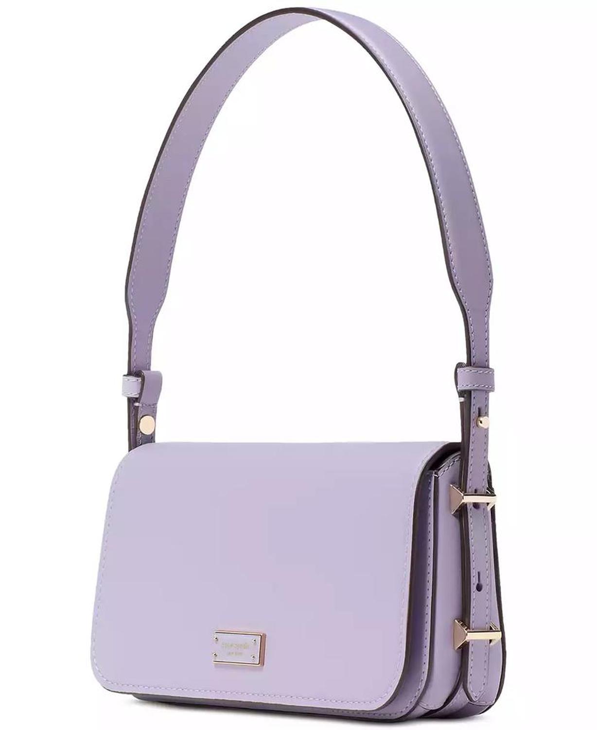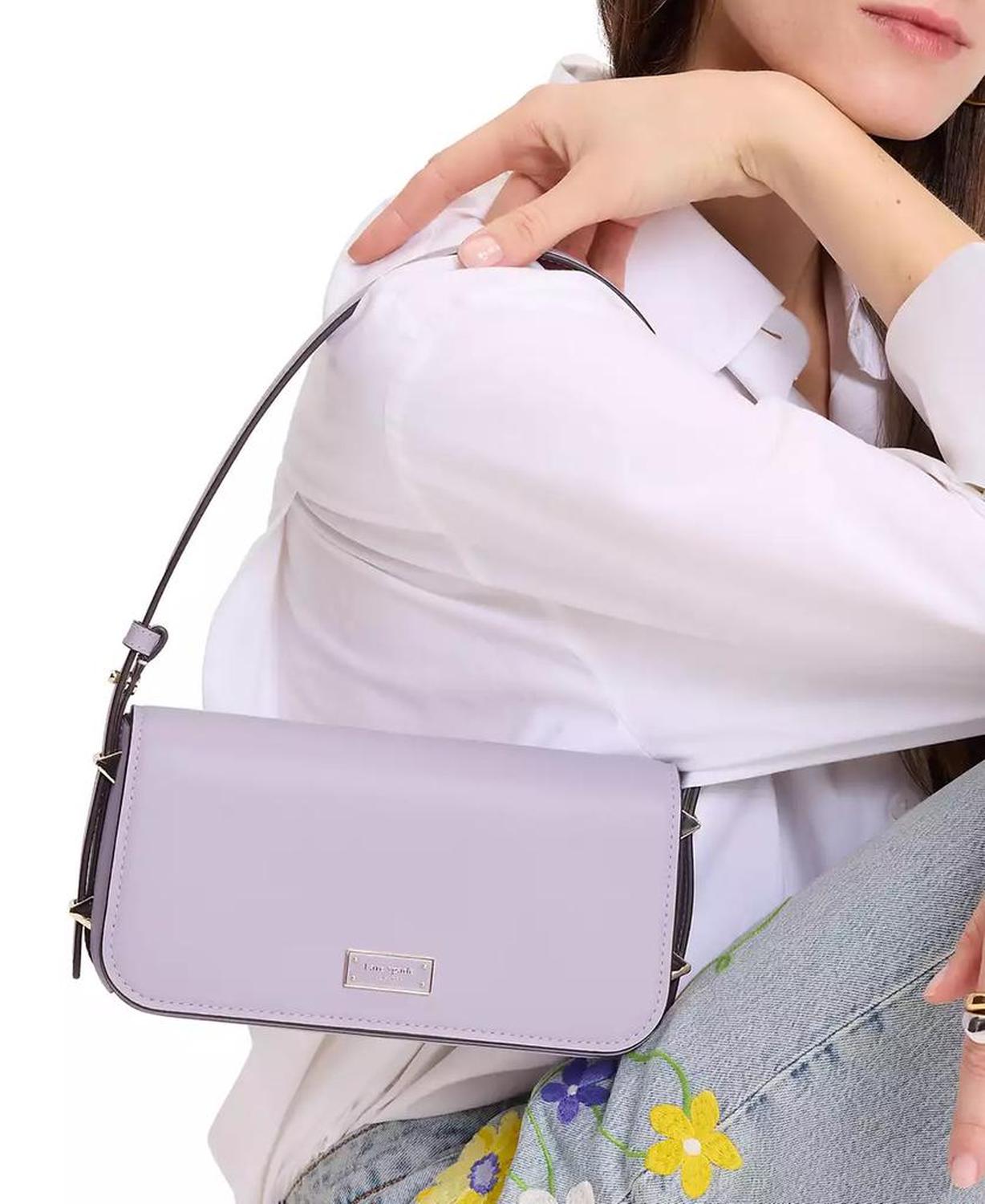 A small silhouette with big impact, kate spade new york's Liv shoulder bag is perfect for day, night, or both. Small-sized bag; 8-4/5"W x 4-2/3"H x 1-1/2"D (width is measured across the bottom of handbag); 1 lb. approx. weight Silhouette is based on 5'9" model 8-1/2" L shoulder strap Flap magnetic closure Gold-plated exterior hardware; interior slip pocket Fits phones & wallets Leather Spot clean Imported