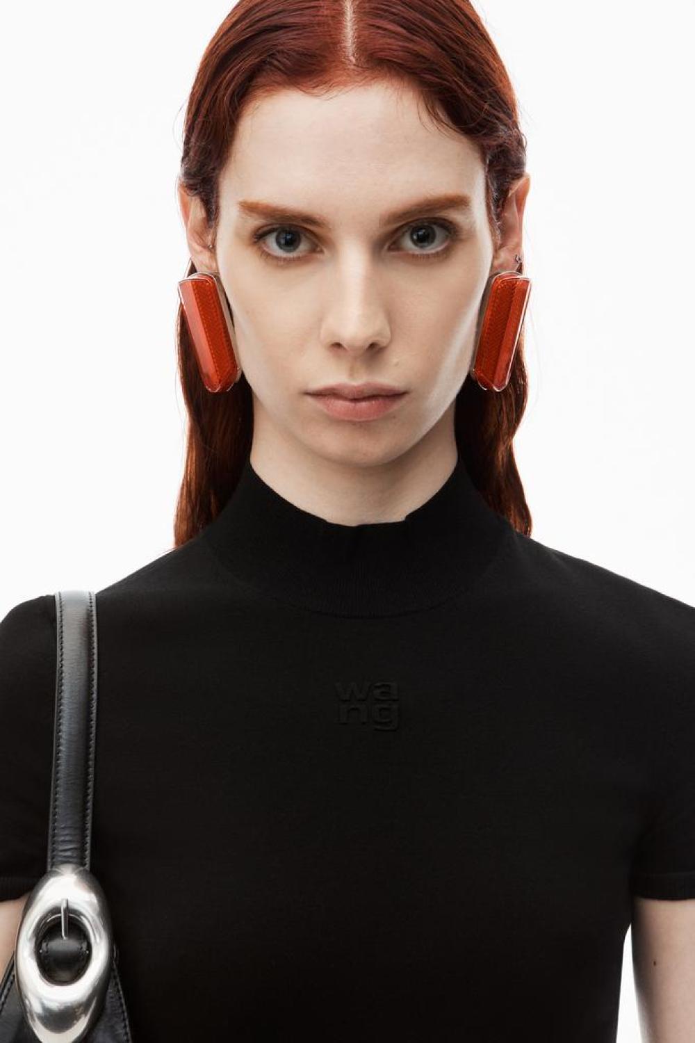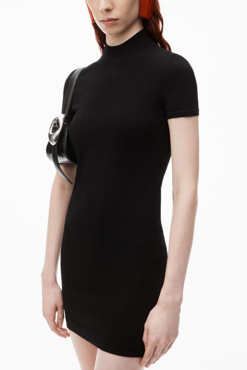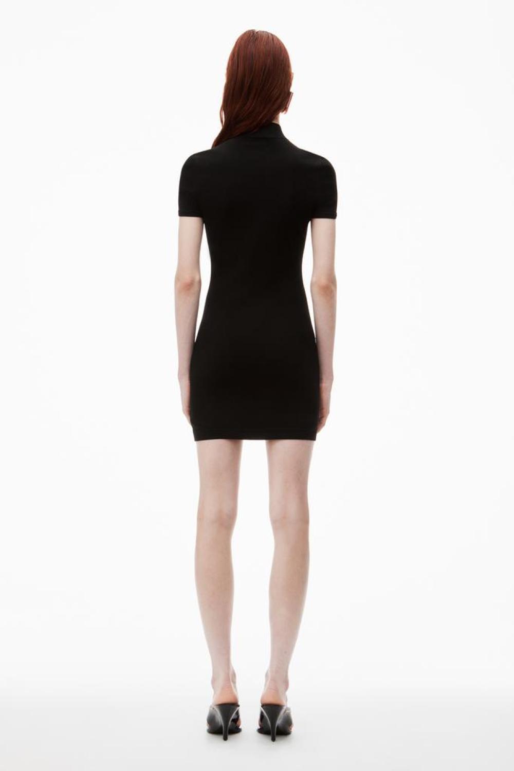 A high-frequency embossed logo elevates this black bodycon minidress. mockneck body composition: 50%VISCOSE/29%POLYESTER/18%POLYAMIDE/3%ELASTANE trim: 44%VISCOSE/27%POLYESTER/27%POLYAMIDE/2%ELASTANE bodycon made in China model is 5’11 and wears a size S 4KC3246050001