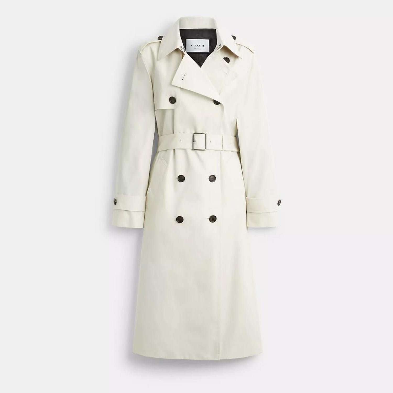 72% cotton 28% polyester Body lining - 58% polyester 42% viscose Sleeve lining/facings/pocket lining - 56% polyester 44% viscose Button closure Slip pockets Adjustable belt Length - 44 Dry clean Model is 6'2 (188cm) chest 37 (94cm) waist 28 (71cm) hips 28 (71cm) and wears a size S Style No. CAB92 | Coach Outlet Long Trench - Beige, Size - Small