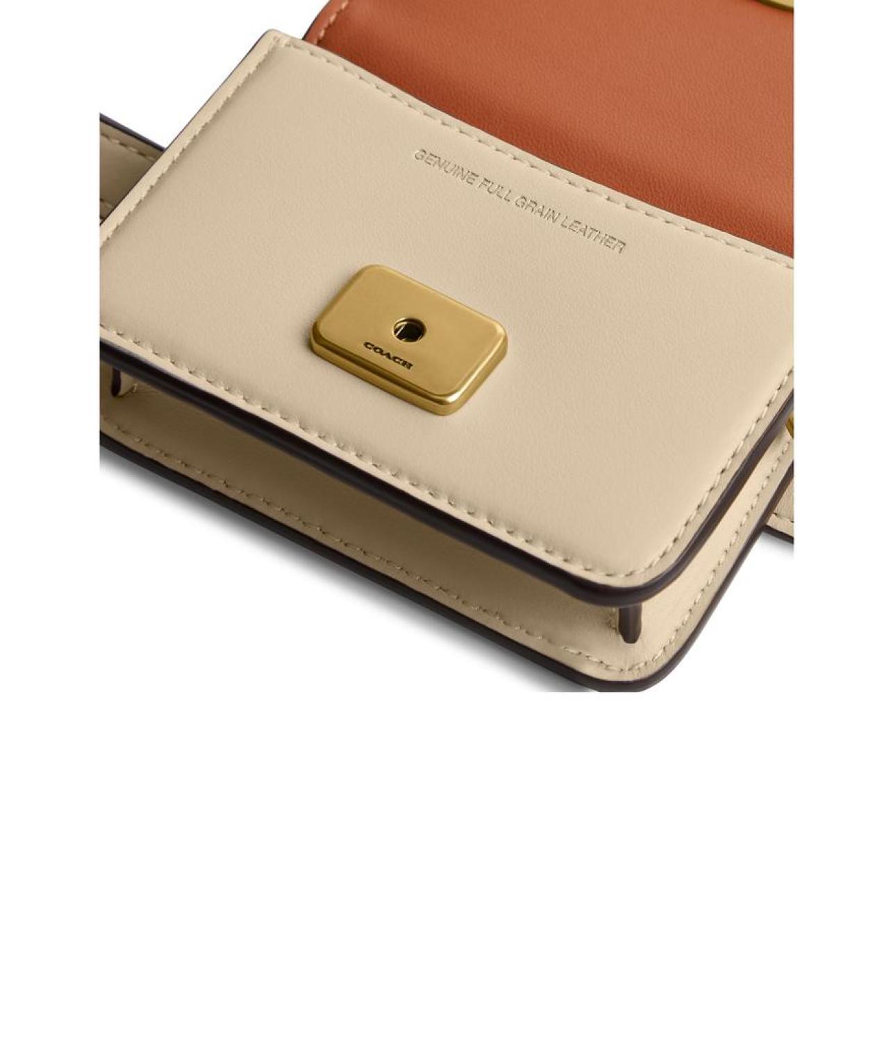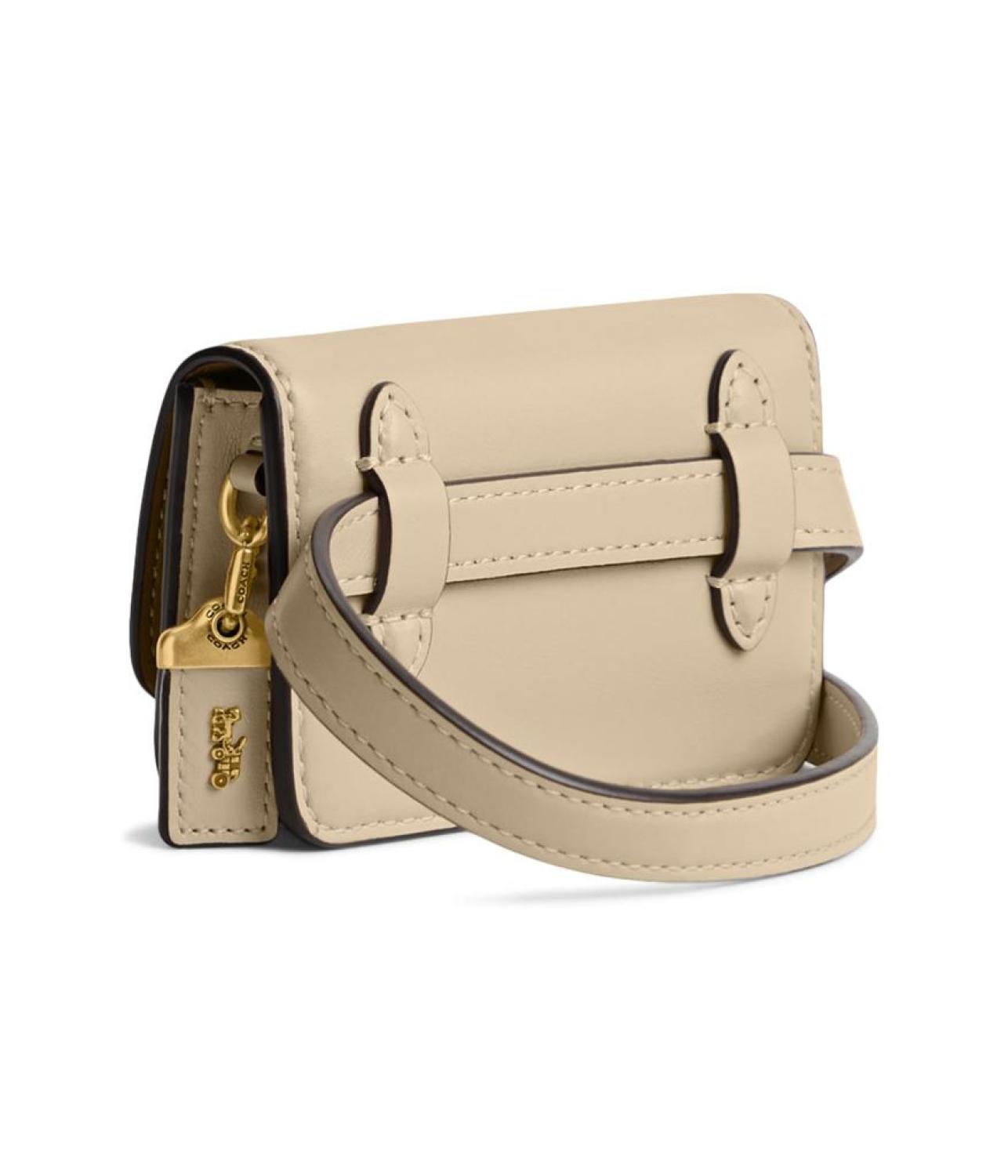Uplift your trendy look donning the COACH® Luxe Refined Calf Leather Bandit Card Belt Bag. It is designed with snap button closure, and metallic brand logo on the front. The bag can be worn on the hips or on the waist.