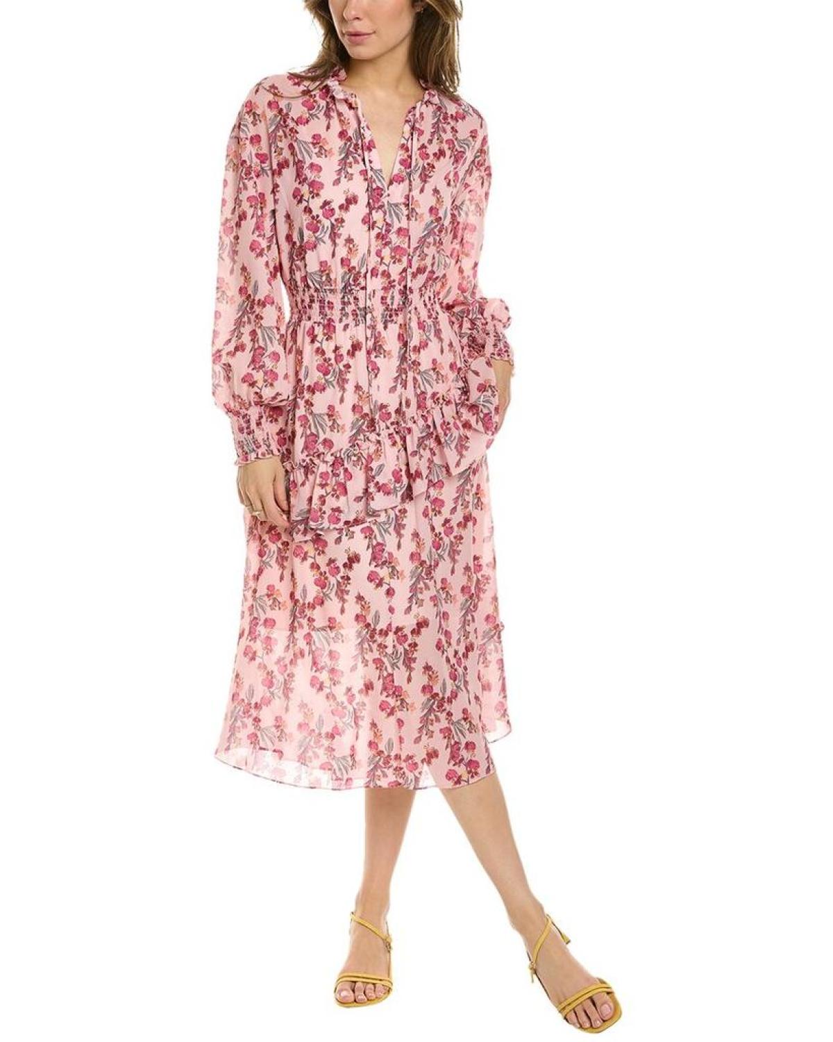 Introducing the Marchesa Notte Floral Midi Dress, designed for those special nights when you want to make a glamorous statement. This exquisite dress combines elegant details with a romantic touch. Crafted by the renowned brand Marchesa Notte, known for their impeccable gowns and cocktail dresses, this midi dress showcases the perfect balance between sophistication and femininity. Adorned with a beautiful rose print, this dress features a stunning tie neck and blouson sleeves, adding an air of grace and charm. The smocked waist accentuates your figure, while the asymmetrical ruffle trim adds a touch of playful elegance. Measuring approximately 45 inches from shoulder to hem, this dress falls at a flattering midi length that exudes timeless elegance. It is designed to suit various body shapes, ensuring a perfect fit for all. Slip into this dress effortlessly with its convenient slip-on styling, making it a hassle-free choice for any occasion. Made from 100% polyester, this dress offers a luxurious feel and ensures durability. To maintain its pristine condition, it is recommended to dry clean only. Exuding the sophistication and intricacy that has become synonymous with the Marchesa Notte brand, this dress is truly a work of art. Impress and enchant wherever you go with this imported Marchesa Notte Floral Midi Dress.