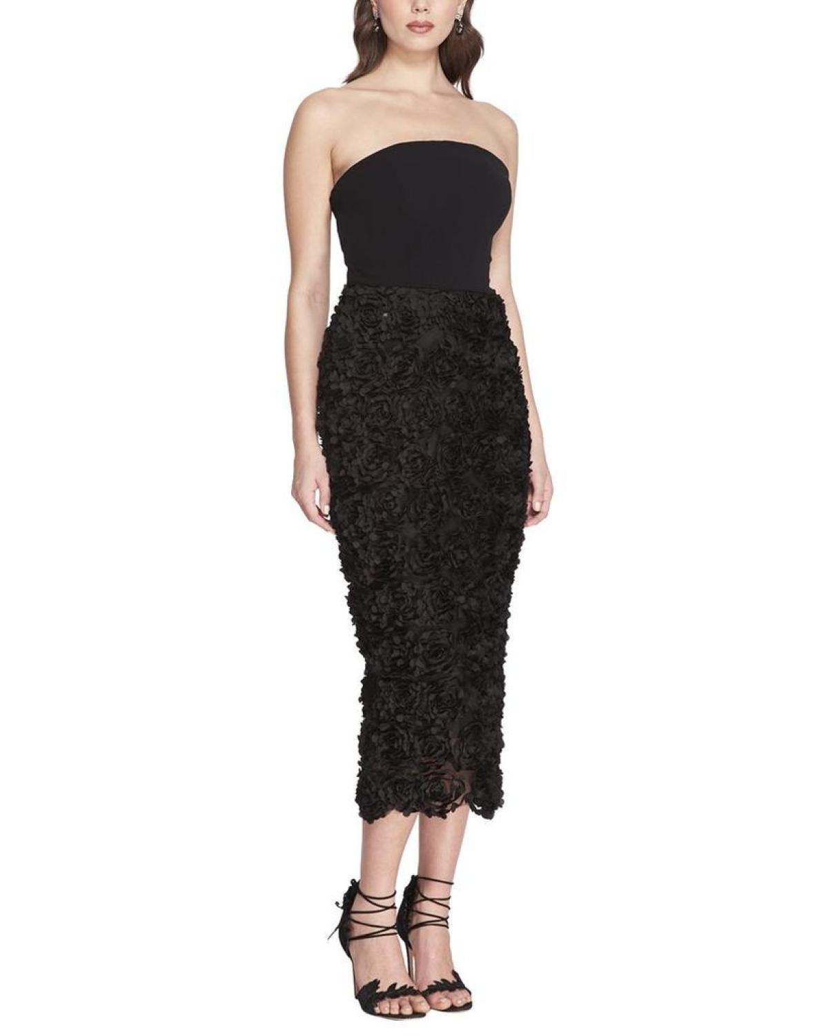 Elevate your evening ensemble with the Marchesa Notte Midi Dress. This stunning black dress exudes sophistication and elegance, perfect for any special occasion. Featuring a flattering midi length and a chic zipper closure, this dress is crafted from 100% polyester for a luxurious feel. Whether you're headed to a cocktail party or a formal event, this dress is sure to make a statement. Dry clean only. Imported. Embrace the glamour of Marchesa Notte and stand out in style.