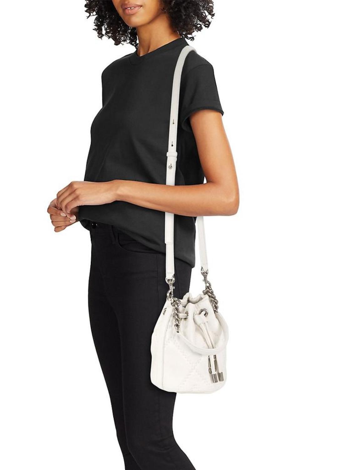 Crafted of leather, Marc Jacobs' medium quilted bucket bag is finished with a silvertone chain-link strap and adjustable drawstring closure.Chain-link top strapRemovable shoulder strapInterior slip pocketAdjustable drawstring closure100% leatherImportedSIZE7.25"H x 7"W x 7.5"D