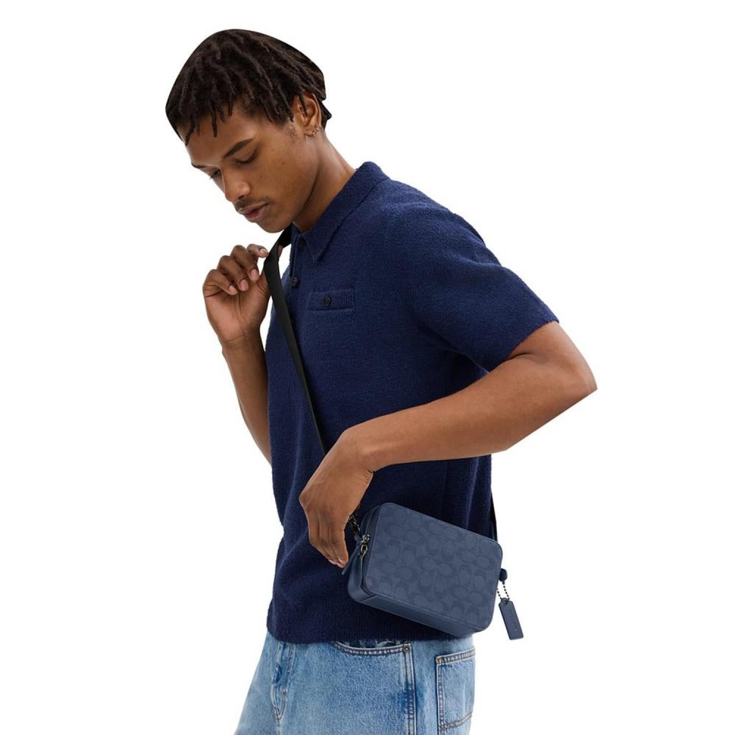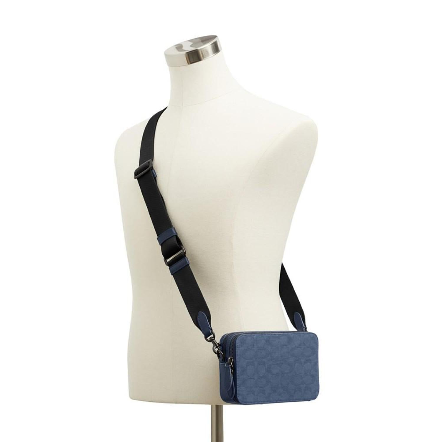 Make signature style part of your daily routine with this COACH crossbody bag, in the signature canvas jacquard print Six credit card slots Inside multifunction pocket Double zip closure, fabric lining Detachable strap with 21 3/4" drop for shoulder or crossbody wear 7 1/2" (L) x 5" (H) x 2 1/4" (W) This item purchased online must be returned to the vendor by mail only. This item cannot be returned to Macy's stores. Signature canvas jacquard and refined calf leather Spot clean Imported