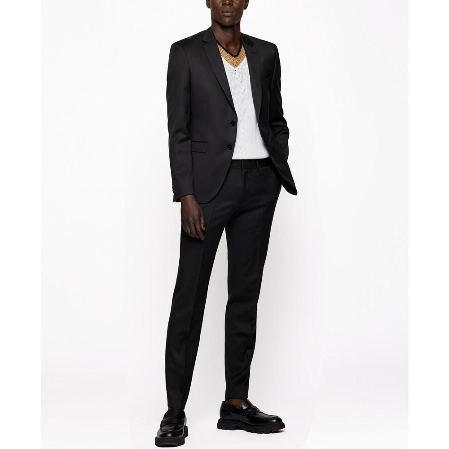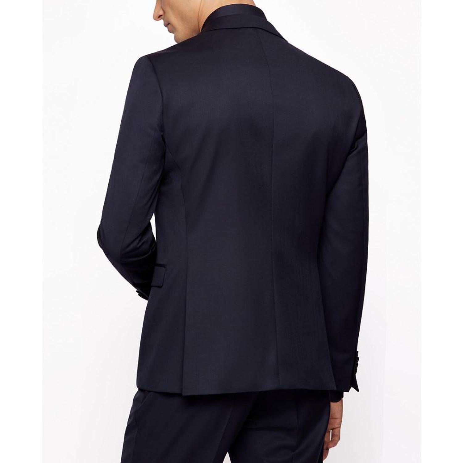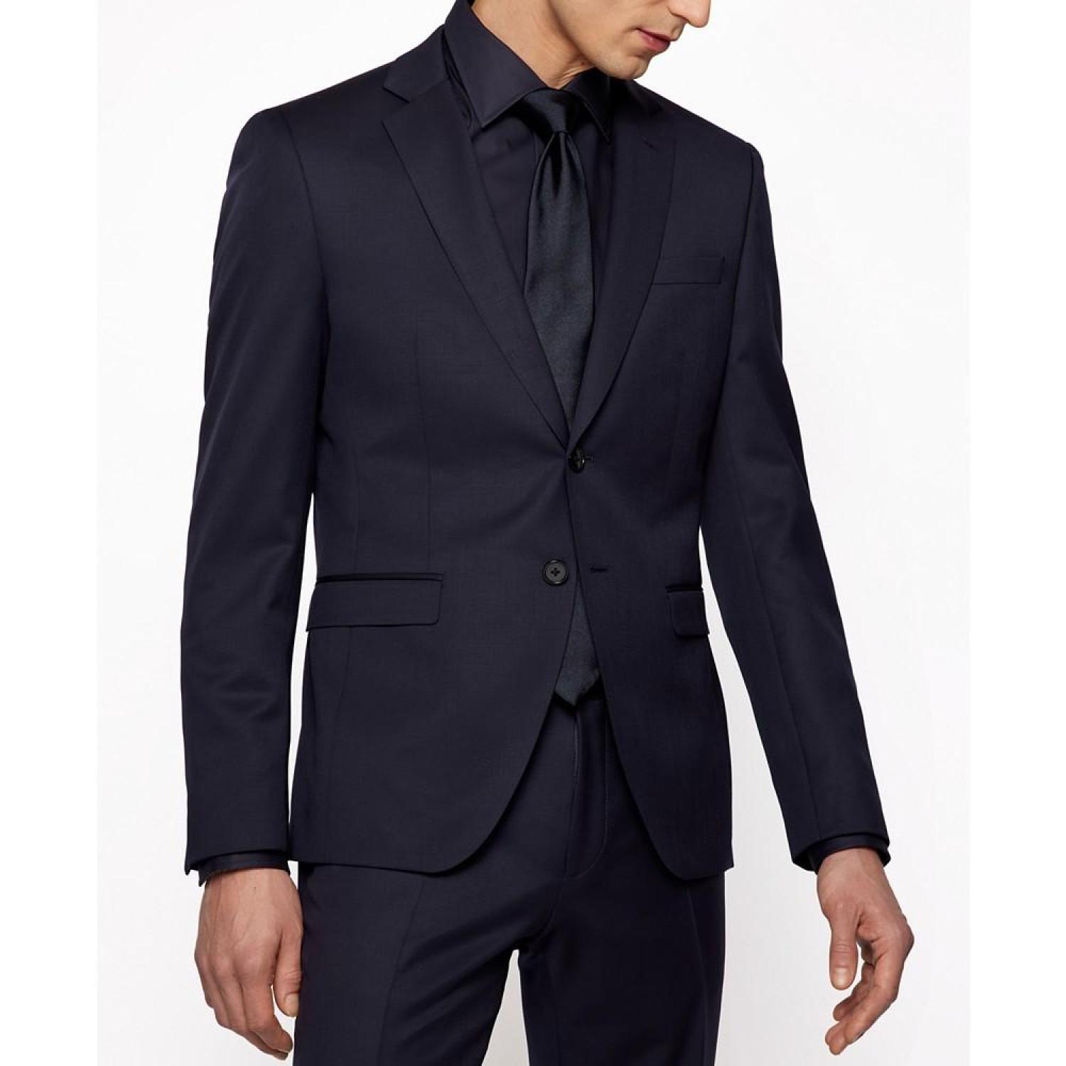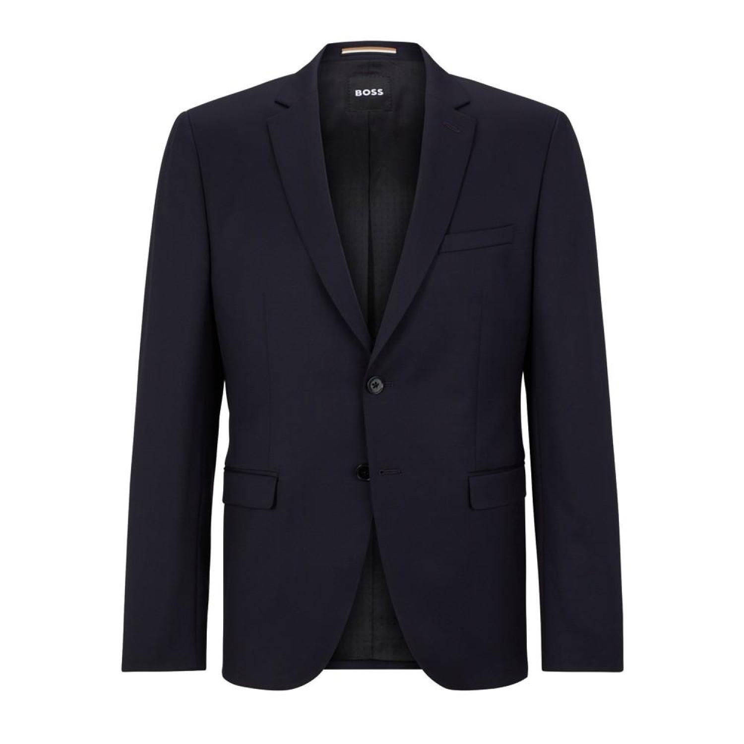 Extra slim fit BOSS jacket. This men's jacket in subtly textured serge has a full-length lining. This product is made with responsibly sourced wool. Extra-slim fit Number of buttons- 2 Welt chest pockets Pockets top- Flap pockets Inside welt pockets The model is a size 32R and is 6'2" tall with a 38" chest, 29" waist and 36" hips Wool Machine Washable Imported