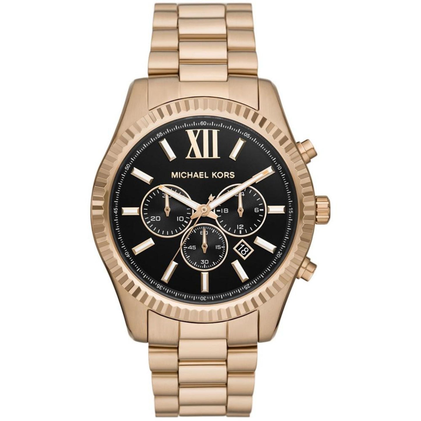 • Make a bold statement with these new Lexington colors. This sophisticated timepiece boasts a sleek design, powerful chronograph features, and a commanding presence on your wrist. Elevate your style and embrace the perfect blend of modernity and classic refinement with this iconic accessory. Style #MK9155.