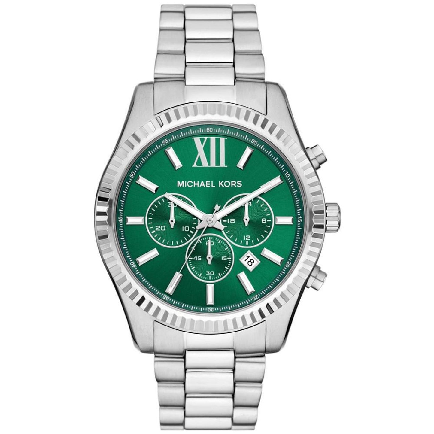 • Make a bold statement with these new Lexington colors. This sophisticated timepiece boasts a sleek design, powerful chronograph features, and a commanding presence on your wrist. Elevate your style and embrace the perfect blend of modernity and classic refinement with this iconic accessory. Style #MK9152.